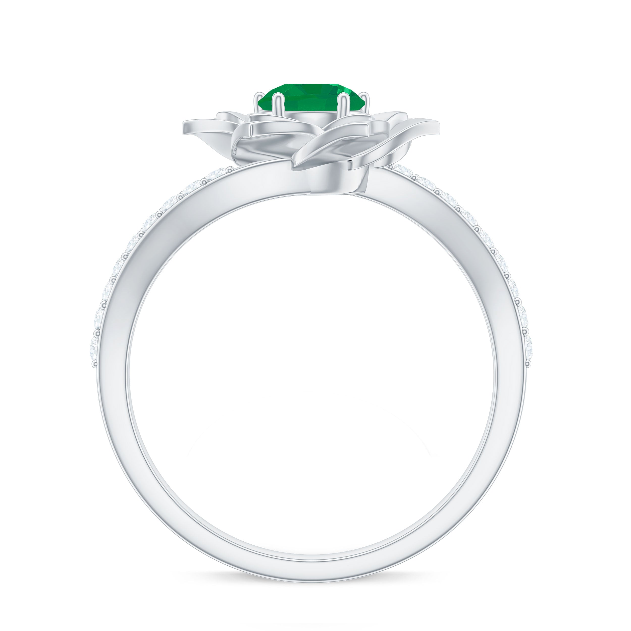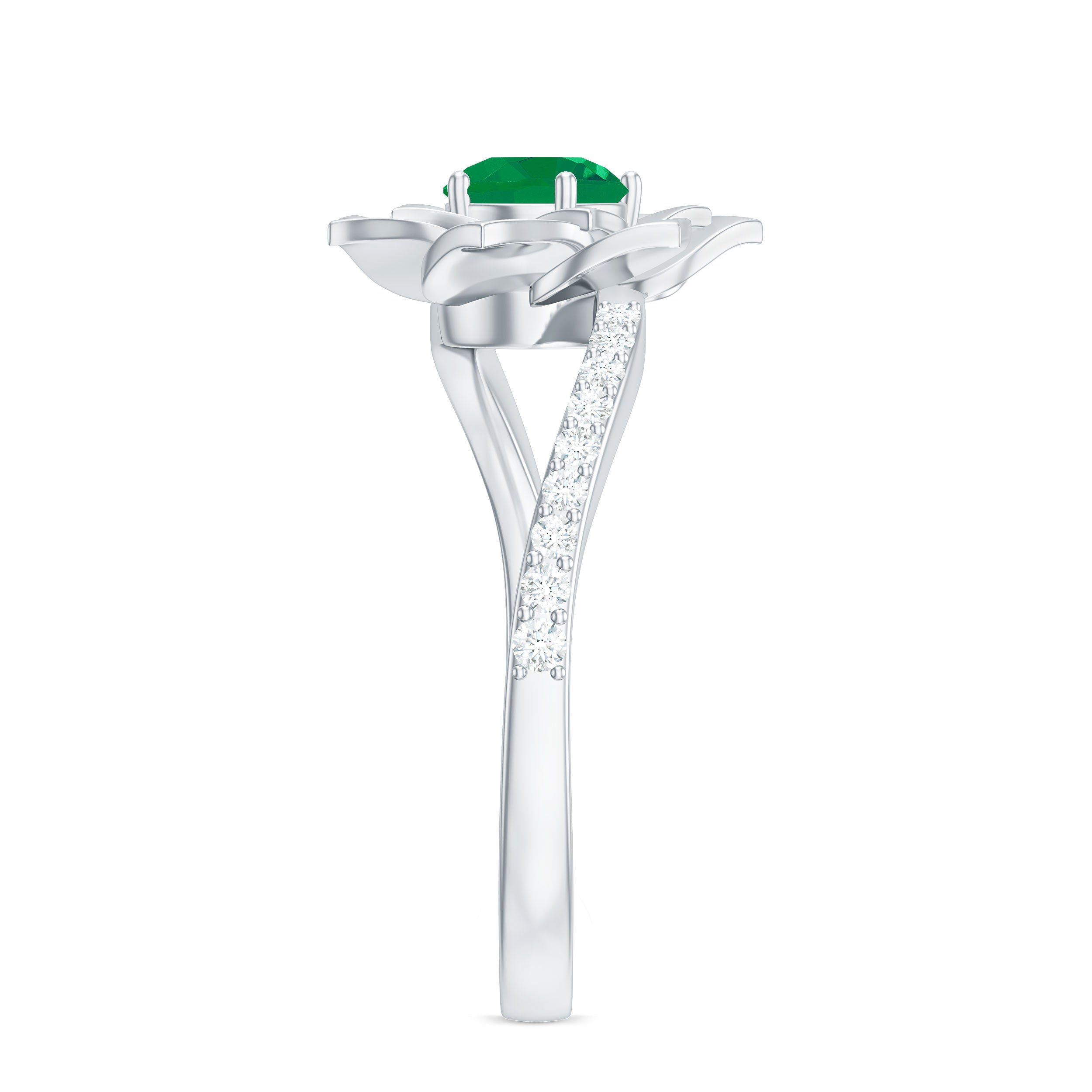 Certified Real Emerald Flower Engagement Ring with Diamond Bypass Shank