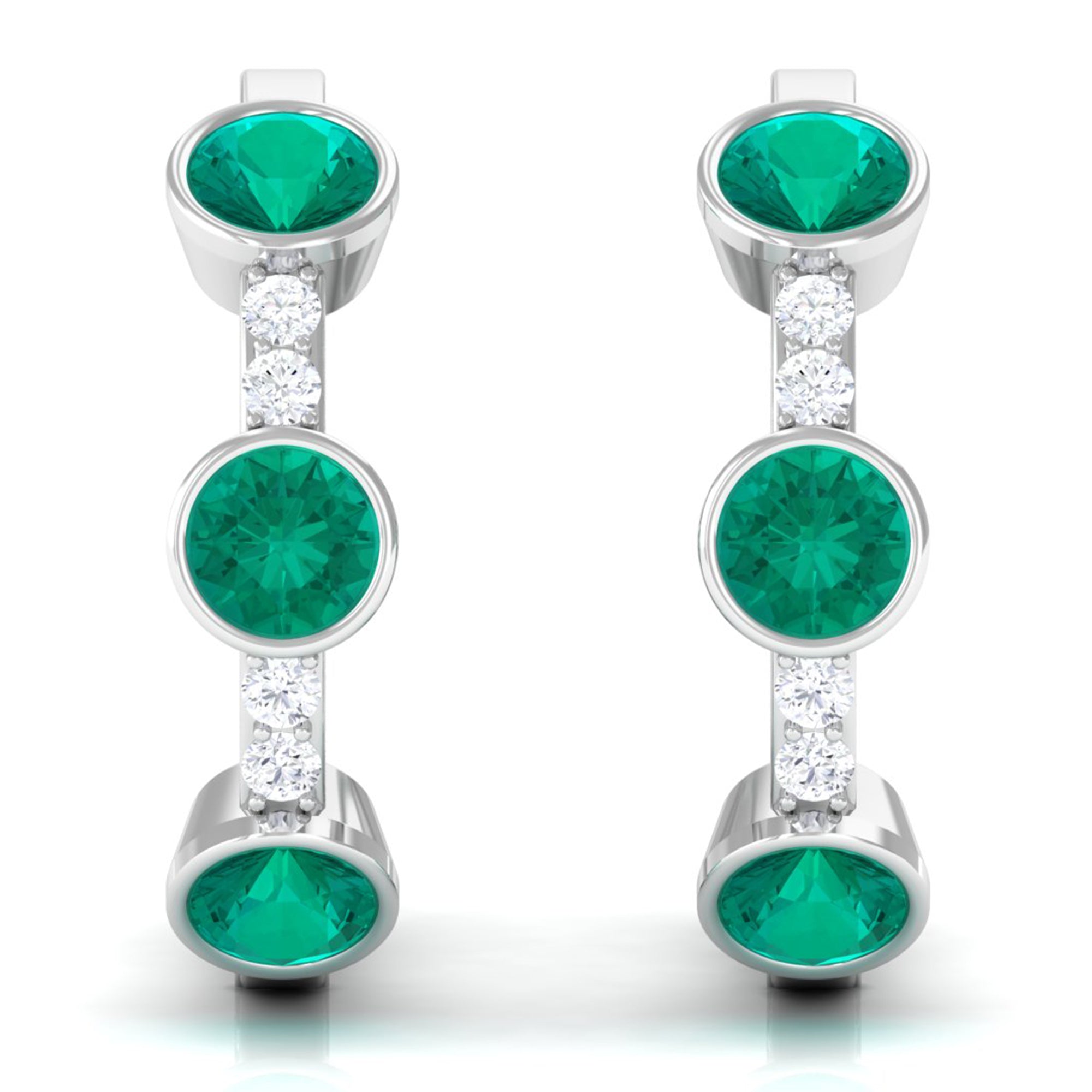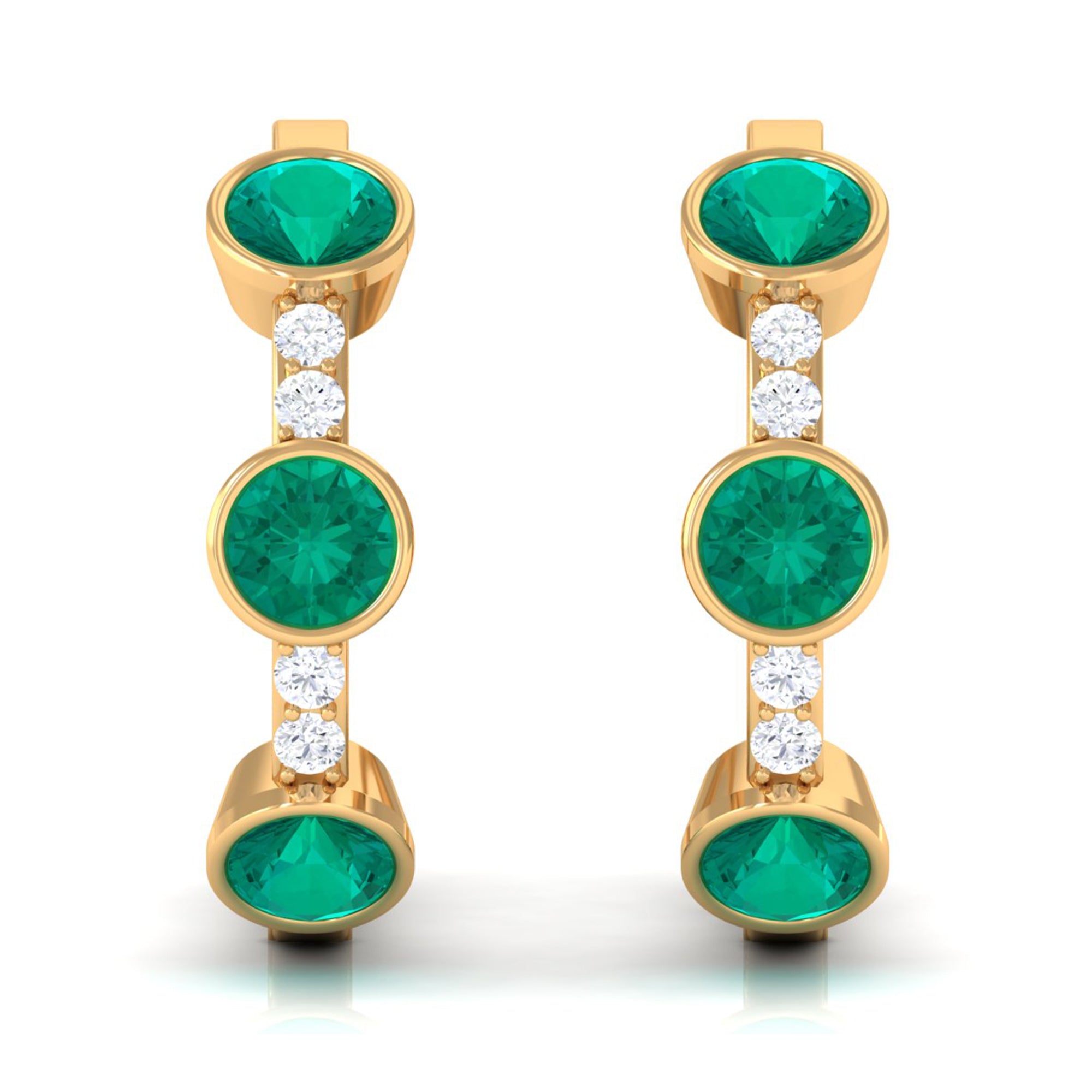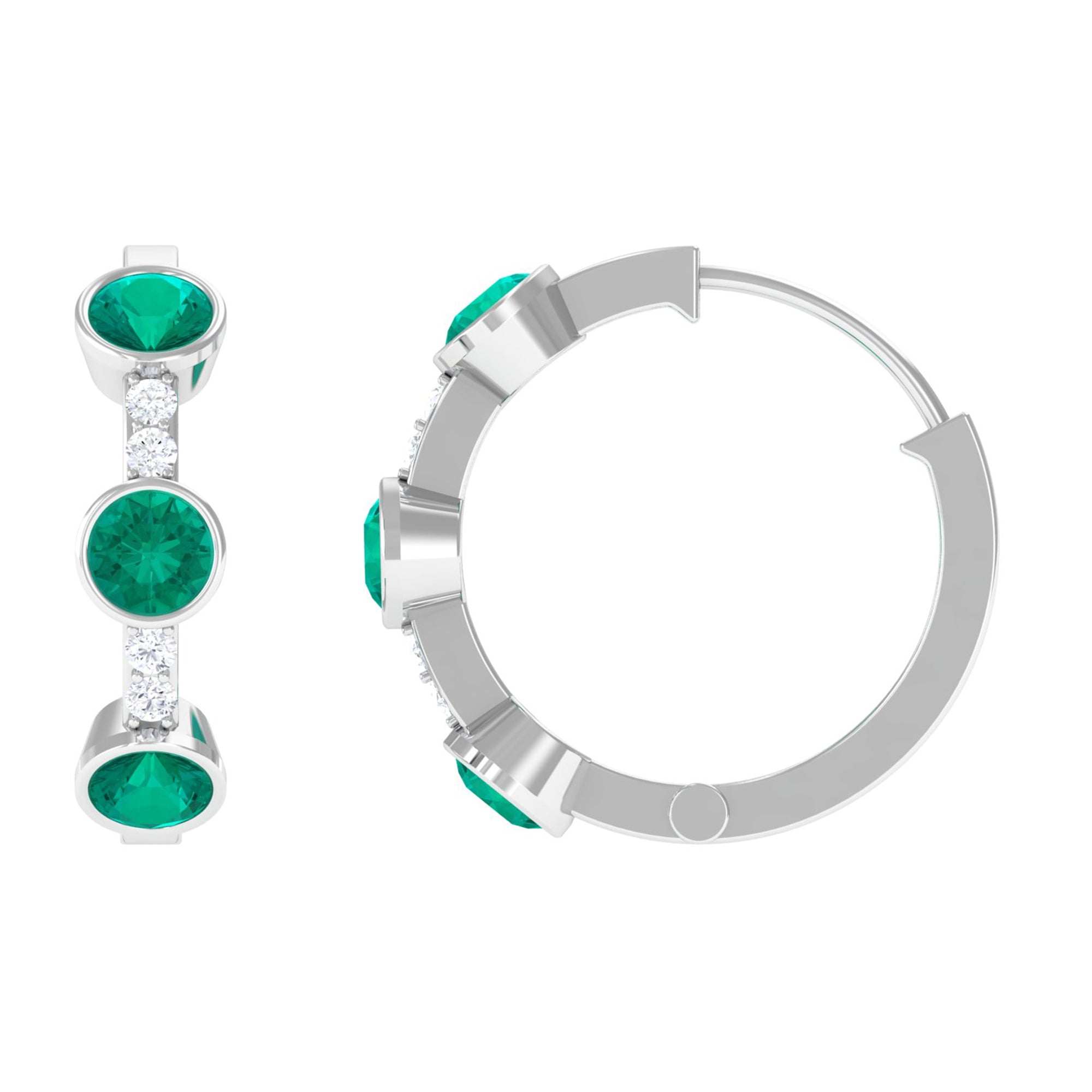 Elevate your style with these dazzling Emerald Hoop Earrings, designed to bring a modern twist to classic elegance. Each hoop features vibrant 3 mm Round Shape emerald stones that add a bold pop of color, beautifully balanced by the subtle sparkle of dainty Diamond stones. The Hinged design makes them easy to wear, providing a comfortable fit that lasts all day. These Emerald Diamond Earrings offer the ideal mix of sophistication and everyday charm, making them a piece you will reach for time and time again. Presented in a signature jewelry box, these Emerald Hoops also make a thoughtful and impressive gift for someone special, perfect for birthdays, anniversaries or celebrations. Versatile and chic, these Green Emerald Earrings effortlessly brighten any outfit while adding a hint of refined sparkle. Whether worn alone or stacked with other favorites, they are the kind of earrings that make you look polished with minimal effort.