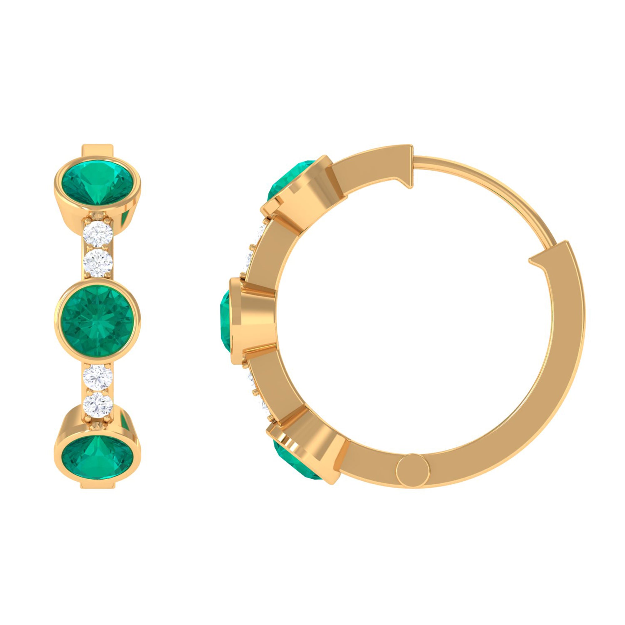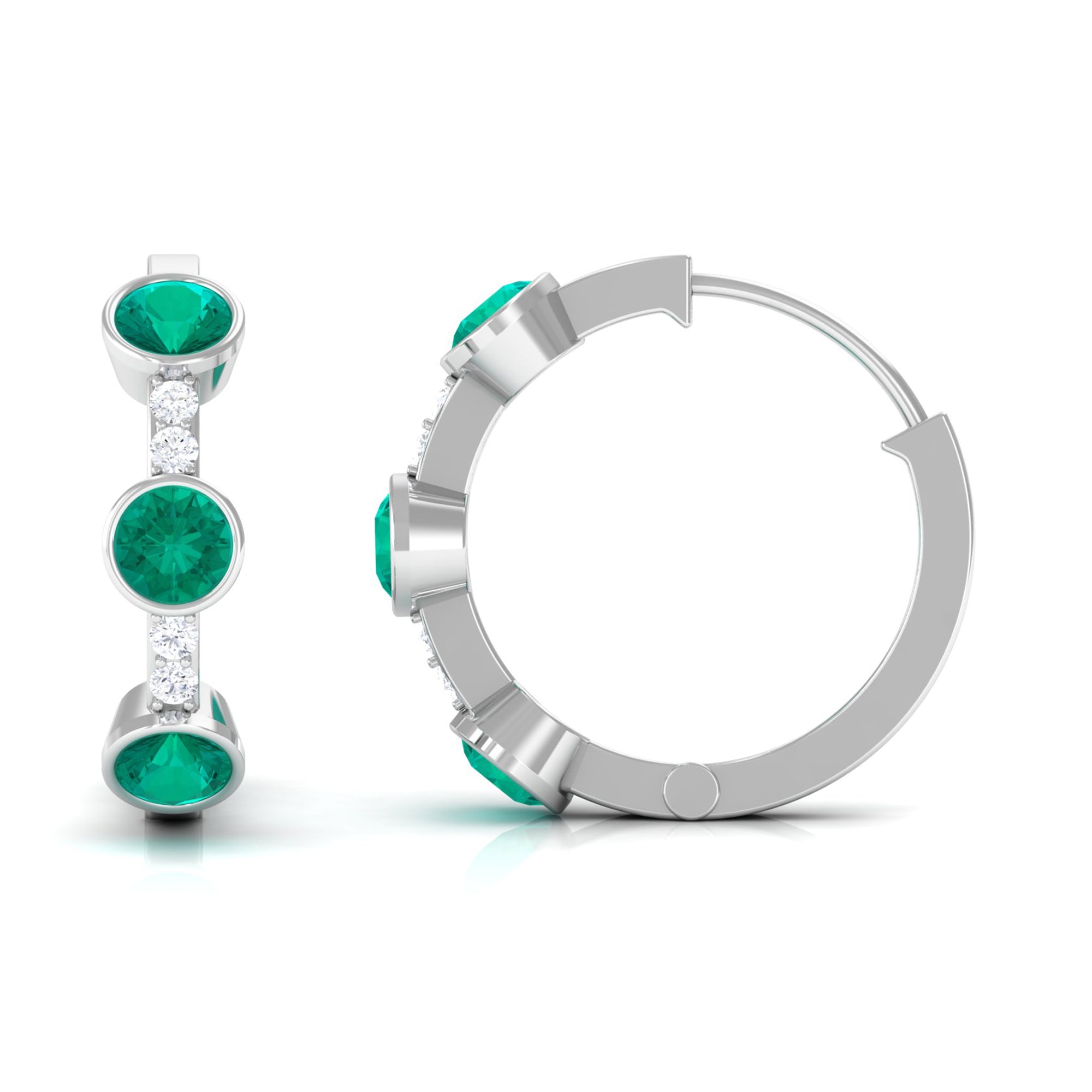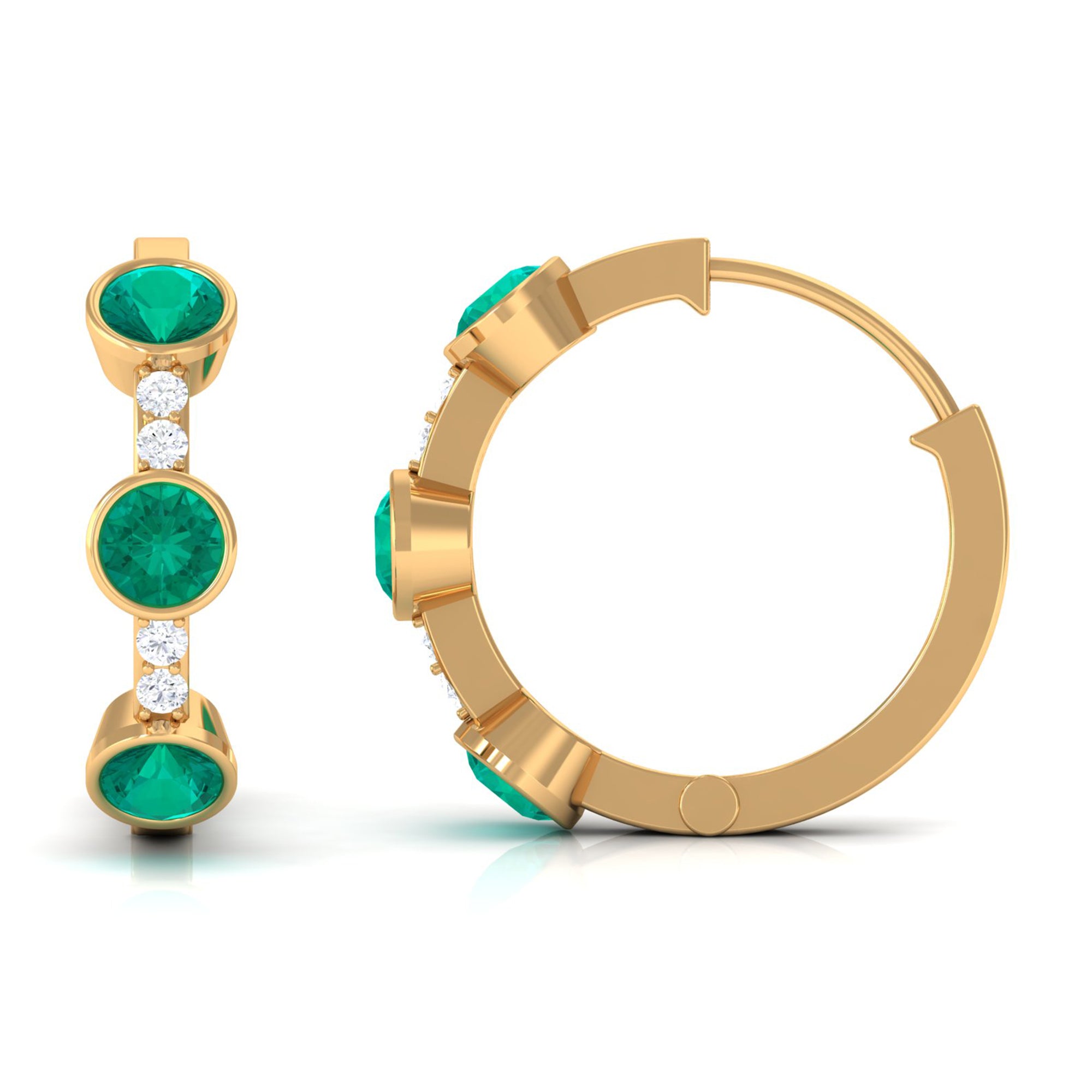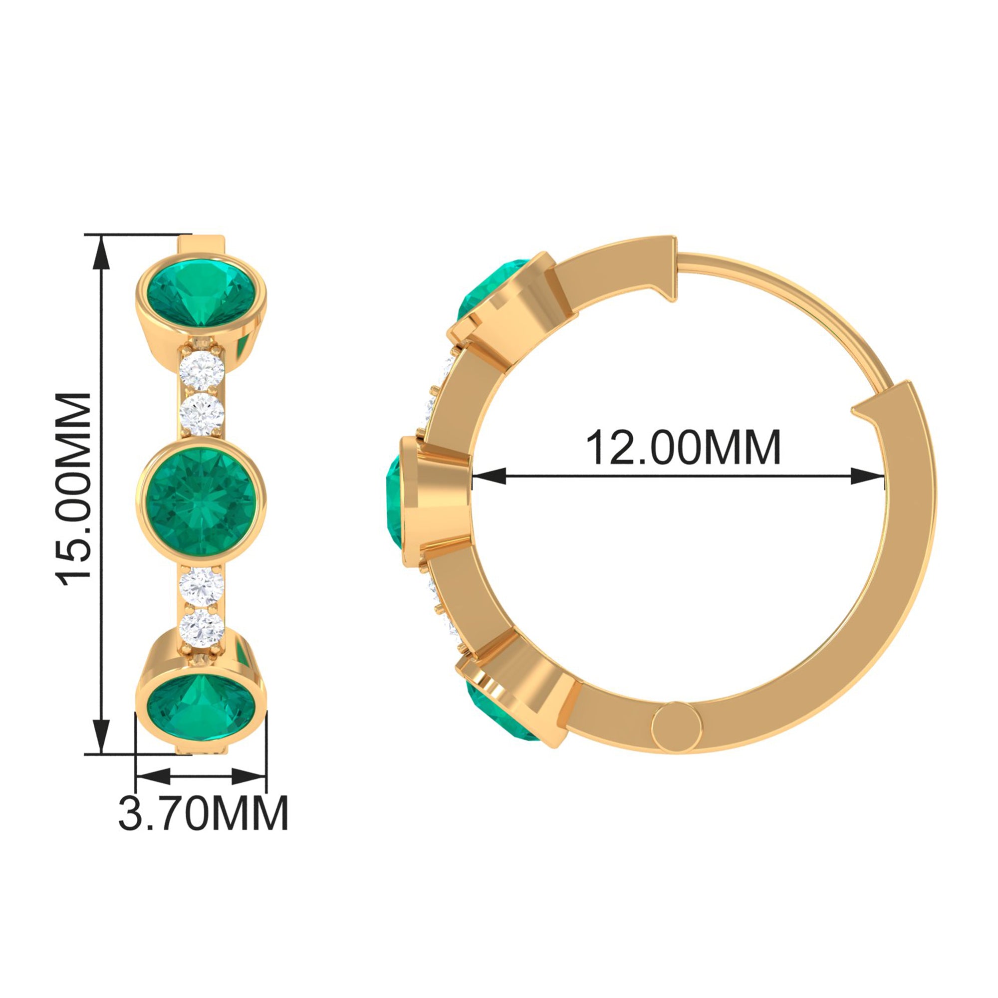 Elevate your style with these dazzling Emerald Hoop Earrings, designed to bring a modern twist to classic elegance. Each hoop features vibrant 3 mm Round Shape emerald stones that add a bold pop of color, beautifully balanced by the subtle sparkle of dainty Diamond stones. The Hinged design makes them easy to wear, providing a comfortable fit that lasts all day. These Emerald Diamond Earrings offer the ideal mix of sophistication and everyday charm, making them a piece you will reach for time and time again. Presented in a signature jewelry box, these Emerald Hoops also make a thoughtful and impressive gift for someone special, perfect for birthdays, anniversaries or celebrations. Versatile and chic, these Green Emerald Earrings effortlessly brighten any outfit while adding a hint of refined sparkle. Whether worn alone or stacked with other favorites, they are the kind of earrings that make you look polished with minimal effort.