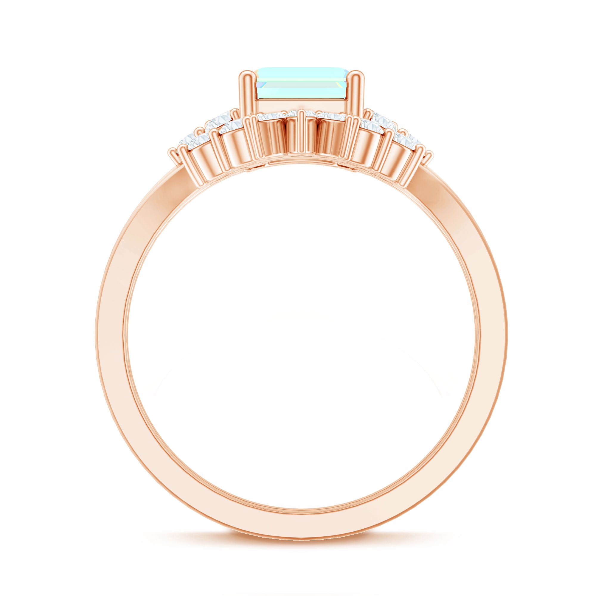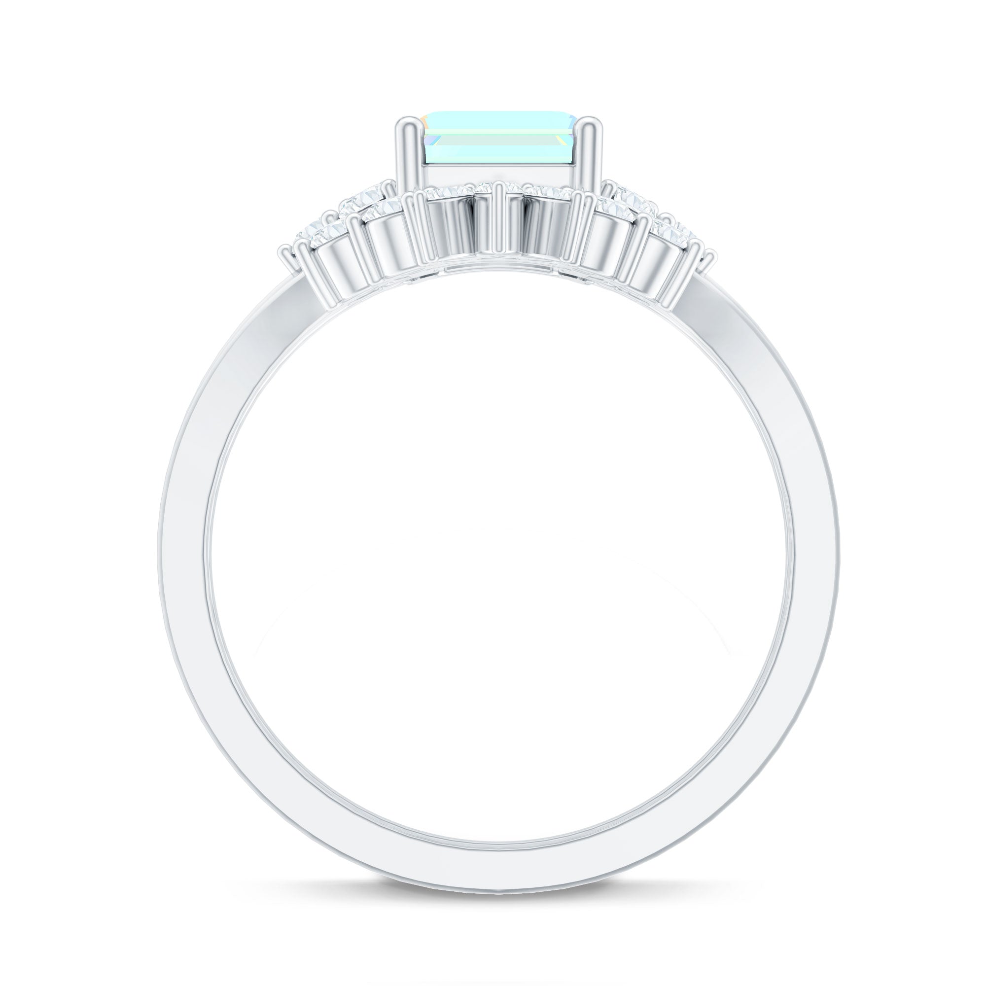 Certified Real Ethiopian Opal Diamond Emerald Cut Engagement Ring with Enhancer
