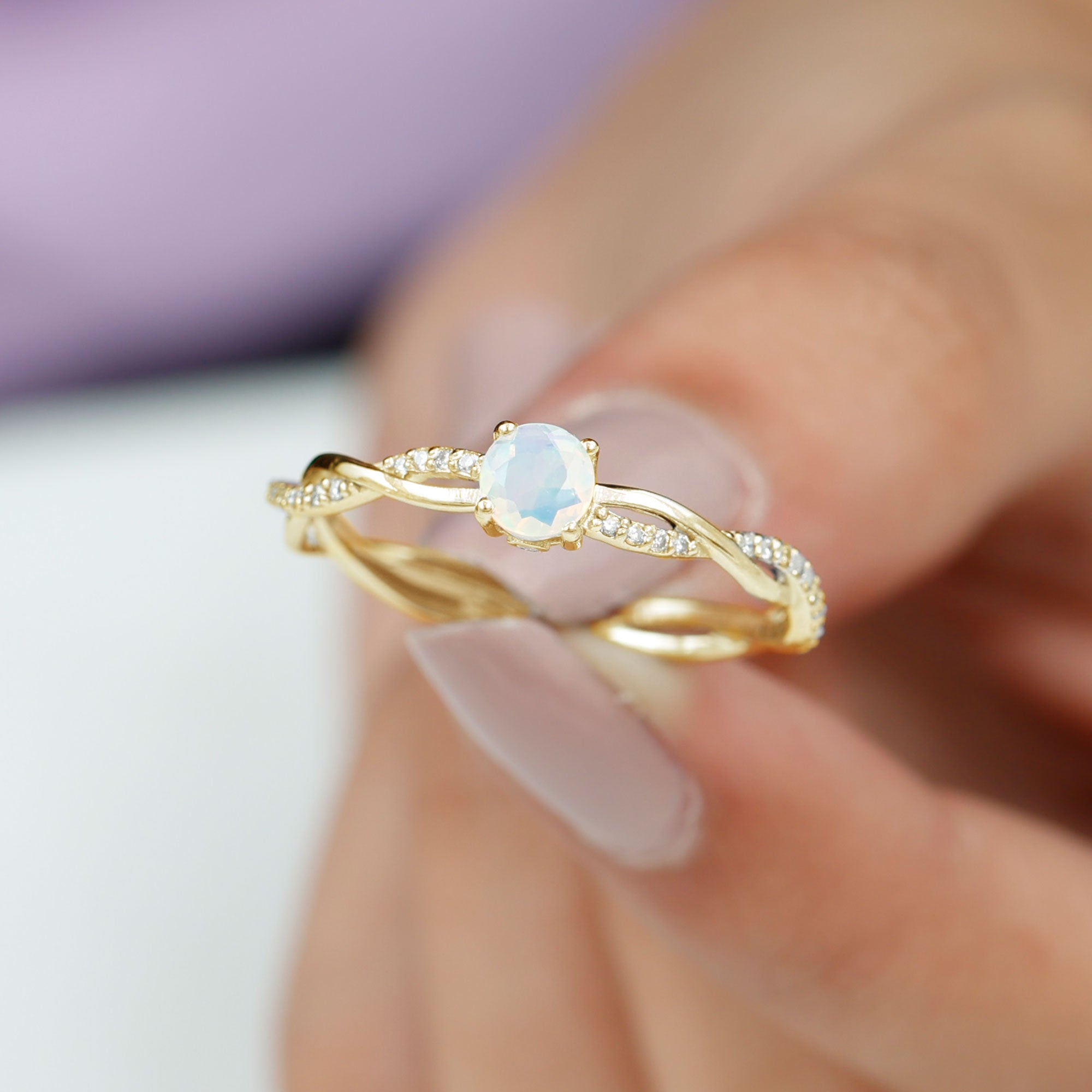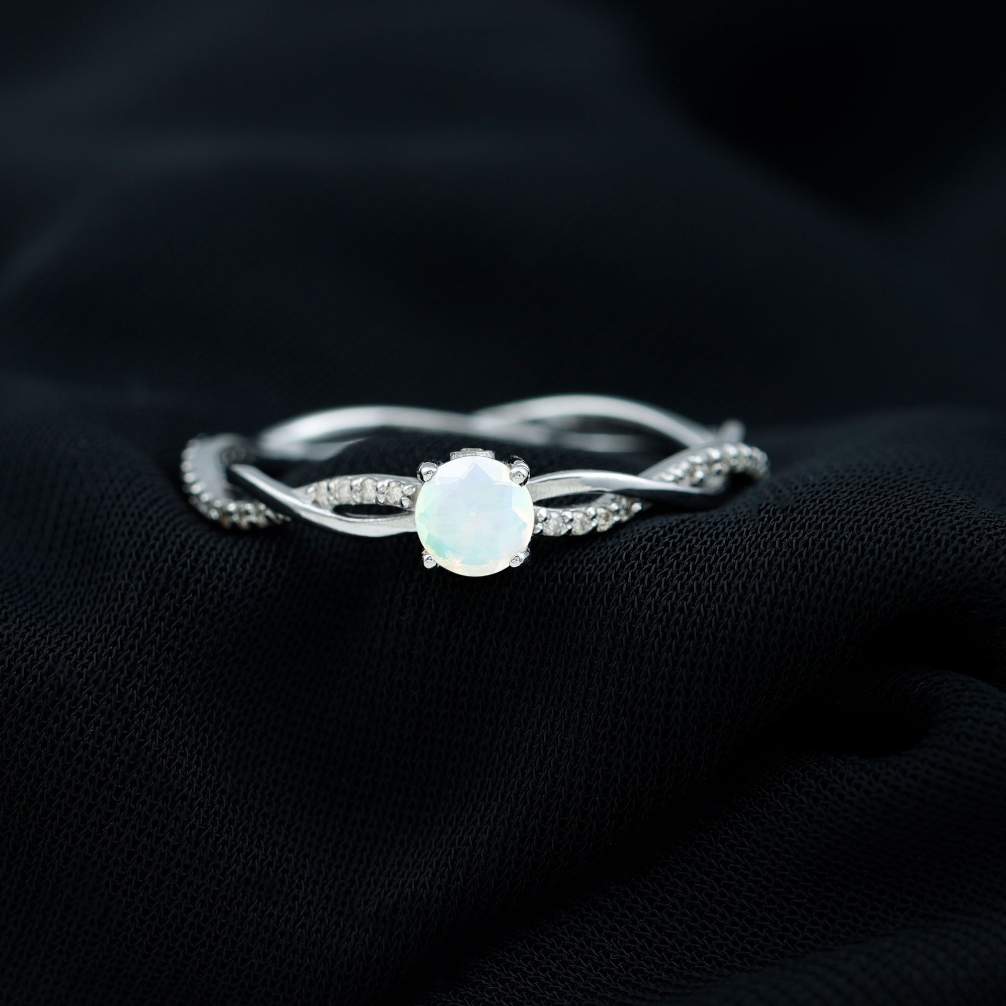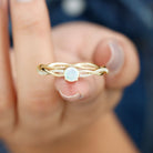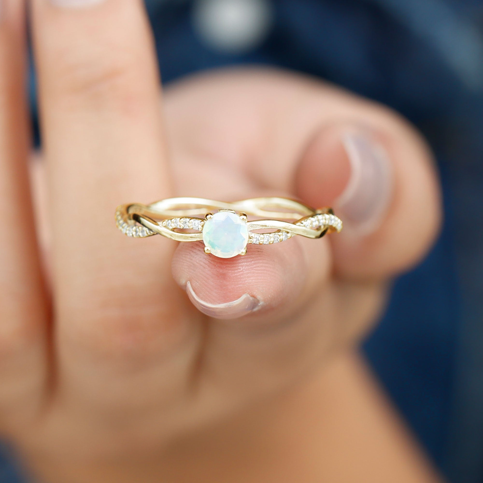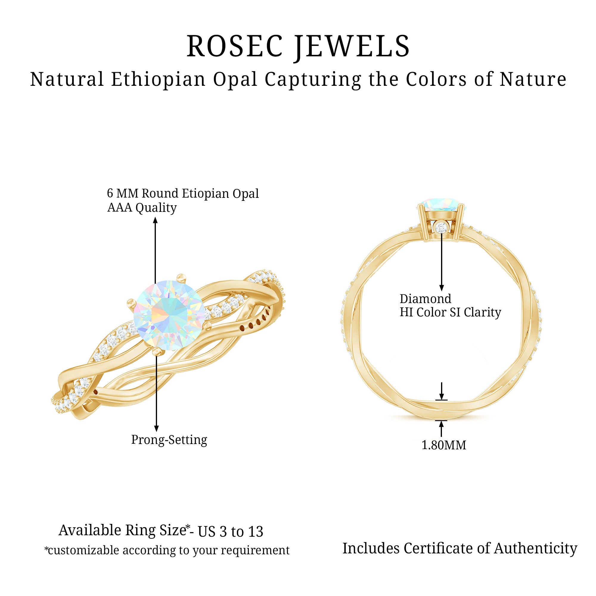 Softly glowing with hues of rainbow, this Ethiopian Opal Engagement Ring is a poetic blend of romance and refined craftsmanship. At the center sits a captivating 6 mm Round Shape Ethiopian Opal, known for its dreamy play of color that shifts with every glance. The gemstone is set atop a beautifully Braided shank, intricately woven with sparkling Diamond stones that symbolize the intertwining of two lives. This Opal Diamond Ring is the kind of ring that feels both effortlessly modern and enchantingly timeless, perfect for the bride who wants something truly one-of-a-kind. Presented in a signature jewelry box and available in various US ring sizes, this Braided Ring is a piece that feels deeply personal. If you are looking for a ring that breaks away from the ordinary while radiating elegance and emotion, this Real Opal Engagement Ring is your perfect match.