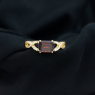 Certified Real Garnet Diamond Emerald Cut Engagement Ring in East West Style