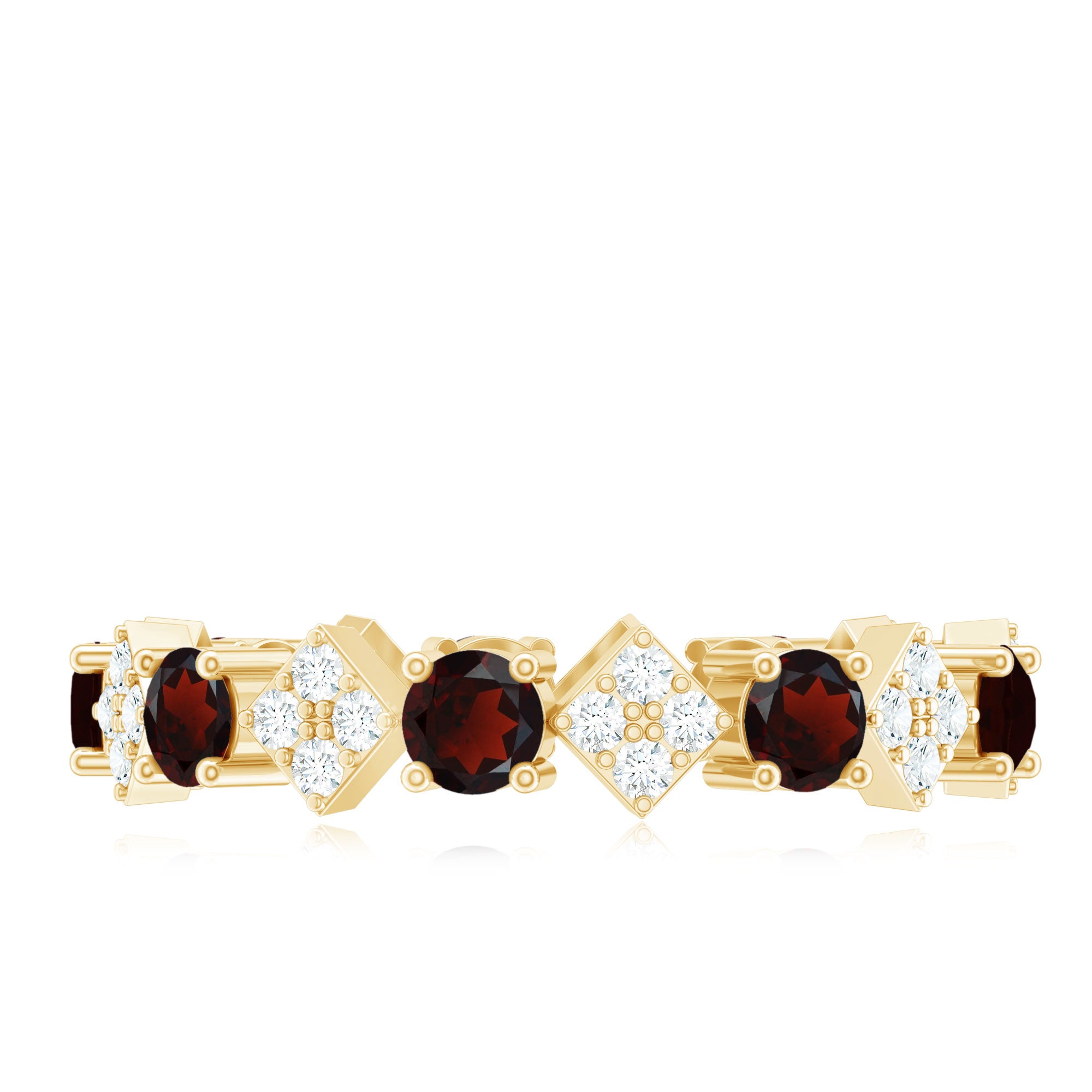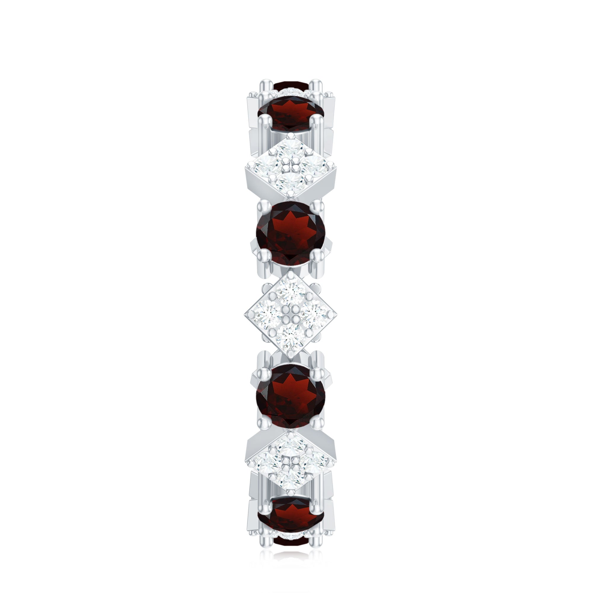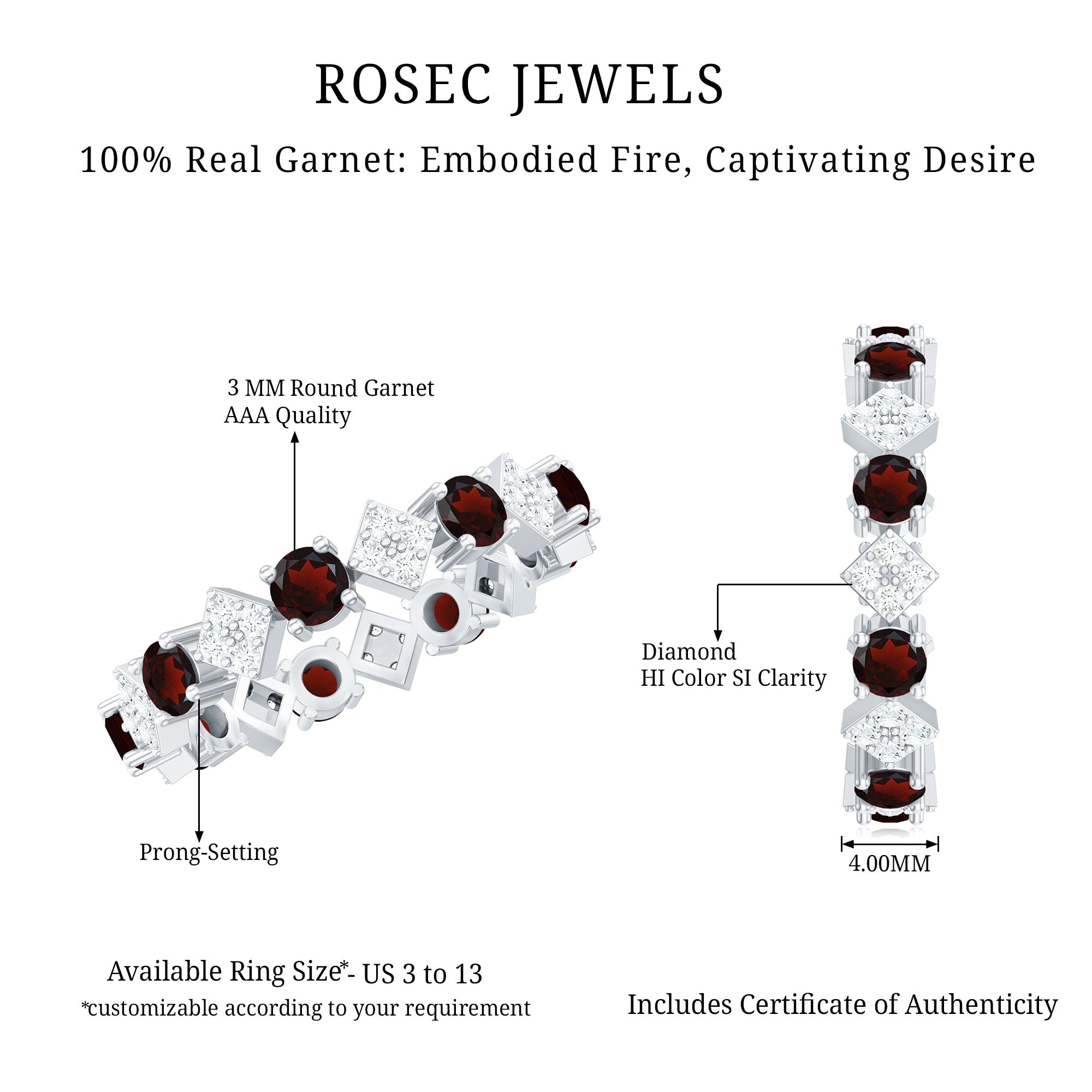 A circle of commitment and everlasting love, this Eternity Wedding Band is the perfect symbol of devotion and unity. Encircling the finger, vibrant 3 mm Round Shape Garnet stones alternate with sparkling Diamond stones studded over the geometric pattern, creating a continuous shimmer that reflects the beauty of a love meant to last a lifetime. Crafted with attention to detail and available in various ring sizes, this Garnet Eternity Band promises a perfect fit and long-lasting comfort. Delivered in a signature jewelry box, this Full Eternity Ring arrives ready to mark a milestone, celebrate a wedding or honor a meaningful anniversary. The deep red Garnet stones evoke warmth and devotion, while the Diamond stones add a touch of brilliance, making this Garnet Diamond Ring a radiant reminder of shared dreams and cherished moments. Let this Red Garnet Ring be a symbol of endless love, a promise that every day together will be filled with passion, beauty and forever memories.