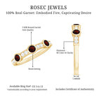 A perfect blend of passion and elegance, this Half Eternity Ring is a beautiful symbol of love that lasts forever. The deep red of the 3 mm Round Shape Garnet stones evokes warmth and devotion, while the dainty sparkling Diamond stones add a touch of brilliance and sophistication. Arranged in a Half Eternity design, the stones create a graceful flow around the finger, capturing light and attention from every angle. Designed to celebrate meaningful moments, this Garnet Eternity Ring is perfect for anniversaries, engagements or simply as a token of love that grows stronger with time. Its comfortable fit ensures it can be worn every day, while its striking combination of AAA Quality Garnet and HI-SI Quality Diamond stones makes it an unforgettable statement piece. Whether you are surprising someone special or treating yourself, this Garnet Diamond Ring carries a message of devotion and elegance that will be cherished for years. Delicate yet timeless, this Garnet Ring for Women is a meaningful reminder of eternal love and a sparkling celebration of every cherished memory.