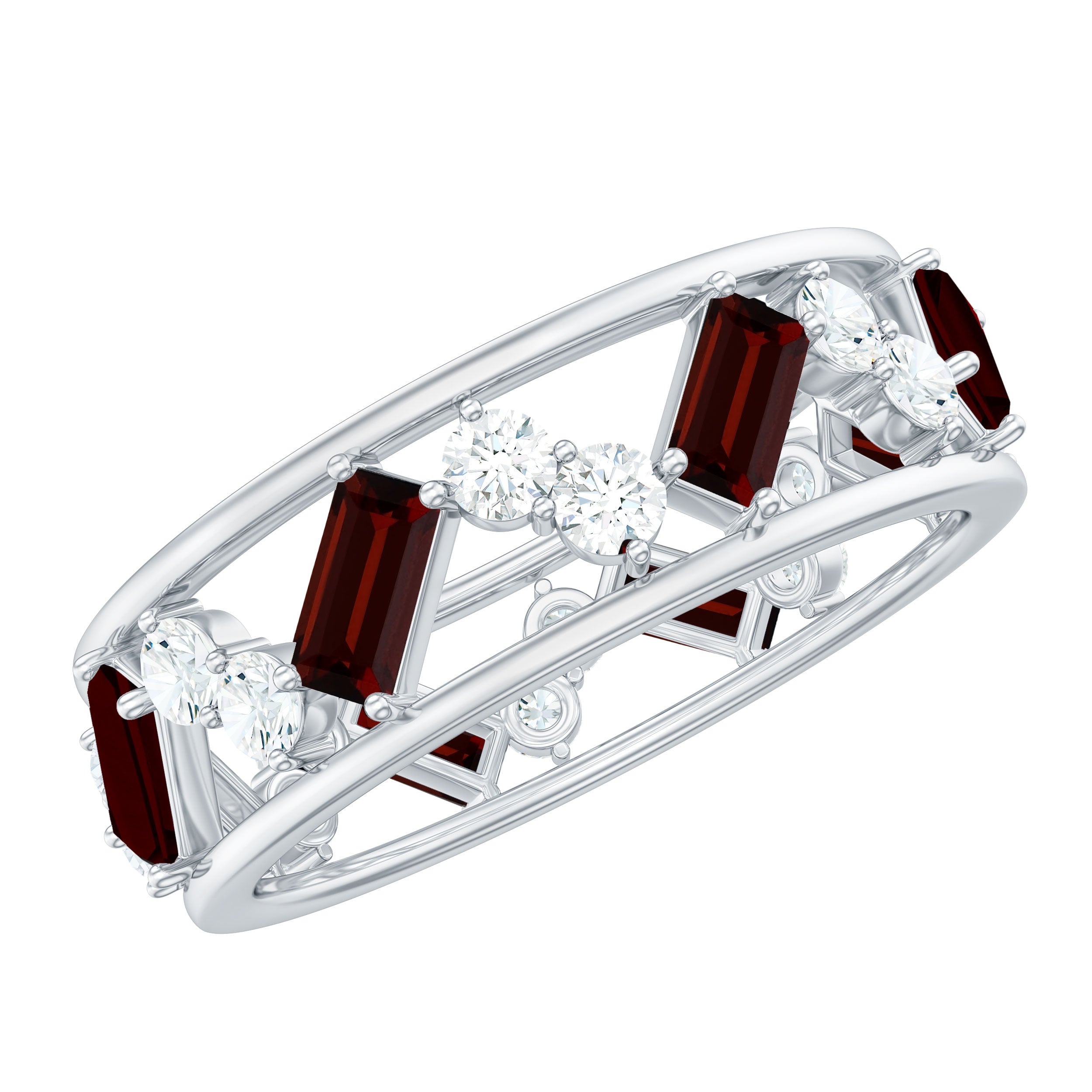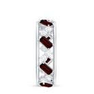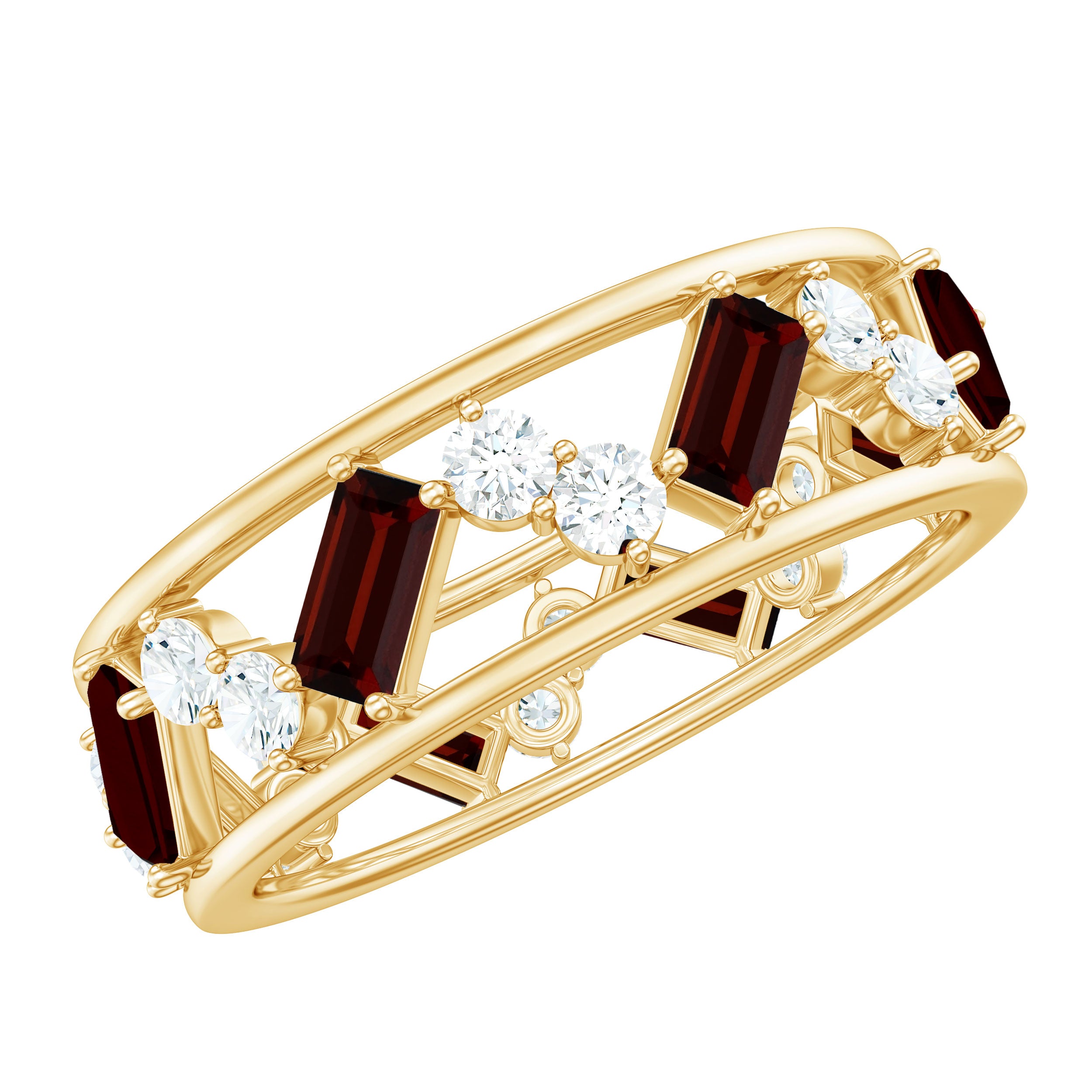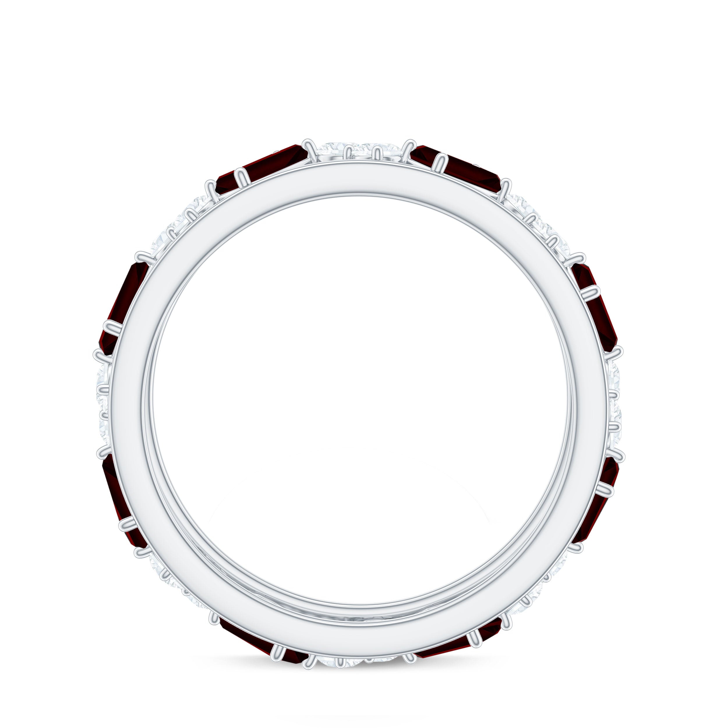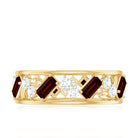 Make a stunning statement with this Garnet Eternity Band, a bold and dazzling celebration of love. The Baguette Shape Garnet and sparkling Round Shape Diamond stones are expertly set in a playful zigzag pattern, creating a dynamic design that catches the light from every angle. The deep red AAA Quality Garnet stones evoke passion and devotion, while the HI-SI Quality Diamond stones add just the right sparkle to elevate the look with elegance and sophistication. This Thick Wedding Band is perfect for women who love jewelry that combines modern flair with timeless charm. Its striking pattern makes it an eye-catching piece for special occasions, yet its comfortable fit allows it to be worn daily as a meaningful reminder of enduring love. Whether you are marking an anniversary or a special milestone, this Baguette Wedding Band tells a story of connection and devotion. Designed to be both bold and romantic, this Garnet Diamond Ring is a sparkling testament to love that is as unique and vibrant as the wearer herself.