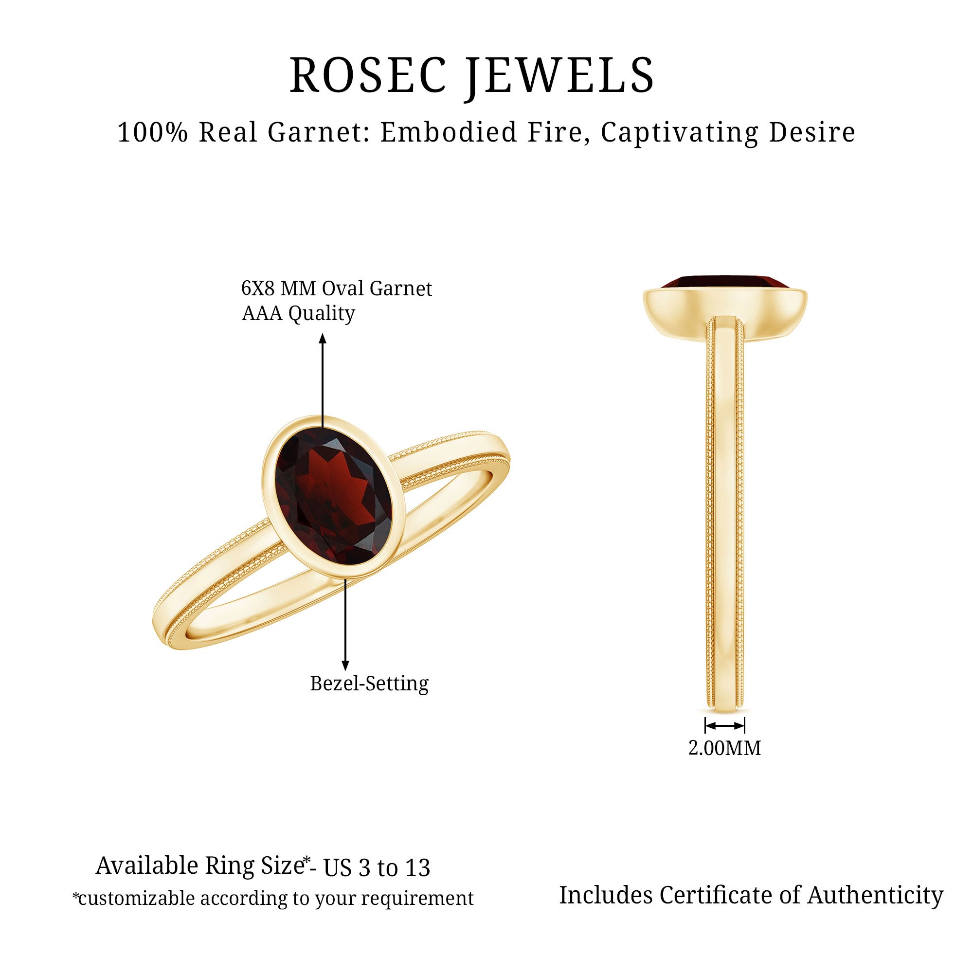 Mark your love story with this enchanting Oval Engagement Ring, a piece that perfectly captures romance and timeless elegance. The 6X8 mm Oval Shape Garnet set in Bezel Setting as a center stone glows with a rich, passionate red, symbolizing deep devotion and a bond that grows stronger with every passing day. The band features delicate Beaded detailing, adding a subtle texture that enhances the vintage inspired charm while keeping the overall design graceful and refined. Available in various ring sizes and presented in a signature jewelry box, this Garnet Engagement Ring is ready to create an unforgettable moment for the one you love. Its versatile elegance allows it to pair effortlessly with daily wear or special occasion outfits, making it a cherished piece she will treasure forever. Whether you are planning a heartfelt proposal, celebrating a milestone or simply expressing your eternal love, this Bezel Set Engagement Ring is a radiant symbol of passion, commitment and timeless beauty.