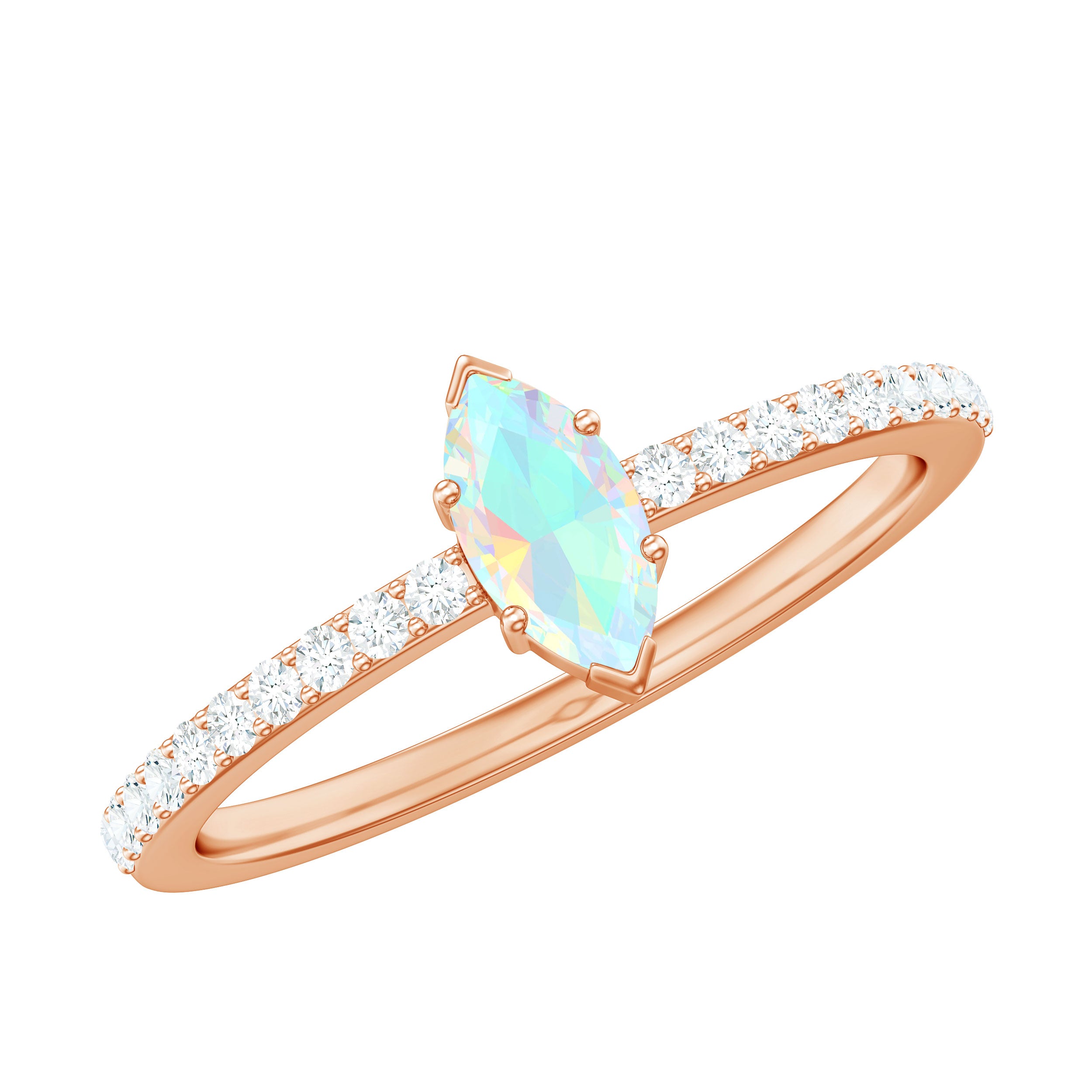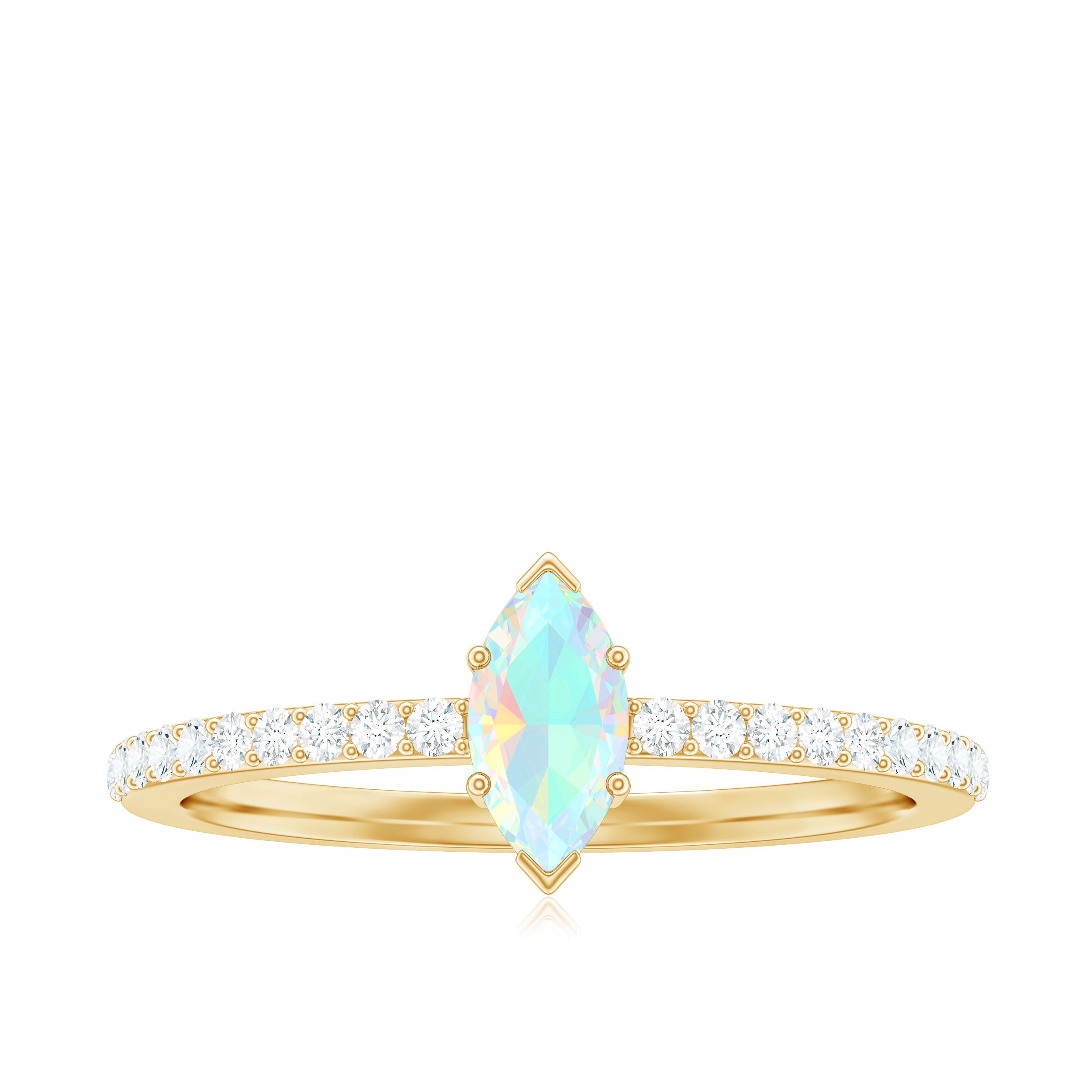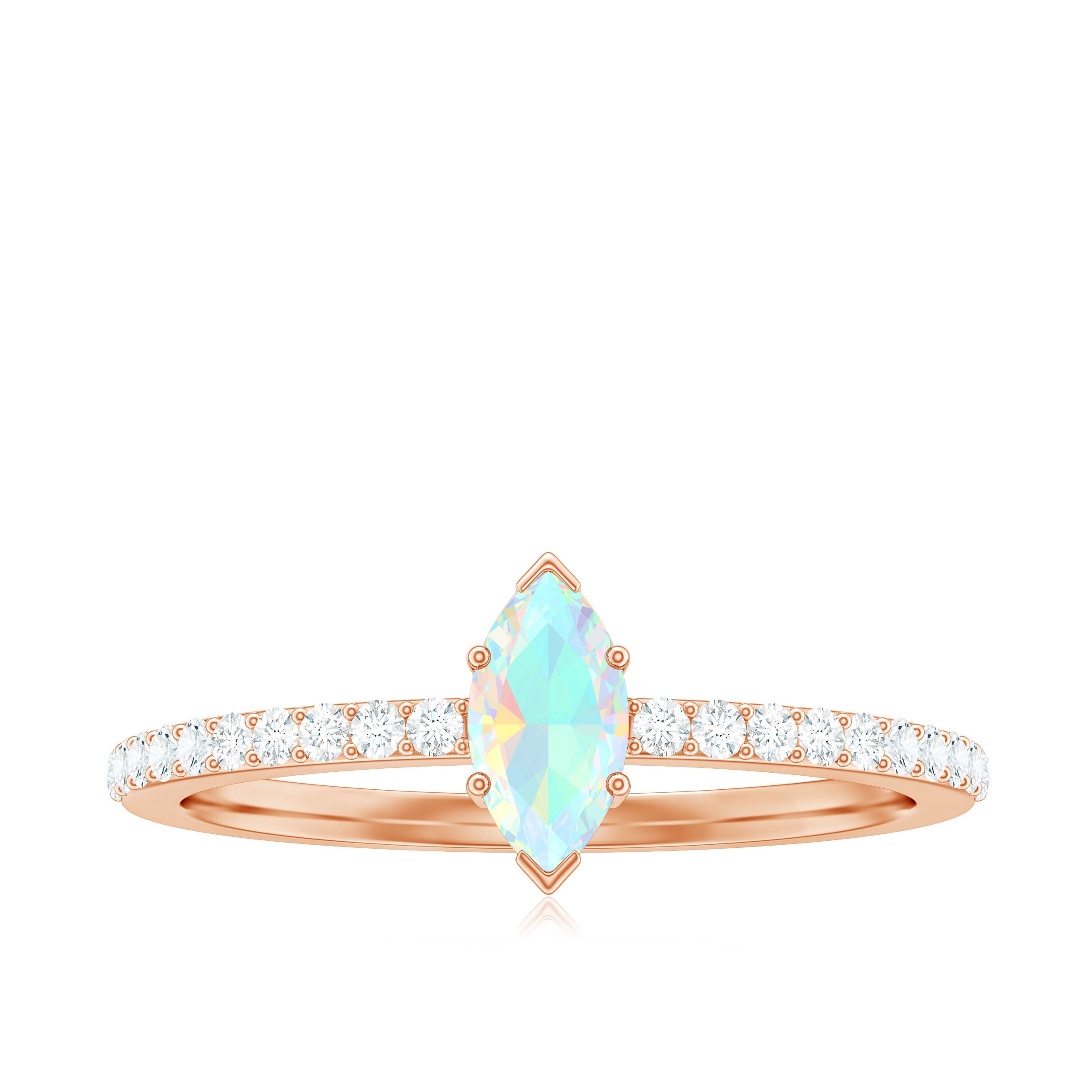 Certified Real Marquise Ethiopian Opal Promise Ring with Diamond