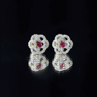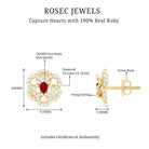 Certified Real Ruby Diamond Flower Stud Earrings with Screw Back
