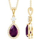 Certified Rhodolite Garnet Teardrop Necklace with Diamond Halo