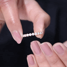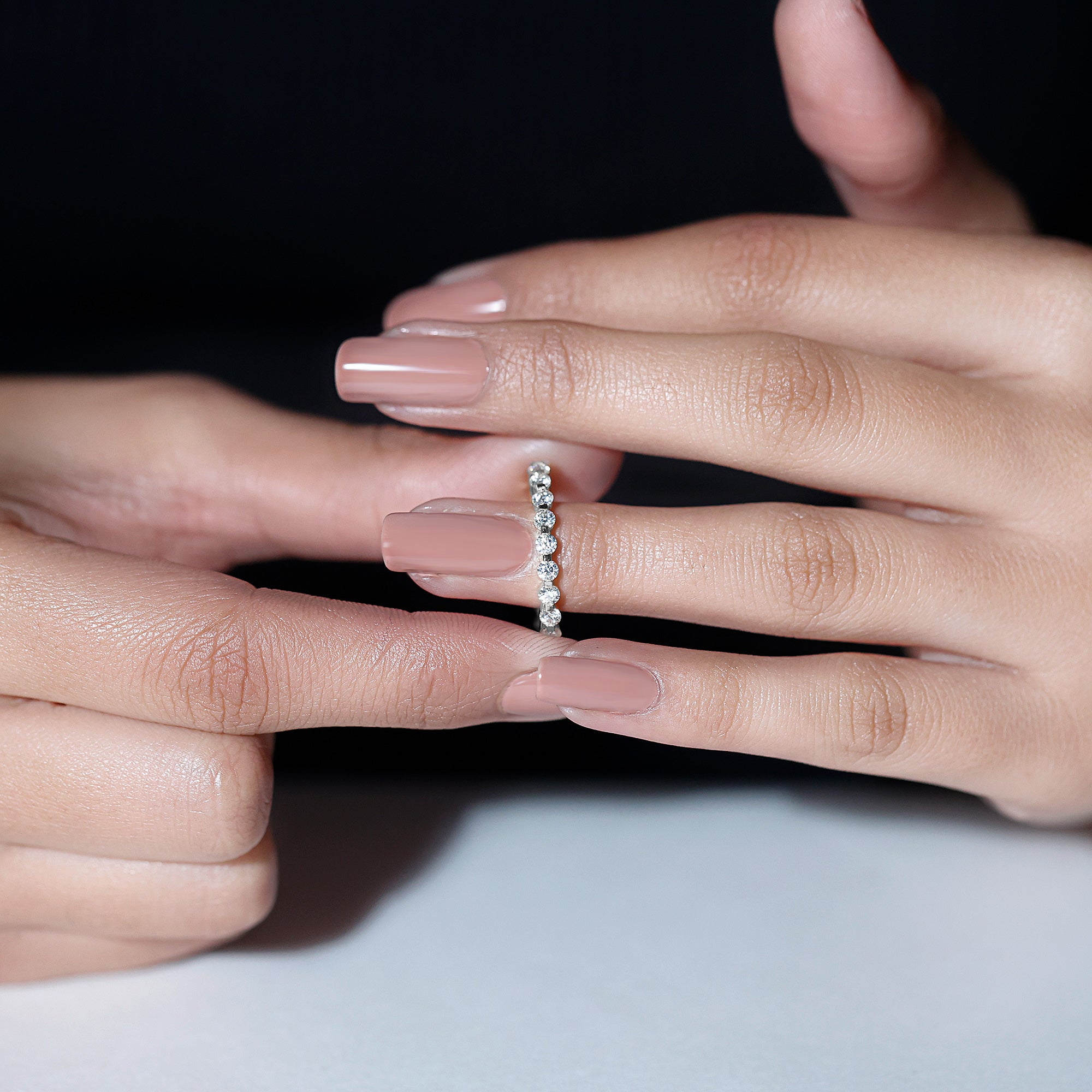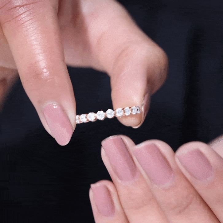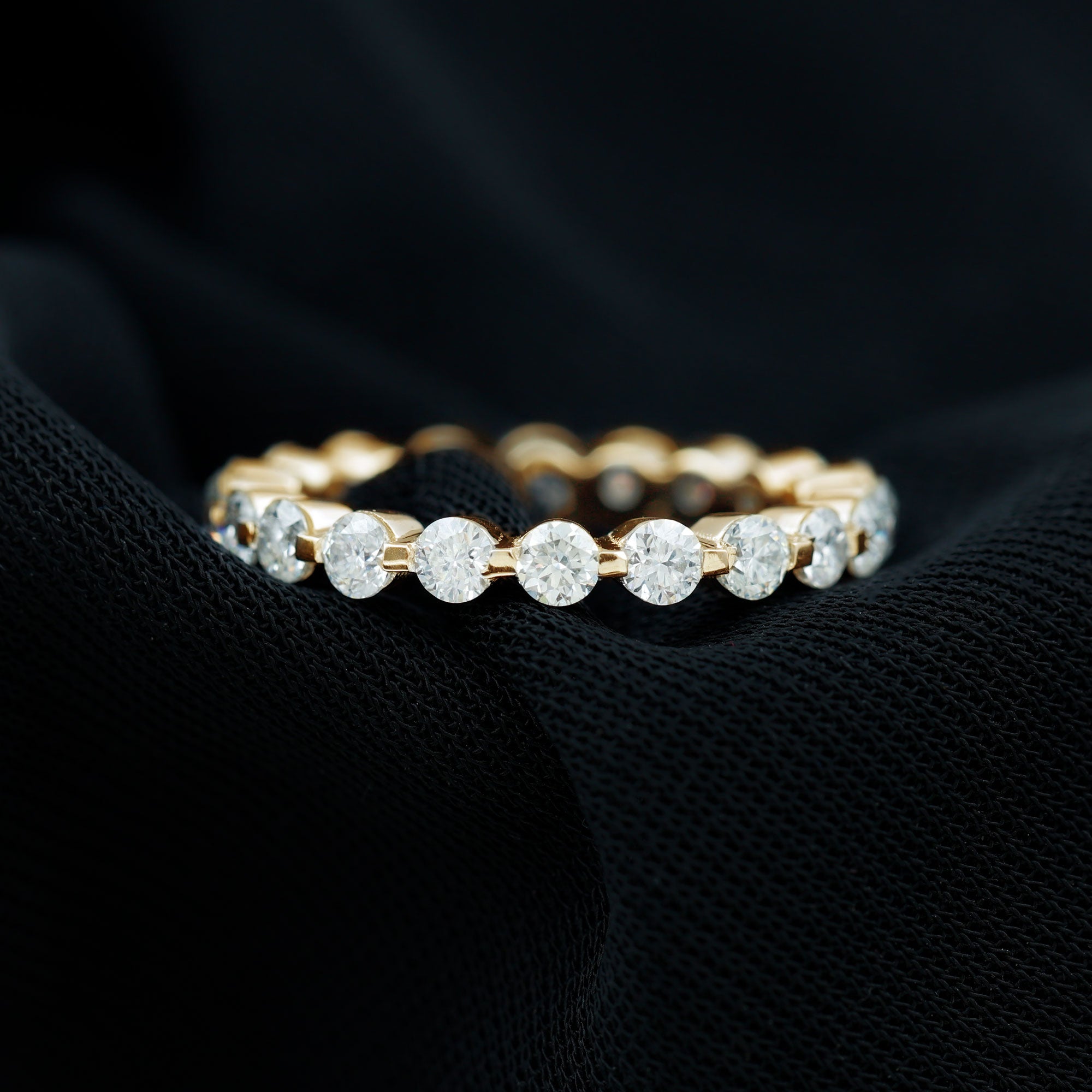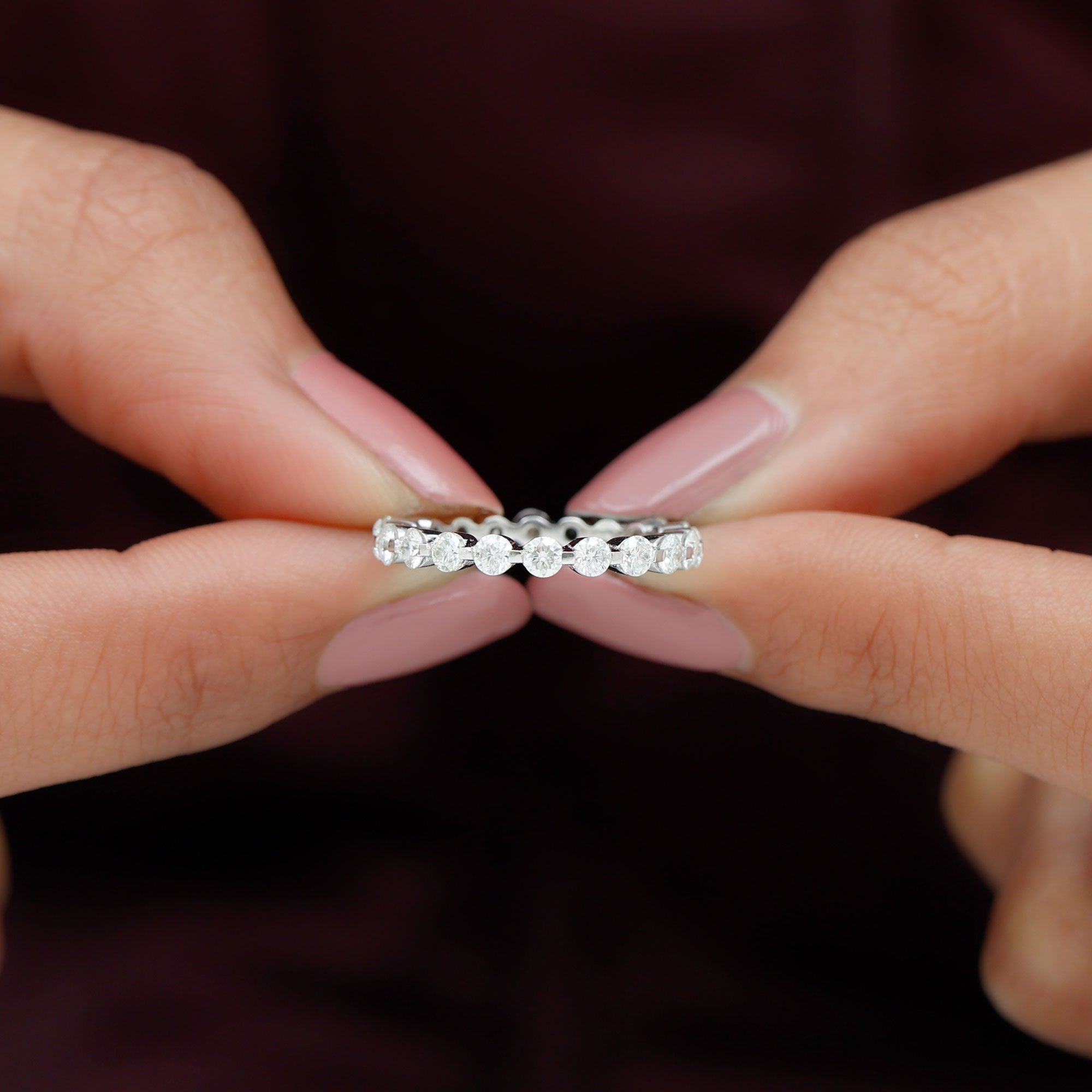 This classic Moissanite Eternity Band is the perfect choice for your special day. The band features Round Shape Moissanite delicately placed in Prong Setting. Express your feelings to your special one by presenting this Wedding Anniversary Band. The adorable shine of the D-VS1 Moissanite embedded in the ring will be a standout addition to your jewelry vault. This band is a minimal yet classic representation of your bond with your partner. This Round Eternity Ring can be styled solely to get a minimal look or can be stacked with the statement ring to get a signature look.