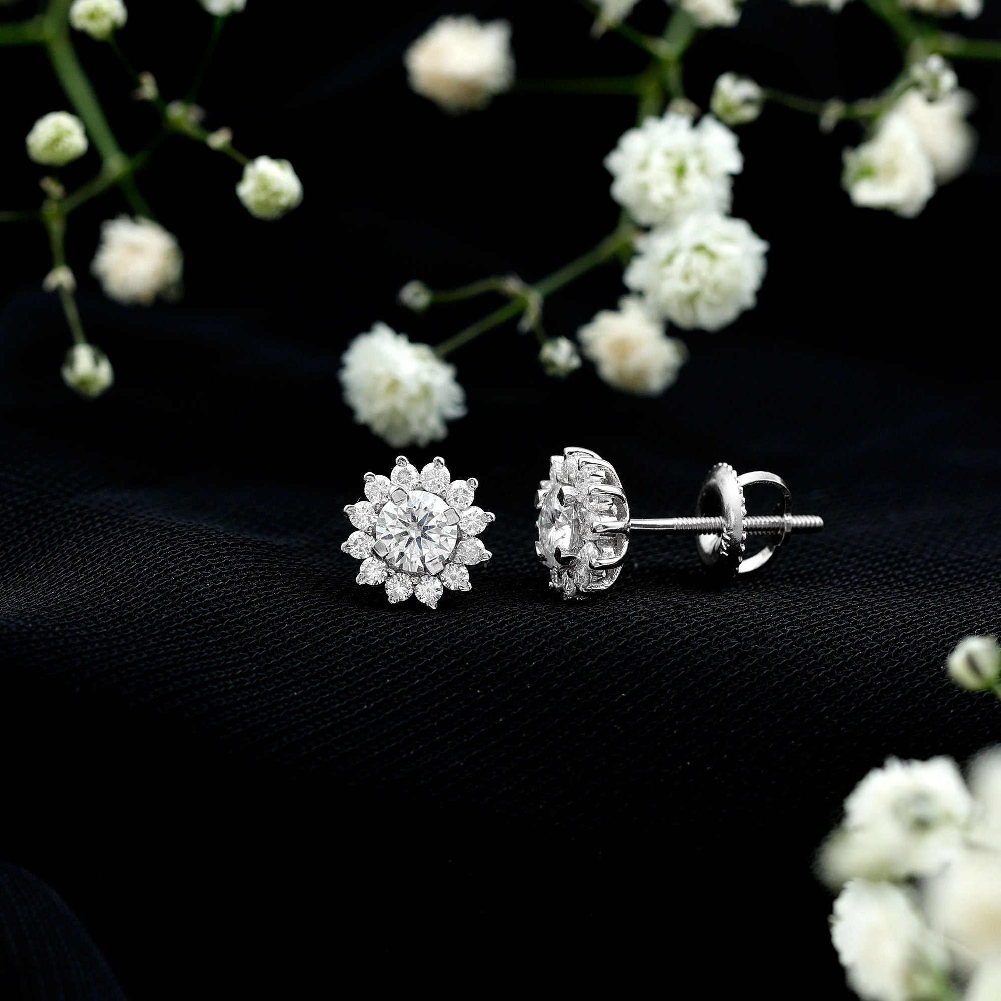 Certified Round Cut Moissanite Halo Stud Earrings for Women