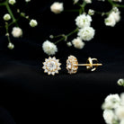 Stunning and Unique Sunburst Stud Earrings embellished with 4 MM Round Cut Moissanite are set in centre in a Claw Setting surrounded with more Round Moissanites in Prong Setting, crafted in a top-notch quality metal. These Halo Stud Earrings are the epitome of grace and capture all the attention with the adorable shine of D-VS 1 Quality Moissanite. The Screw Back Closure of these earrings will keep the earrings on place throughout the time they are adorned. These Nature Inspired Stud Earrings can be a perfect gift for occasions such as birthdays, anniversaries, or any special day. We ensures that the earrings will be delivered to you in a premium quality box with the certificate of gemstone authentication.