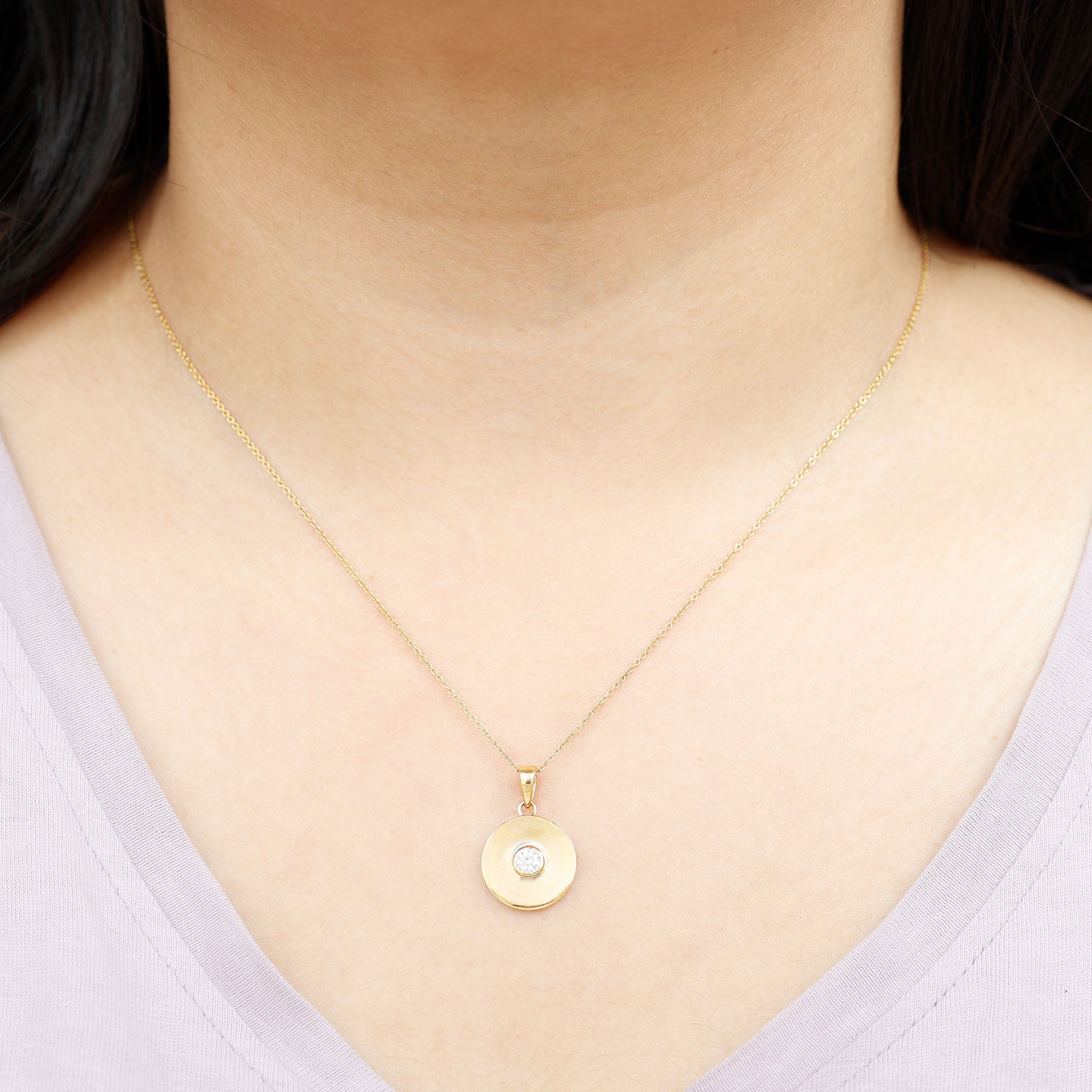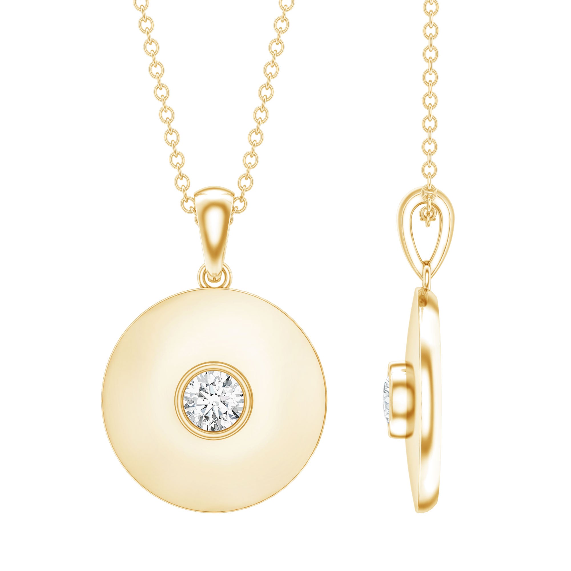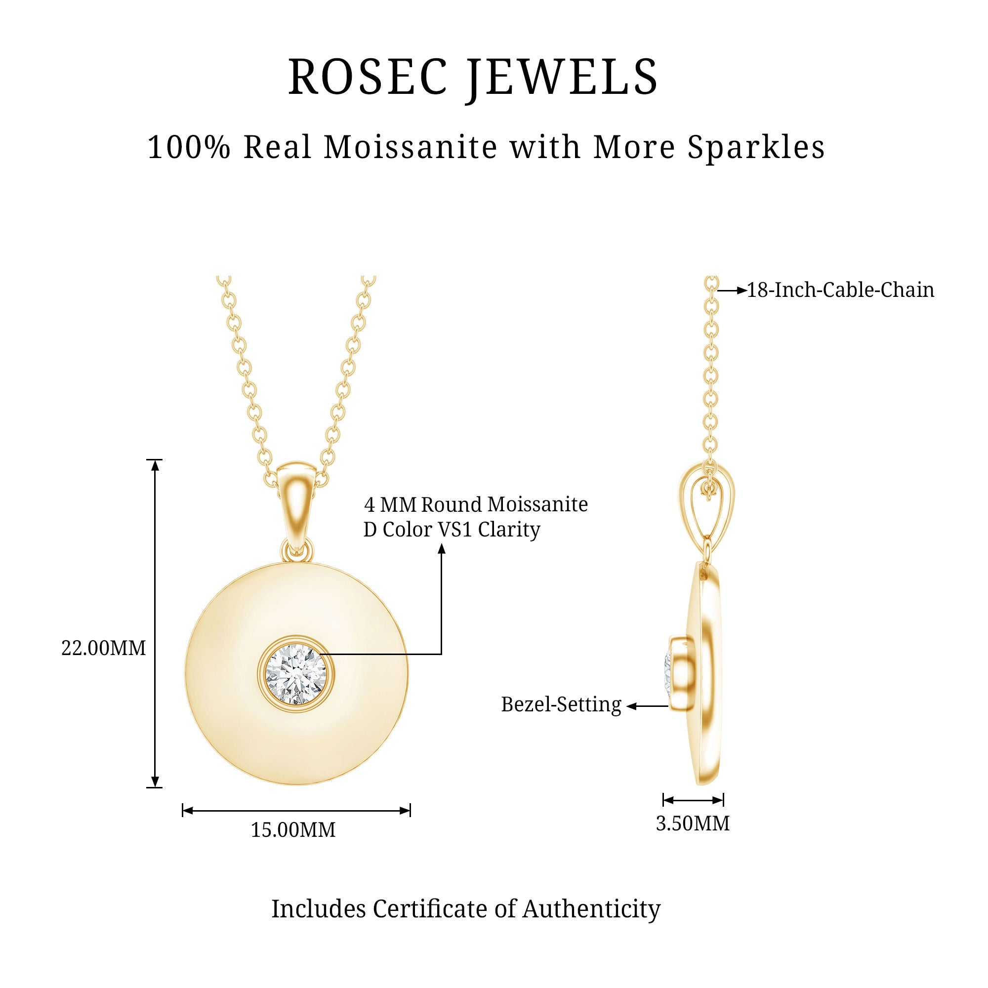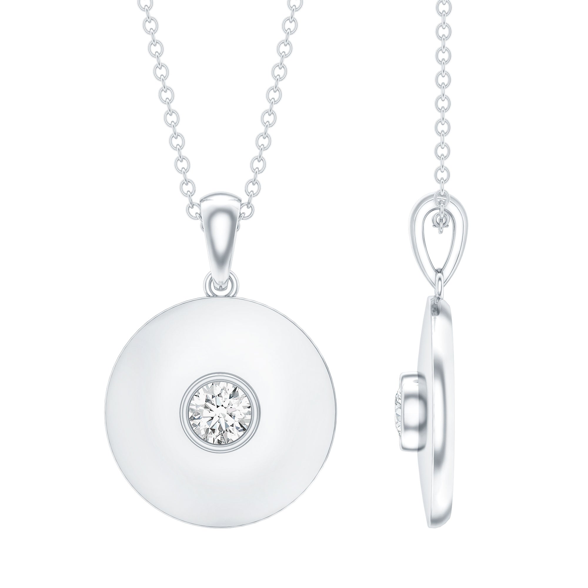 Certified Round Moissanite Disc Necklace in Bezel Setting