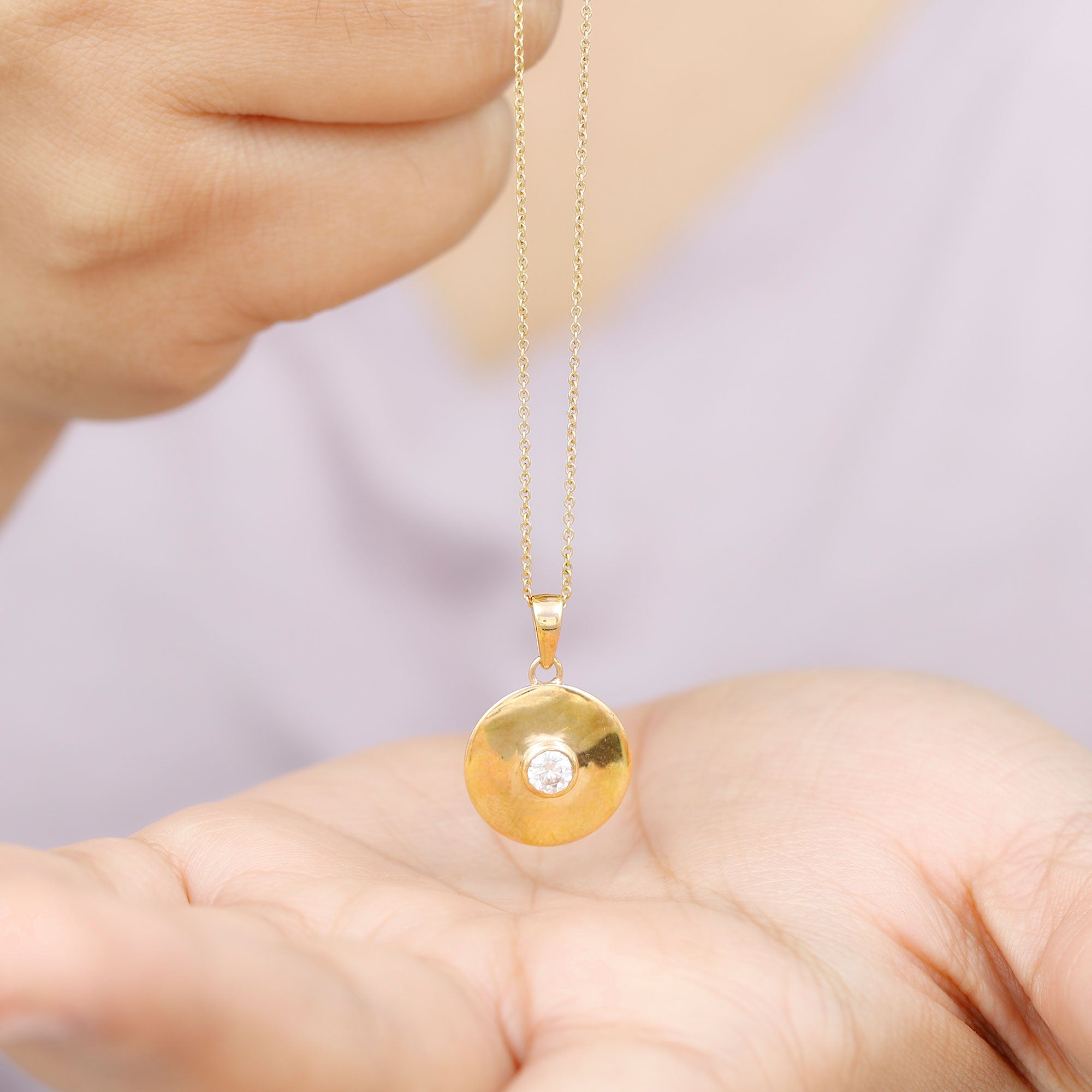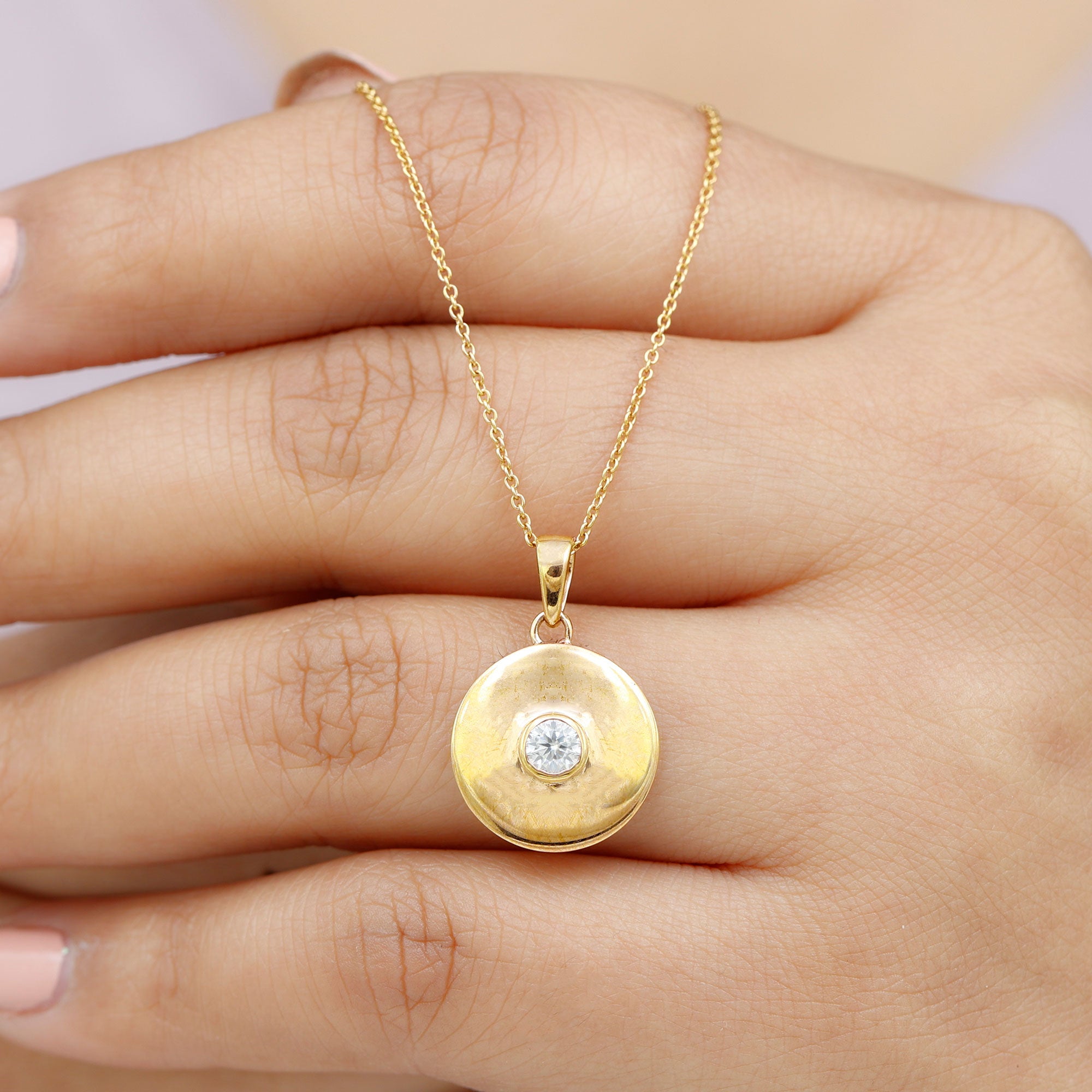 Make her birthday feel even more special with a gift that is simple, elegant, and full of sparkle. This beautiful Disc Pendant is a thoughtful way to celebrate her day and create a memory she will always cherish. The pendant features a sleek round disc design that gives it a modern and stylish look. At the center of the disc sits a small round cut moissanite that shines beautifully with every movement. The stone is set in secure bezel setting, which not only keeps it safe but also gives the Moissanite Pendant Necklace a smooth finish. The gentle sparkle of the moissanite adds just the right touch of elegance without being too flashy. This Round Pendant is easy to wear and pairs well with almost any outfit. Whether she is dressing up for a special occasion or wearing it with her everyday style, the simple design makes it a lovely piece she can enjoy anytime. It arrives carefully packed in a signature jewelry box along with a certificate of authenticity, making it ready for gifting. Sweet and stylish, this Moissanite Circle Necklace is a wonderful birthday gift that will remind her of your love every time she wears it.
