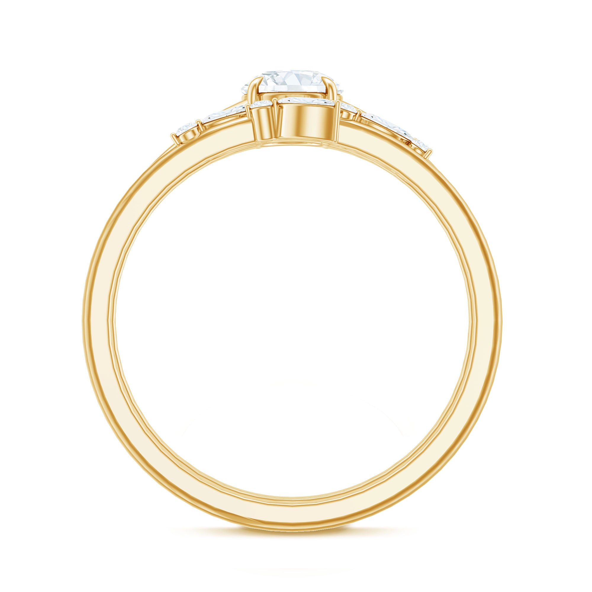 Designed for those who love modern style, this Solitaire Wedding Ring Set combines elegance with a contemporary look. Made from high quality metal and featuring bright D-VS1 quality moissanites, the Engagement Ring with Wedding Band Set includes two rings that work beautifully together. The first ring is a solitaire engagement ring with a sparkling 5 MM round moissanite held securely in claw setting. Its simple design lets the stone shine, giving the ring a timeless yet modern feel that suits any style. The second ring is a stackable ring enhancer designed to fit perfectly alongside the solitaire. It is decorated with both marquise and round moissanite stones, adding a touch of unique detail and extra sparkle. Together, the two rings create a balanced and stylish look that feels modern. This Moissanite Bridal Ring Set is ideal for anyone who wants jewelry that stands out but remains elegant and wearable every day. At Rosec Jewels, each ring is carefully crafted to offer comfort and durability, so you can wear it with confidence on any occasion, from everyday moments to the most special celebrations. Whether you are looking for the perfect Bridal Set or a meaningful gift, this Modern Wedding Set delivers a contemporary style that is both beautiful and timeless.