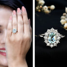 The beautiful and overwhelming choice for every bride-to-be is the stunning Sky Blue Topaz Ring, which is associated with love and eternal affection. Embellished with 6X8 MM Oval Shape Sky Blue Topaz in Prong Setting with the Round brilliant cut Moissanite Halo. So, turn heads and win hearts with this stunning Topaz Cocktail Ring, which results in a dramatic and eye-catching piece of jewelry. Having a timeless appearance, this Topaz Engagement Ring has a unique taste that would suit your personality as well. Its unique aesthetic creates a one-of-a-kind Topaz Cocktail Ring that is classic and elegant with a flair for creativity. This Topaz Statement Ring is the jewel of love that aligns with the sentiments you carry in your relationship. So, gear up your special occasions, be it your engagement, a cocktail party or any other event, it is perfect to turn heads that will never go out of style. An unforgettable sparkle, it is a heirloom piece of jewelry that can be passed down through generations.