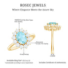 Certified Sky Blue Topaz 6X8 MM Oval Engagement Ring with Moissanite Halo