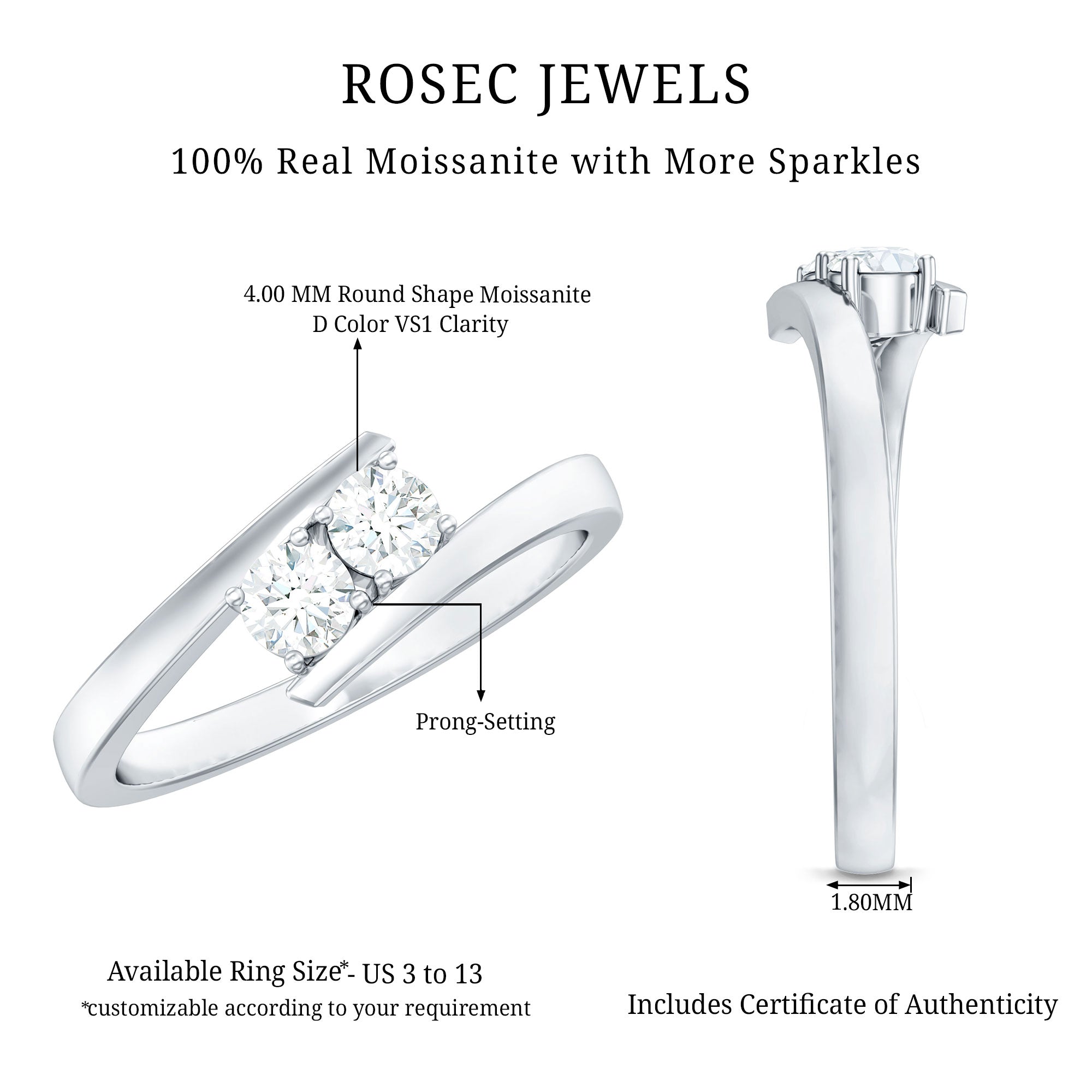 This Two Stone Moissanite Ring is a beautiful symbol of unity, representing two souls coming together as one. Featuring two perfectly matched 4 MM round cut Moissanites, each secured in prong setting, this You and Me Ring captures the essence of shared journeys and enduring love. The stones rest gracefully at the center of a sleek and contemporary bypass shank, creating a visual flow that reflects harmony, movement, and connection. Crafted for those who appreciate simplicity with meaning, this Toi et Moi Ring delivers subtle elegance and heartfelt symbolism. The D-VS1 moissanites sparkle with exceptional brilliance. Whether gifted as a promise ring, an anniversary keepsake, or a modern engagement ring, it is designed to speak the language of lasting commitment. With its simple band and sparkling stones, this Minimalist Promise Ring fits seamlessly into both everyday wear and special occasions. Available in your choice of metal colors and types, this Moissanite Bypass Ring arrives in a premium jewelry box and includes a certificate of authenticity, ensuring it is ready to gift or cherish from the moment it is received.