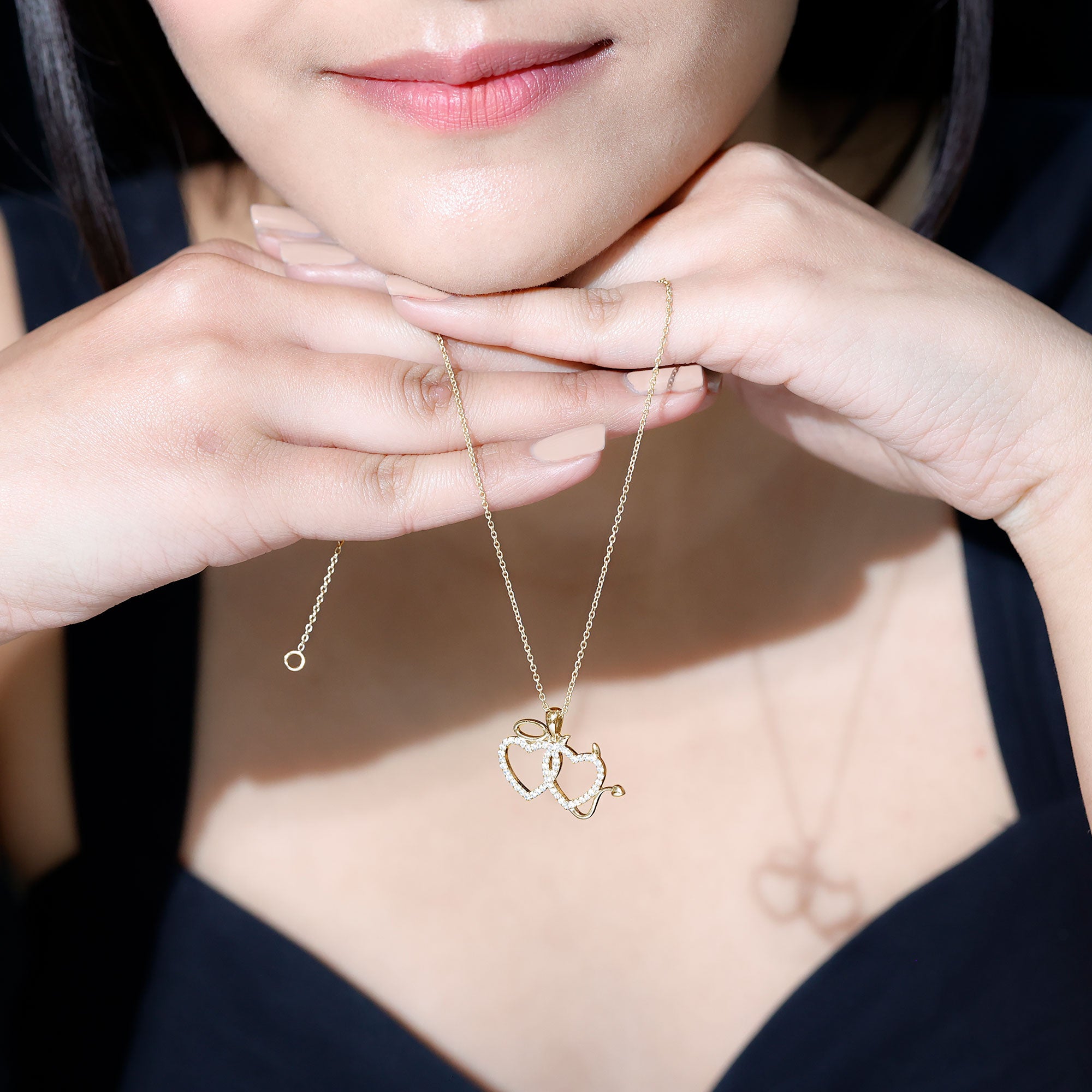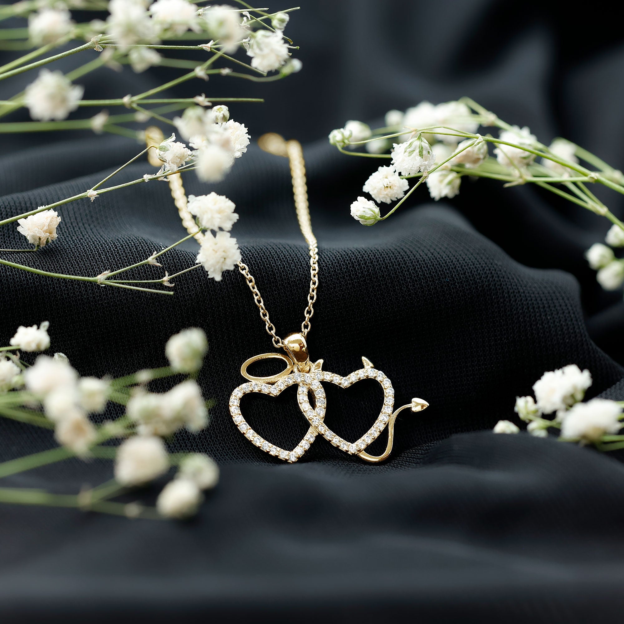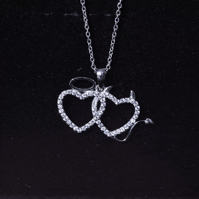 Certified Zircon Angle and Devil Twin Heart Necklace