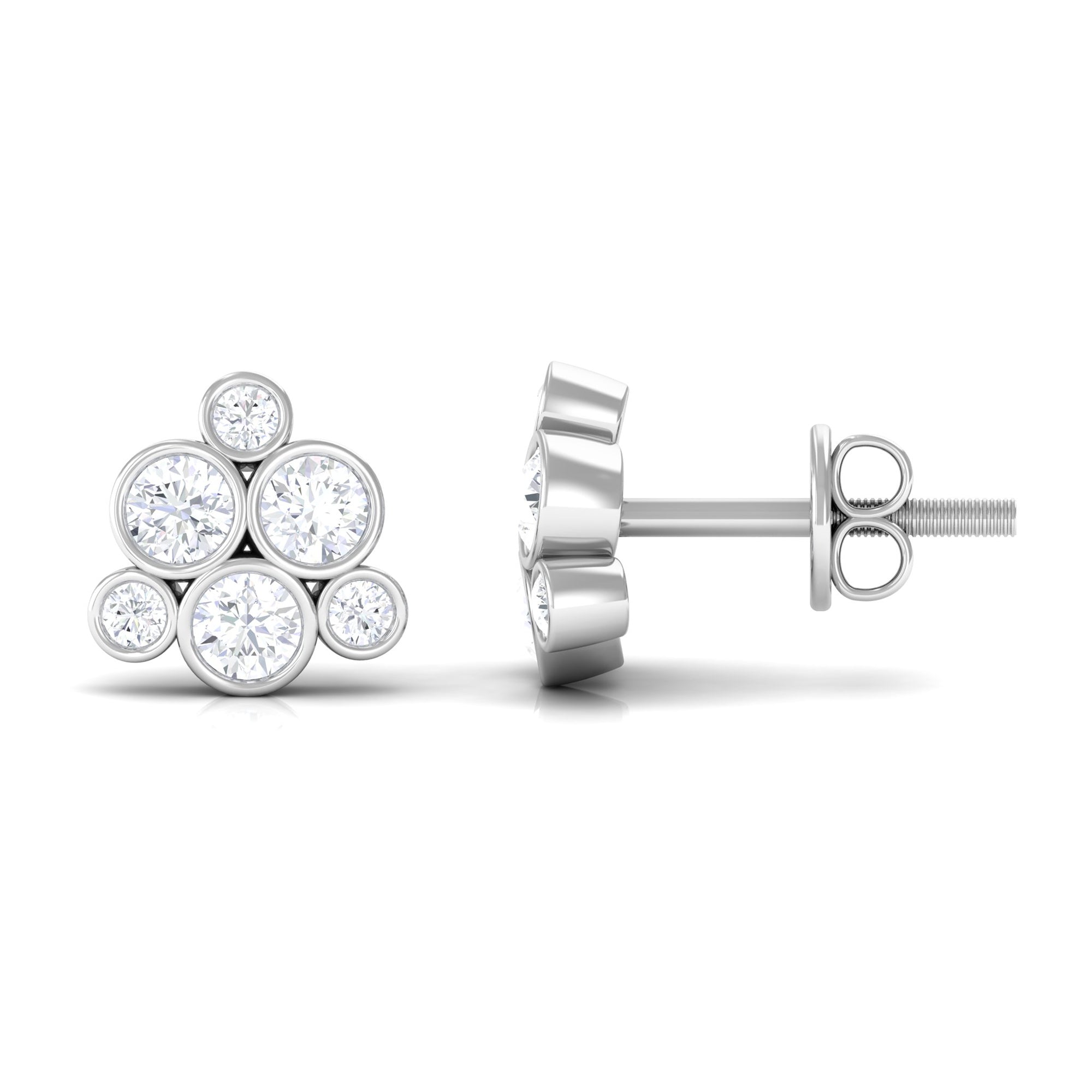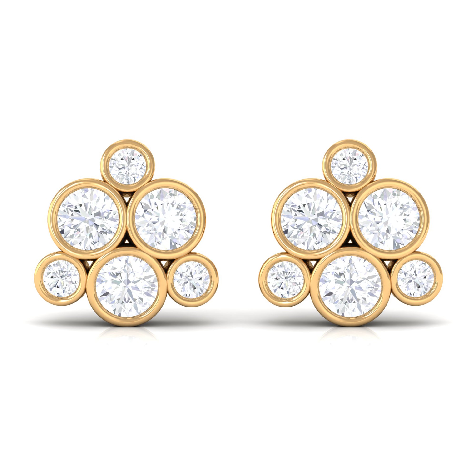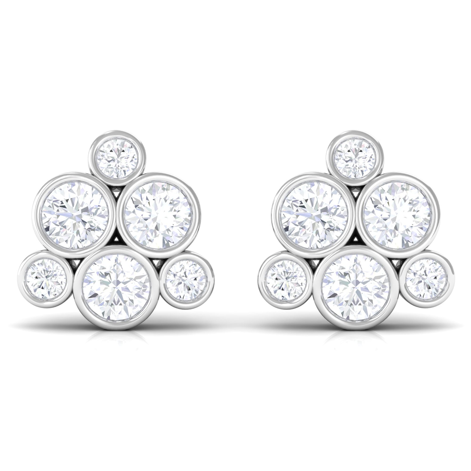 Certified Zircon Cluster Stud Earrings in Bezel Setting