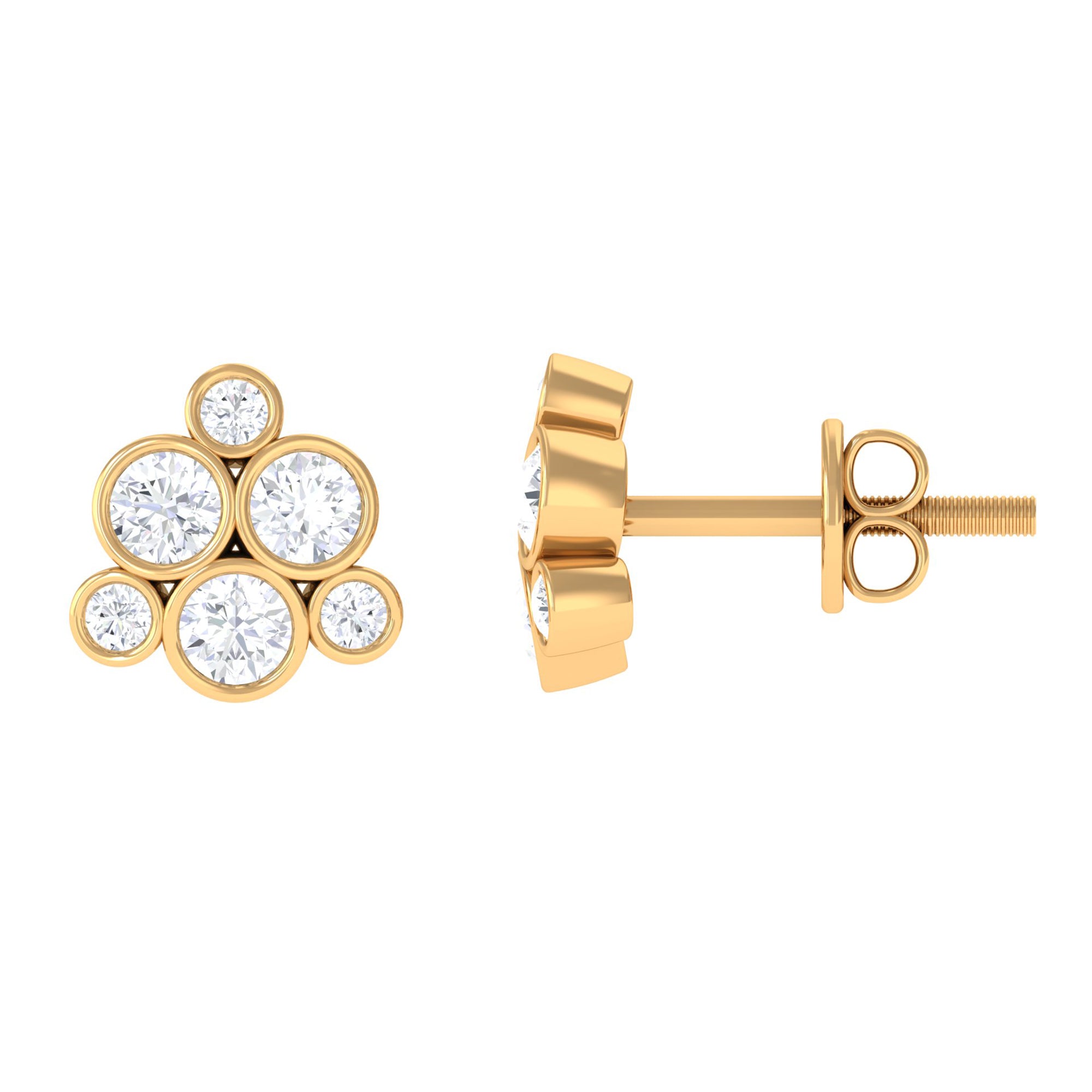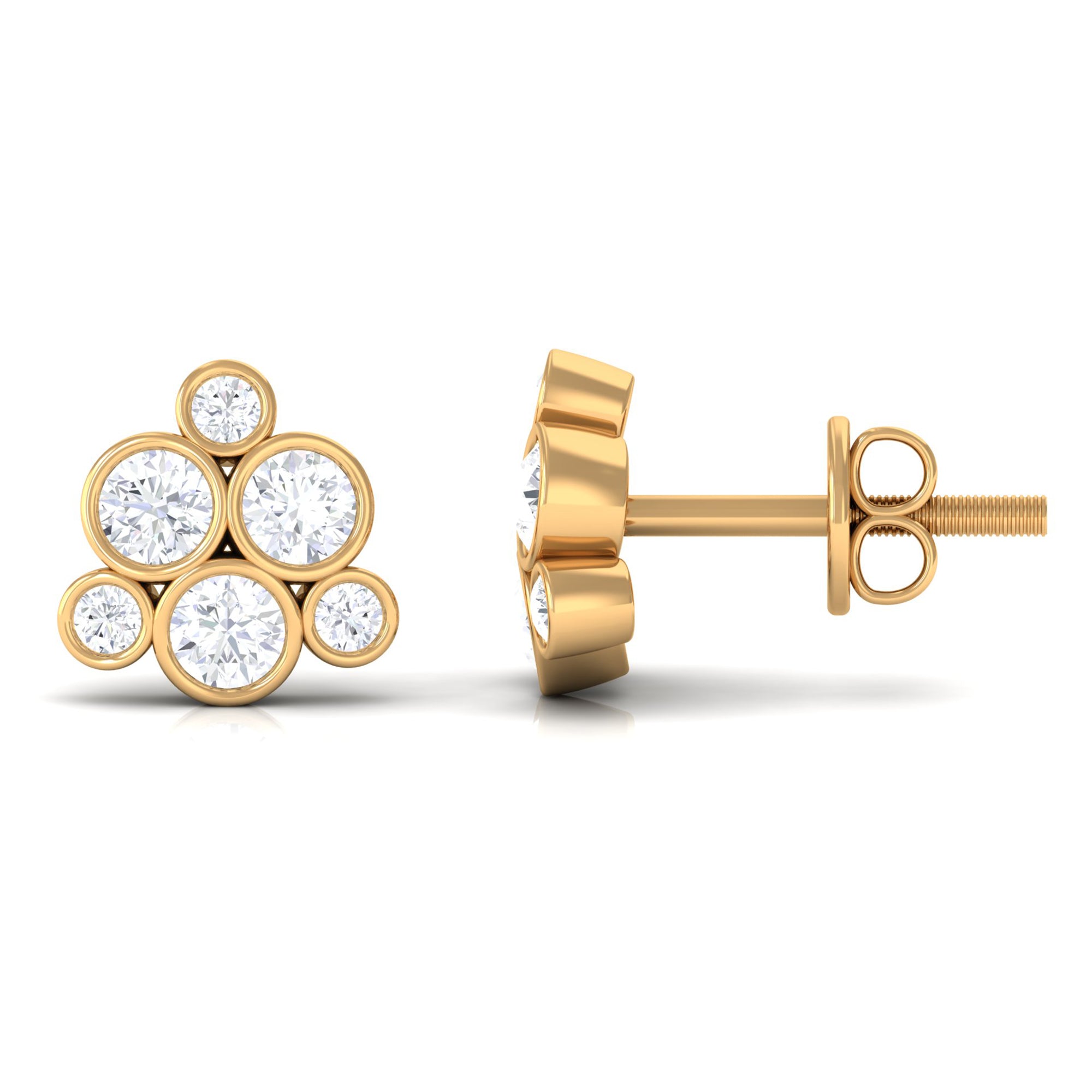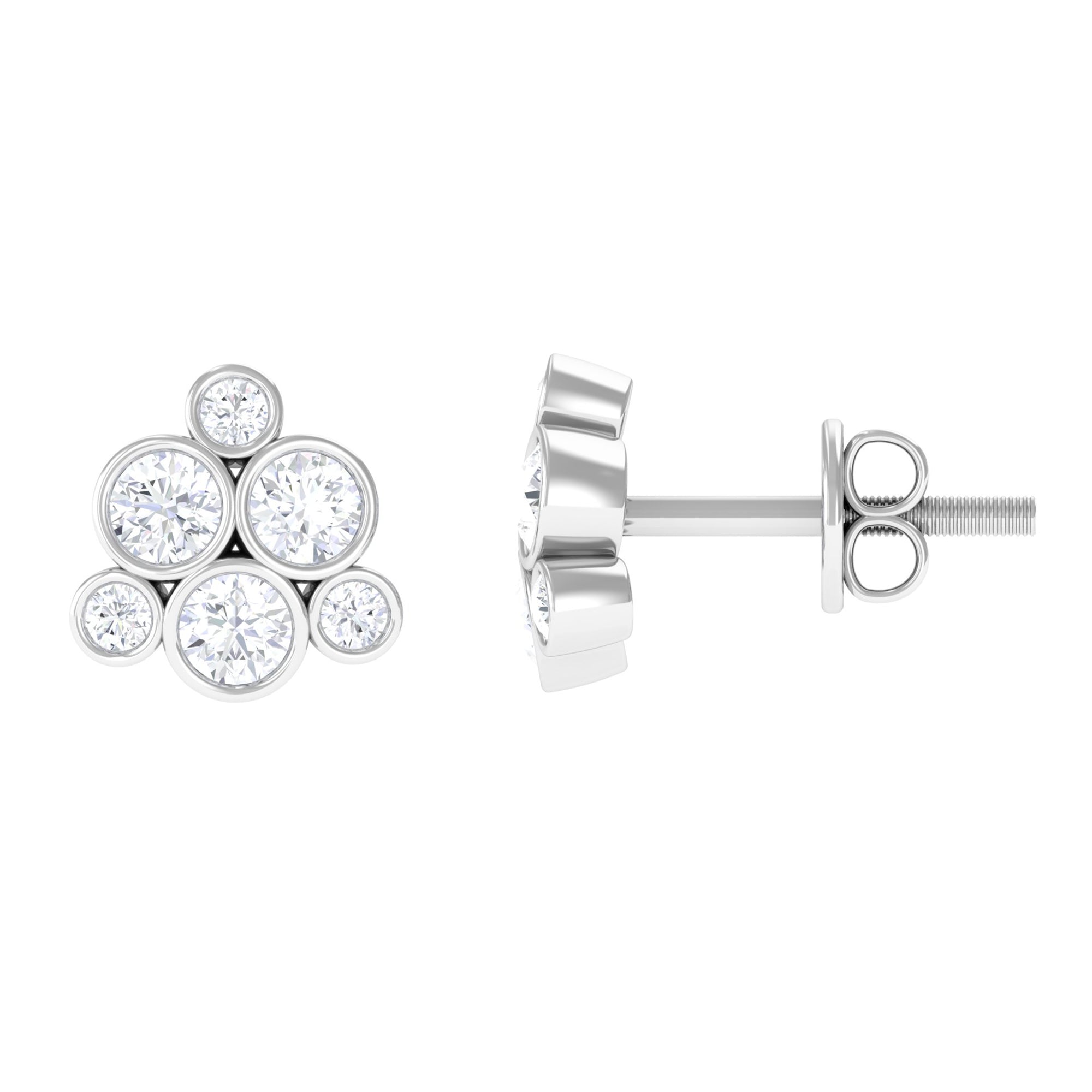 Certified Zircon Cluster Stud Earrings in Bezel Setting