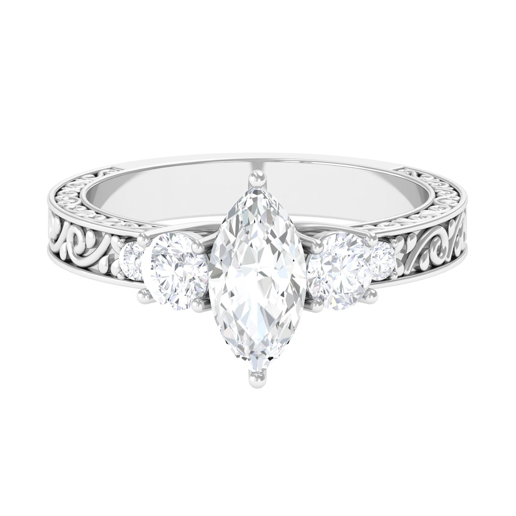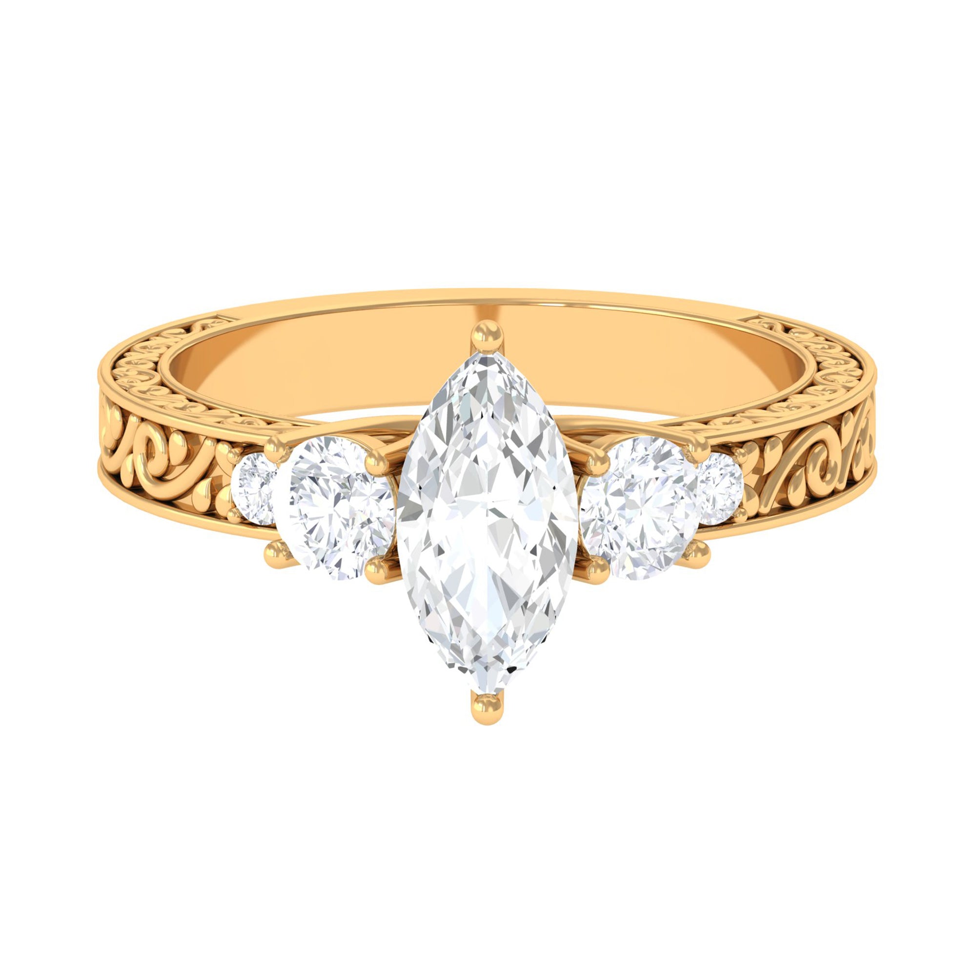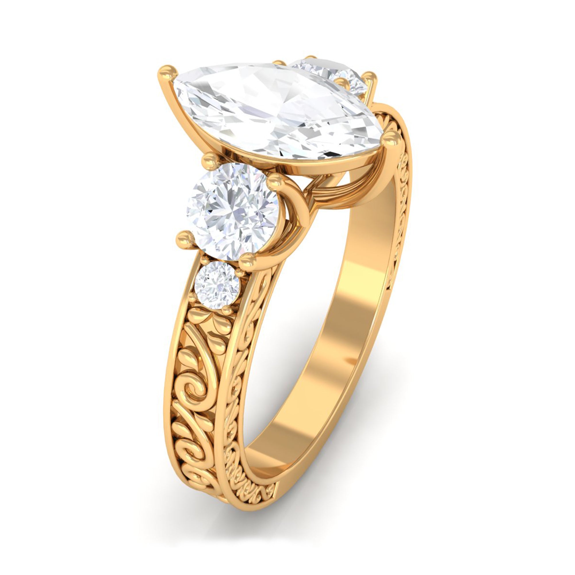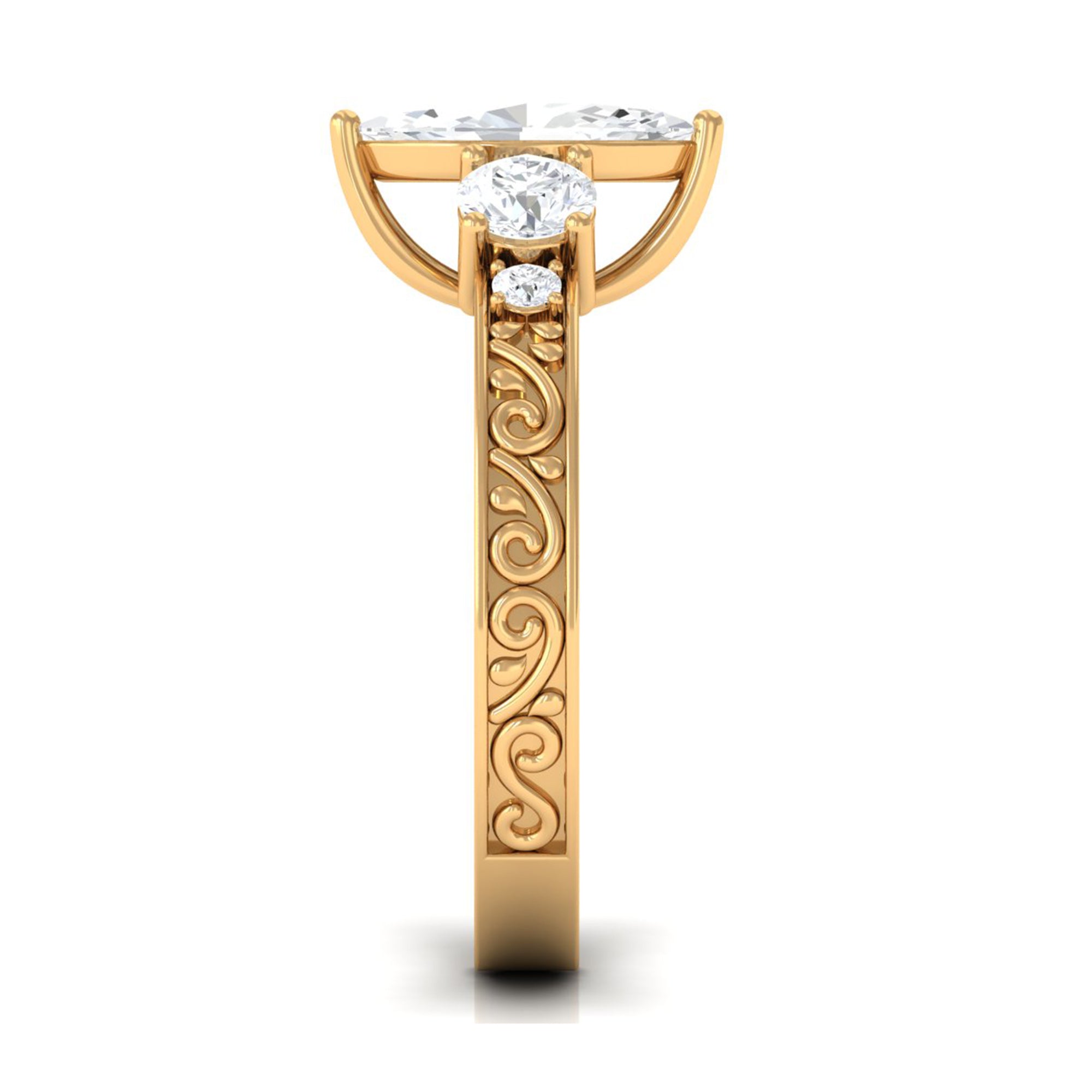 Add a pop of color with this Zircon Ring. The Marquise Cut Zircon in 2 Prong Setting with Round Zircon and engraved details is a perfect engagement jewelry.