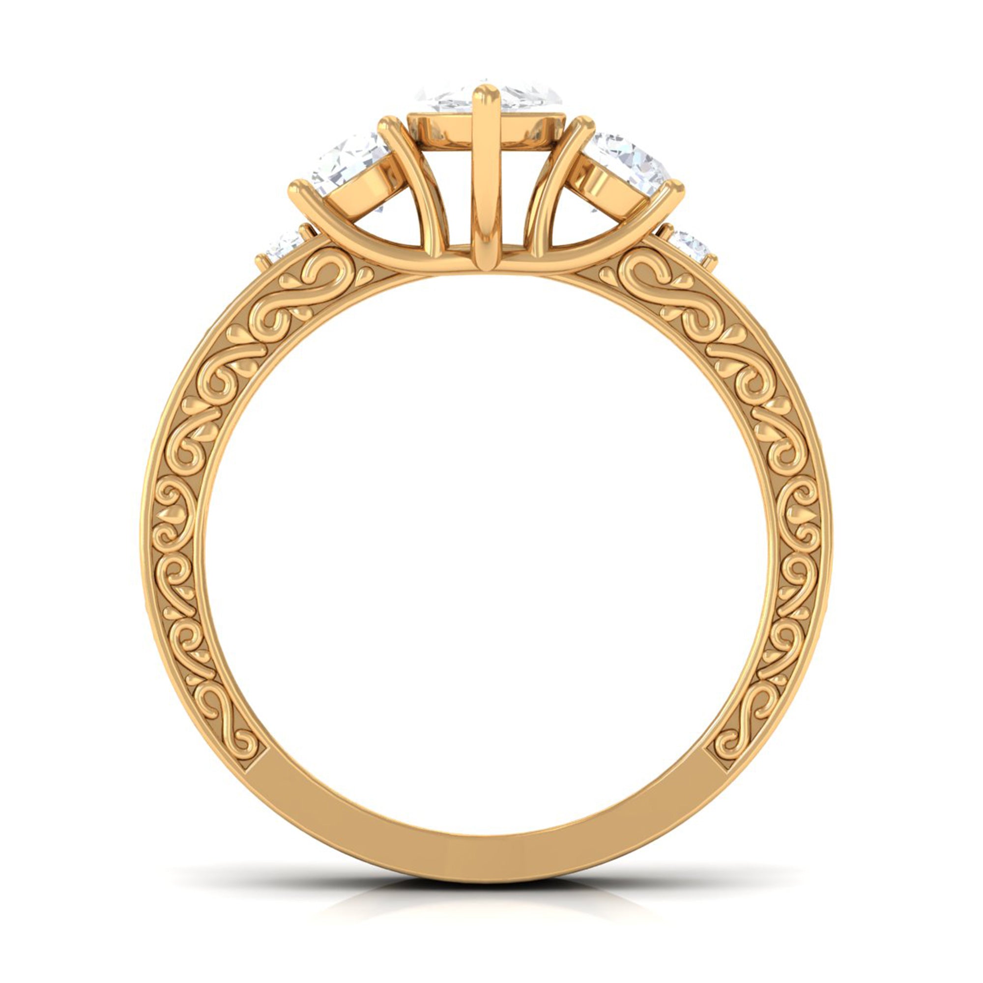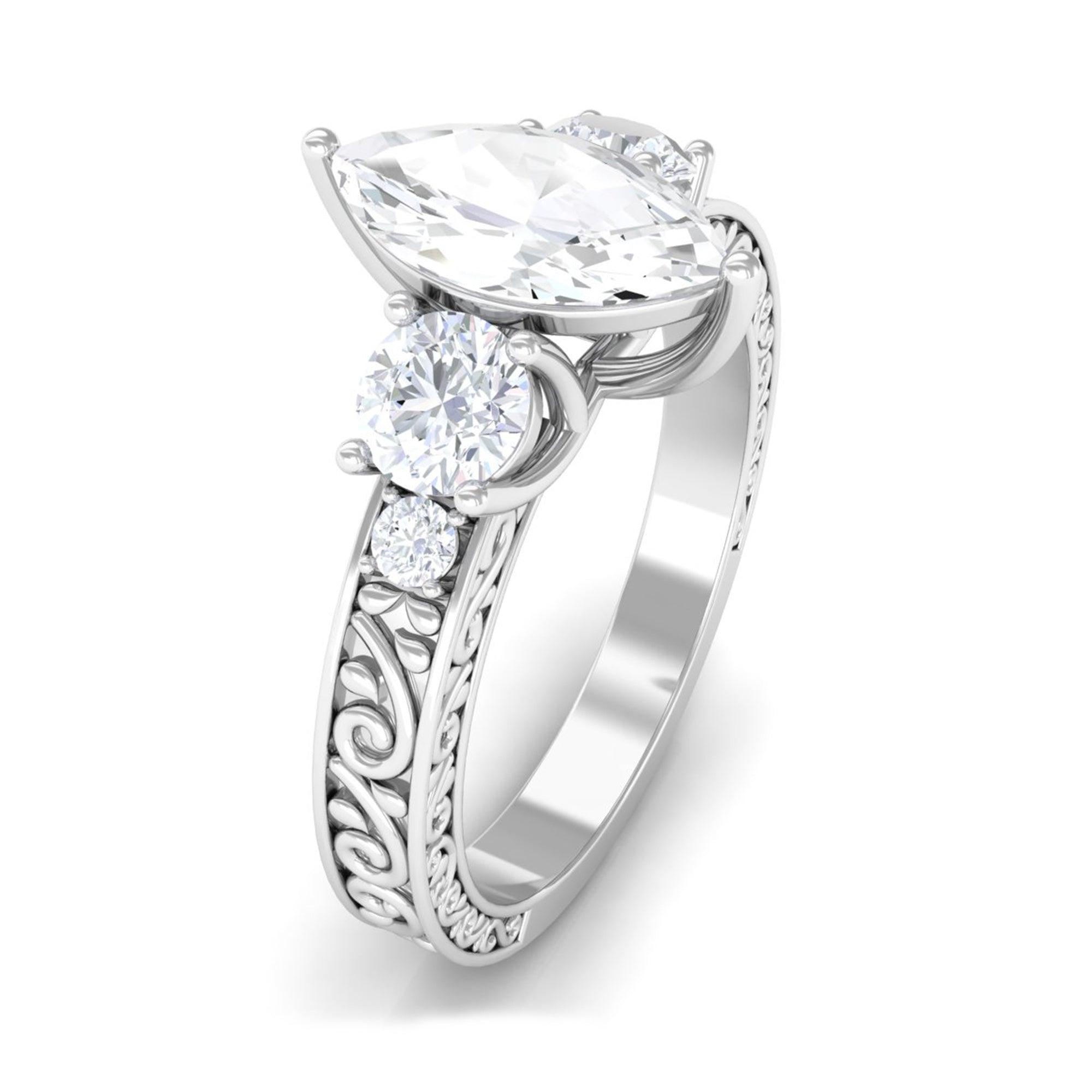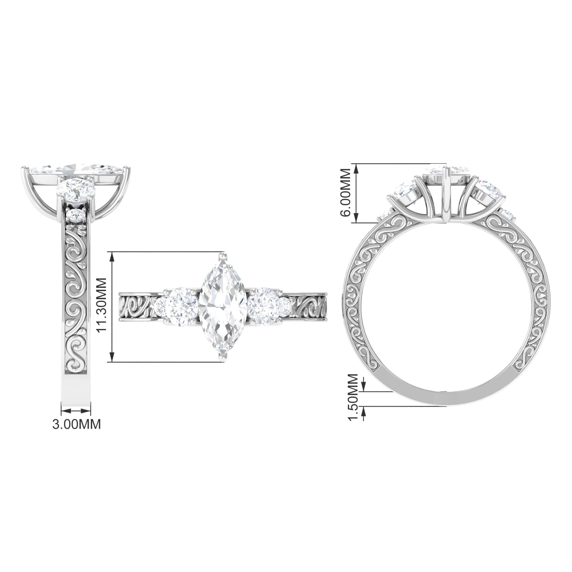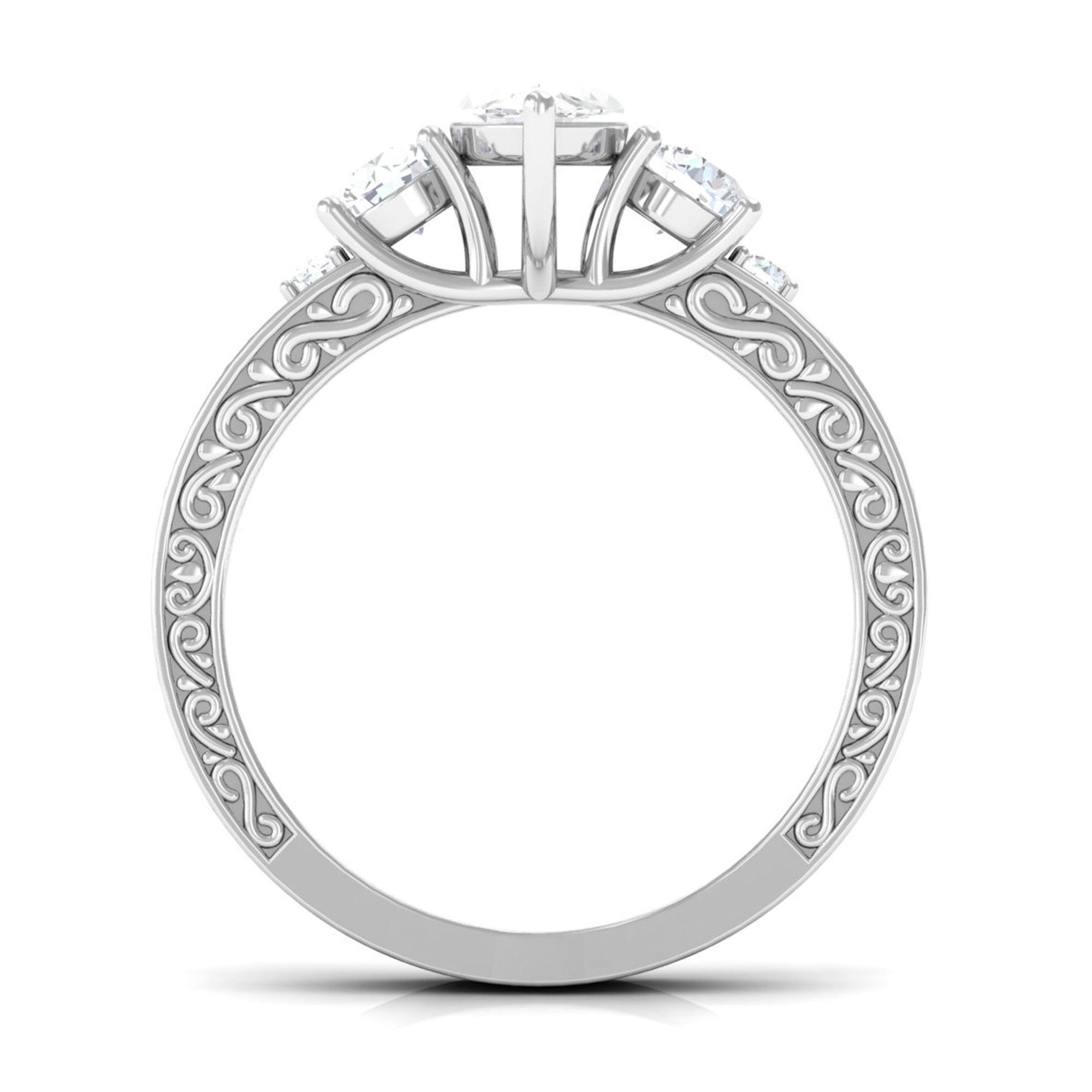 Add a pop of color with this Zircon Ring. The Marquise Cut Zircon in 2 Prong Setting with Round Zircon and engraved details is a perfect engagement jewelry.