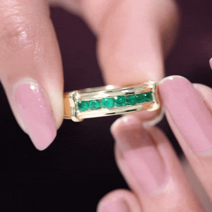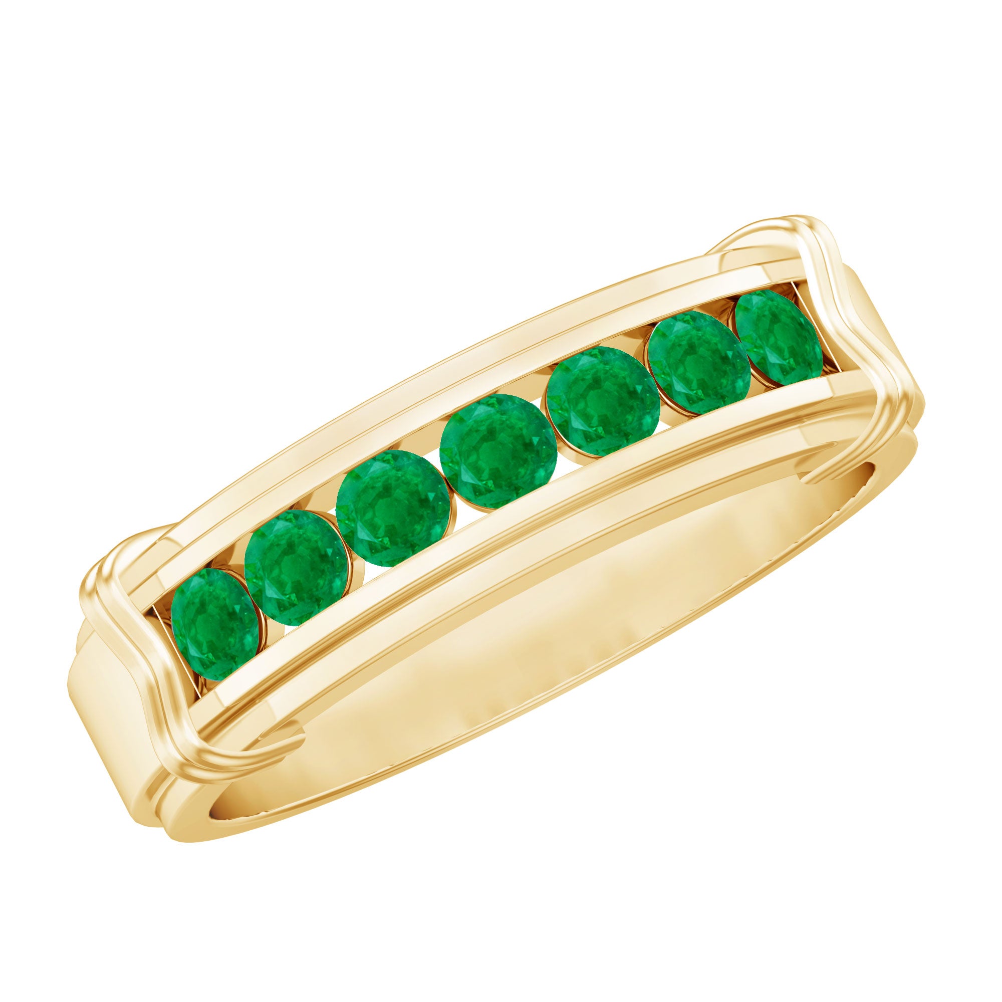 Channel Set Emerald Half Eternity Wedding Band Ring