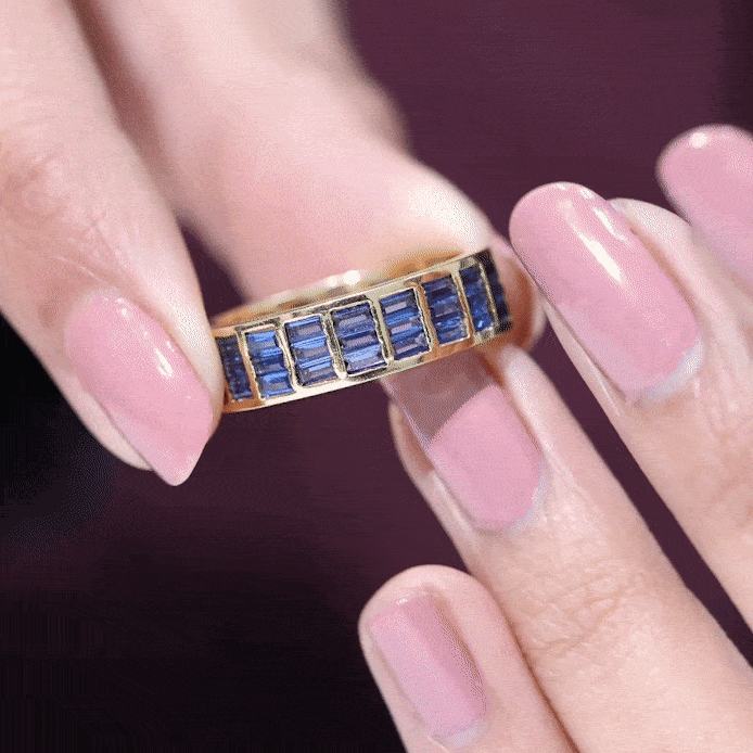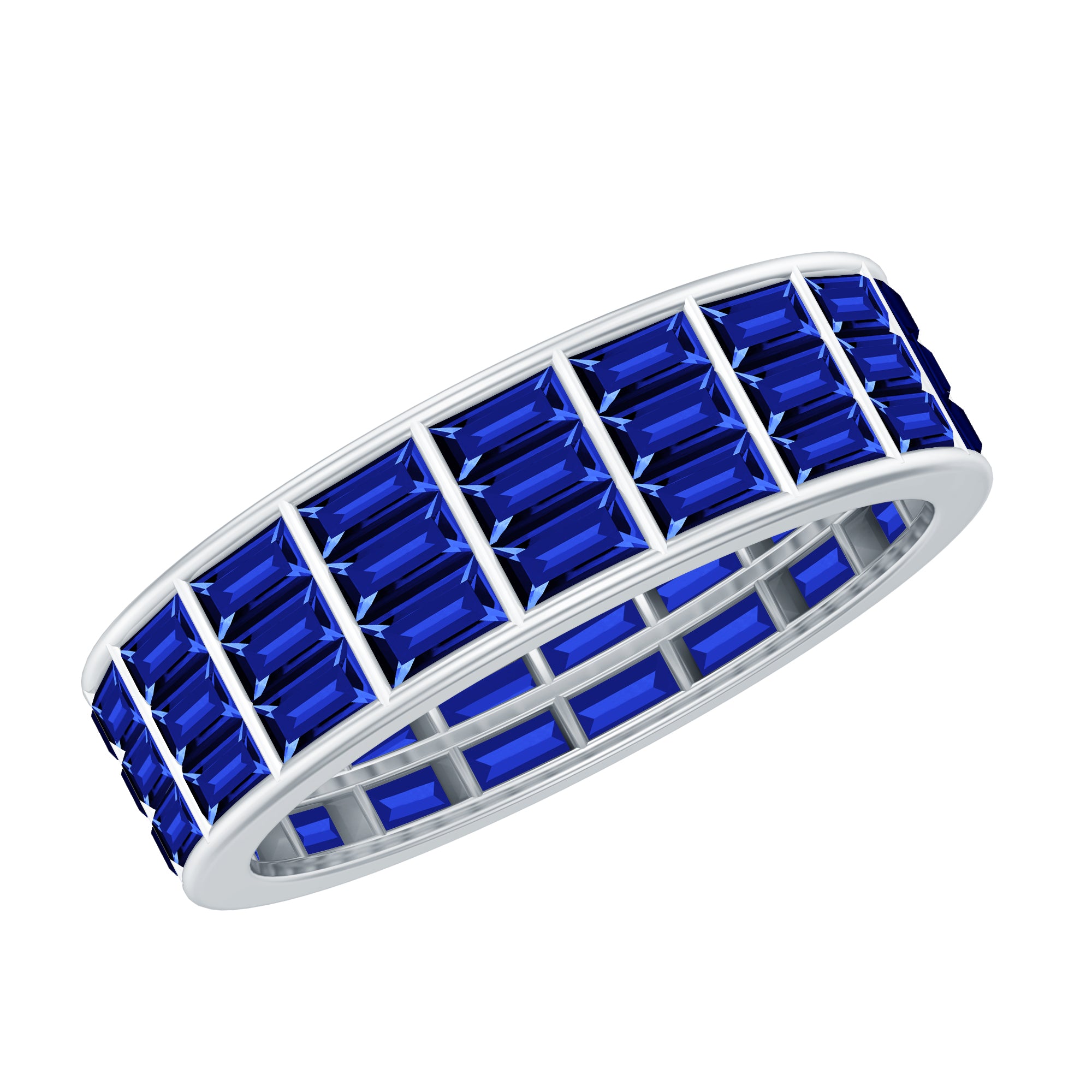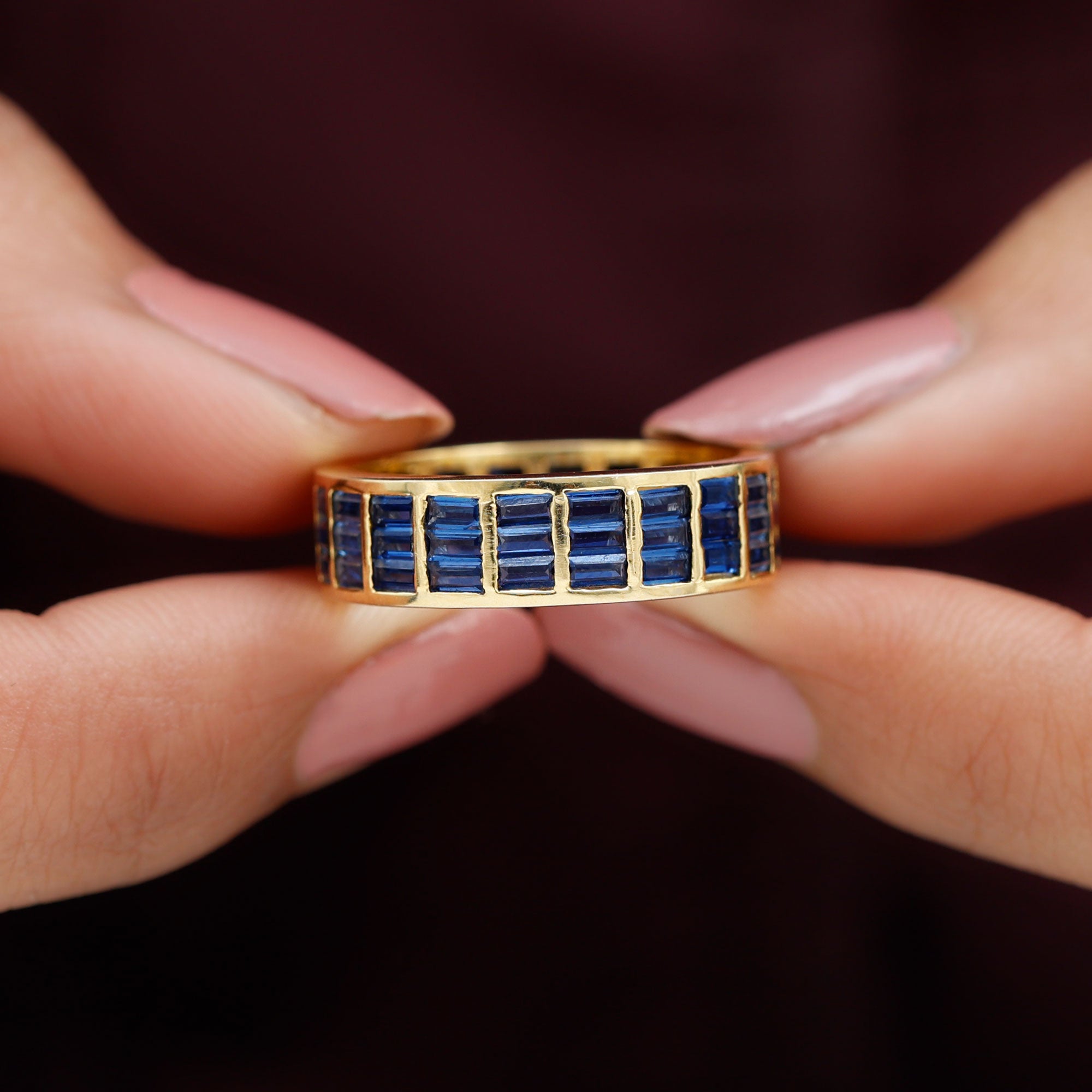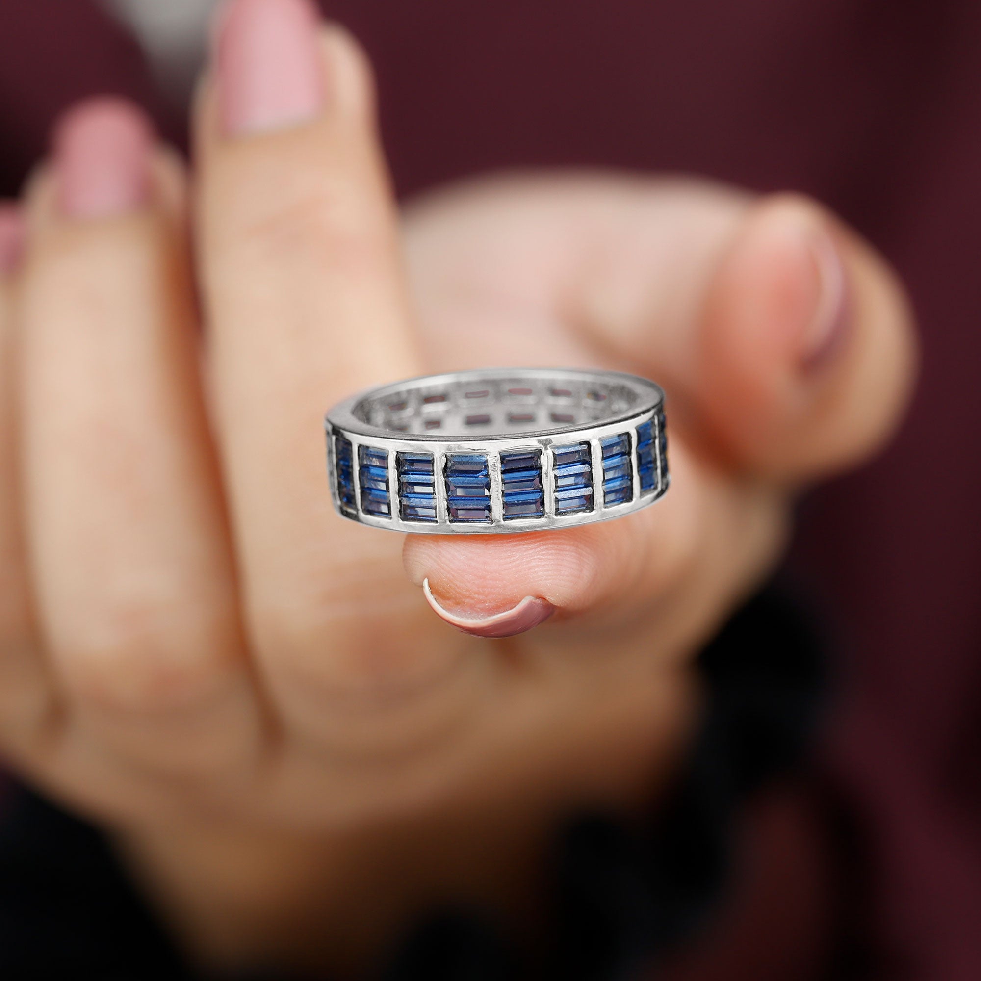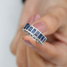 Channel Set Lab Grown Blue Sapphire Wide Eternity Band Ring