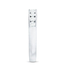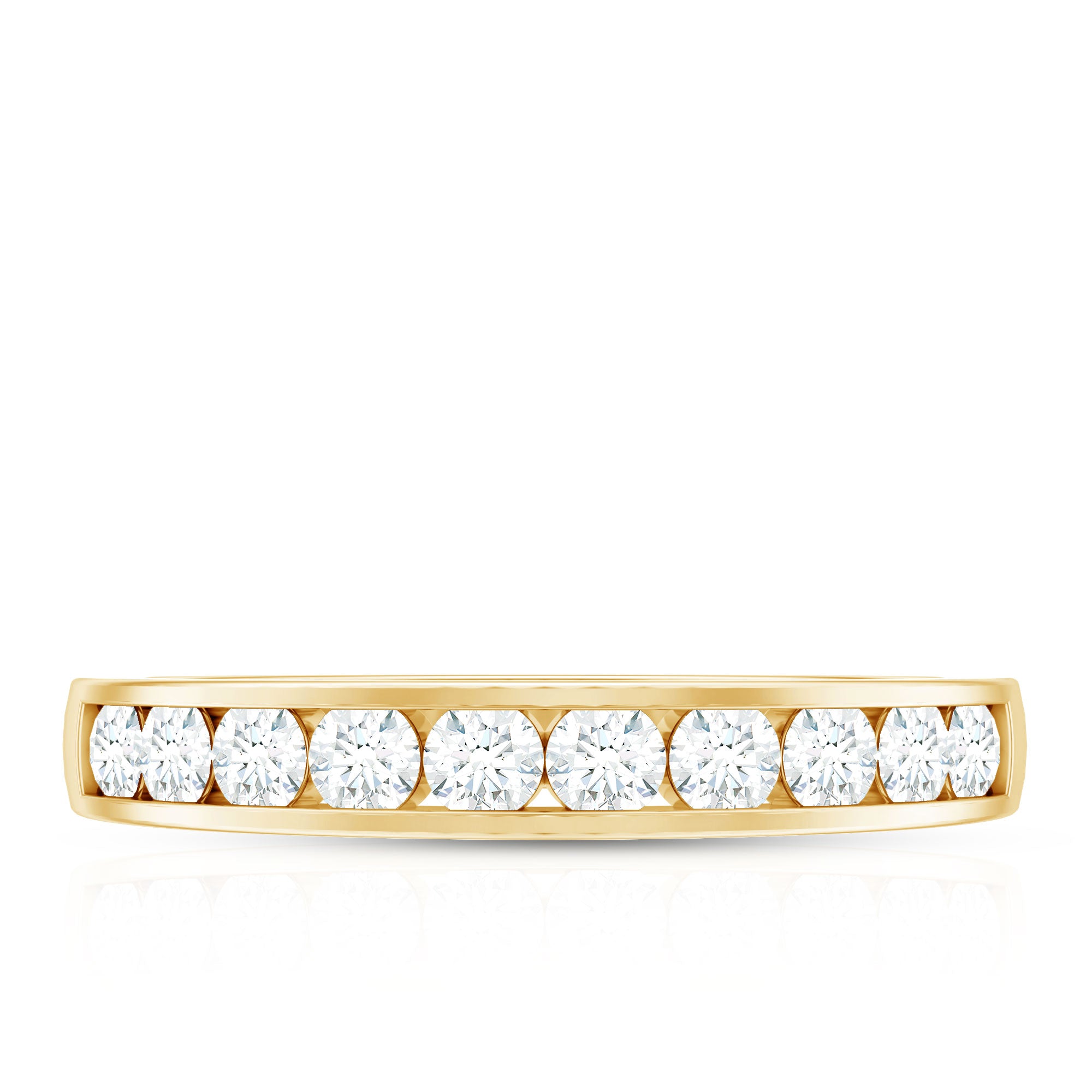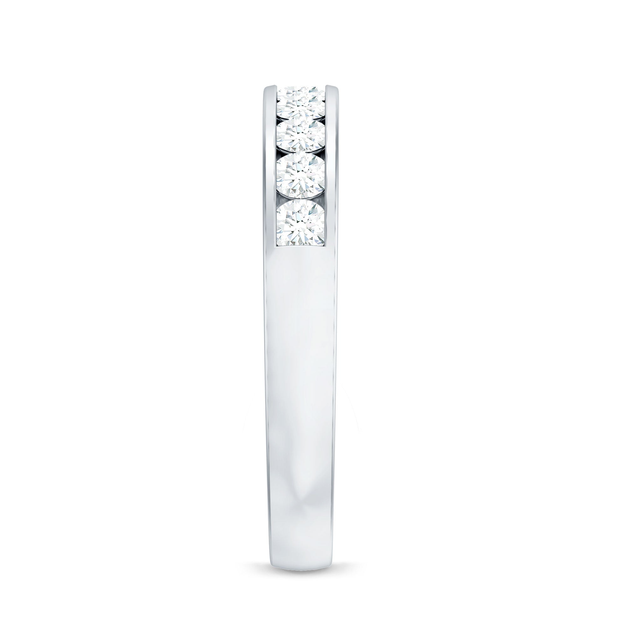 The timeless design of the Moissanite Wedding Band enhances your overall appearance, highlighting the continuous shimmer of round brilliant cut moissanites that are perfectly arranged and channel-set into the band for a sleek and stylish half eternity look. The result is a ring that is both striking and understated, perfect for any event. This Moissanite Eternity Ring symbolizes eternal love and beauty, making it a favored choice for weddings, anniversaries, or any special occasion. Rosec Jewels has meticulously crafted this stunning Channel Set Eternity Band from precious metal, offering a variety of color and purity choices. With D Color and VS1 Clarity grade, this Moissanite Stackable Band is not only compatible but also shines with brilliant sparkle. Plus, with a Ready to Gift option, this Half Eternity Ring comes in a Signature jewelry Box, ensuring safe and secure storage.