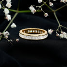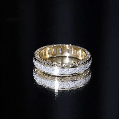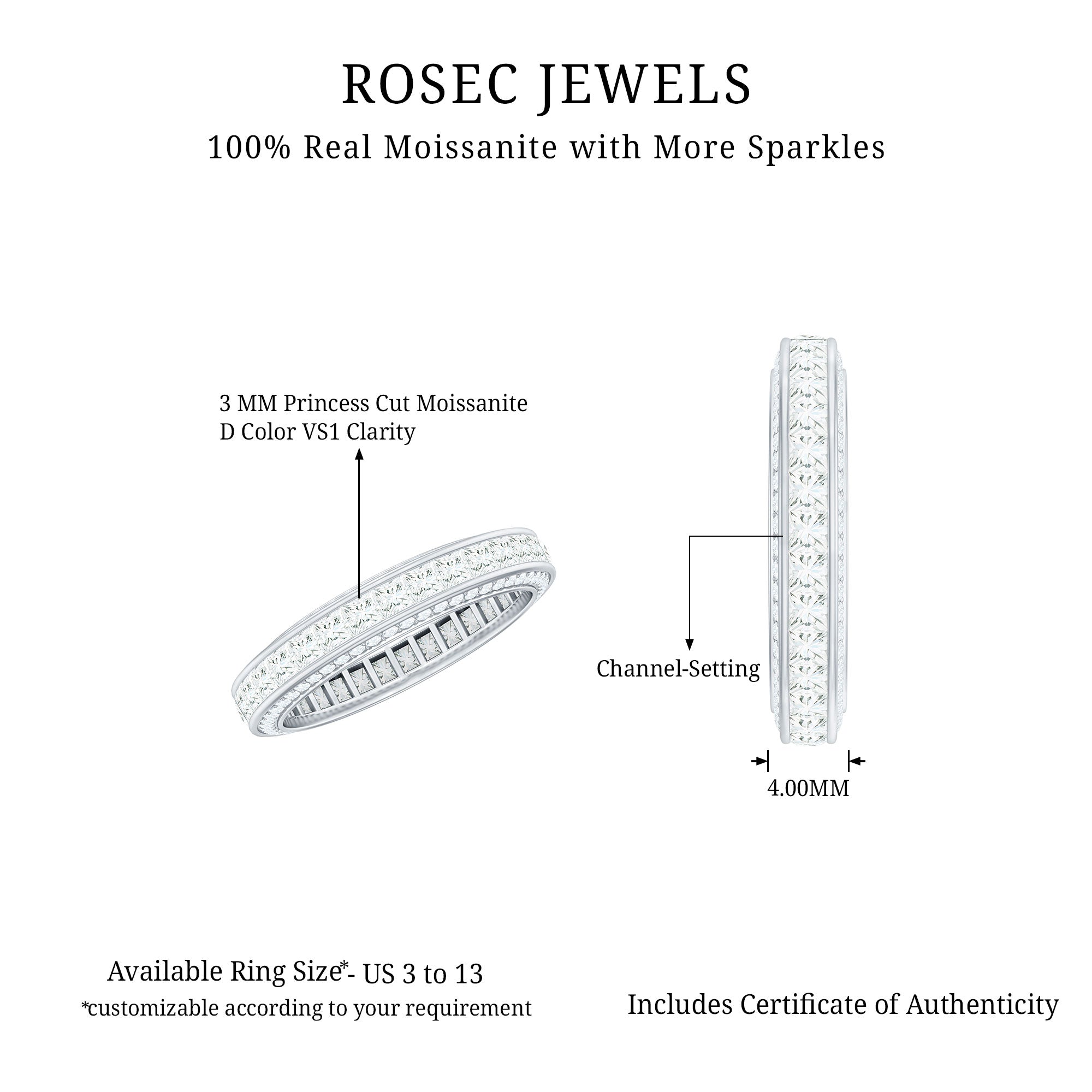 Mark the new beginning of your life with this sparkling Wedding Band Ring. This charming Eternity Band Ring is adorned with a Princess and round shape Moissanite in a Full Eternity design to create a magnificent appearance. This Wedding Eternity Band beholds the shine of D-VS1 Quality Moissanite which make the celebration brighter and her smile wider. This Classic Wedding Band will be delivered in the Classic Jewelry box for storage and the certificate of gemstone authentication.