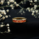 Bring a warm touch of color and elegance to your style with this beautiful Half Eternity Band Ring. Designed for women who appreciate timeless beauty, the band features a row of princess cut lab created orange sapphires that shine with a vibrant glow. Each stone is set securely in channel setting, creating a clean look while keeping the gemstones protected for everyday wear. The bright orange sapphires add a unique and cheerful charm, making the Princess Cut Wedding Band a perfect choice for those who love jewelry with personality. Its half-eternity style ensures comfort, as the smooth metal on the palm side allows the Channel Eternity Band to sit gently on the finger while still offering plenty of sparkle on top. This elegant Orange Sapphire Band can be worn alone as a statement piece or paired with other rings for a stylish stacked look. It works beautifully as a wedding band, anniversary ring, promise ring, or simply a special gift to celebrate meaningful moments. Crafted with care and made to last, the Sapphire Wedding Band offers durability along with luxurious shine.