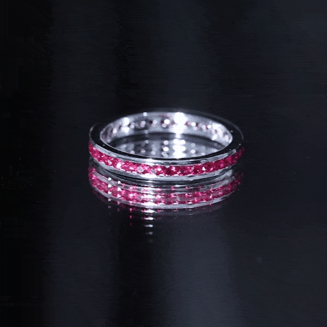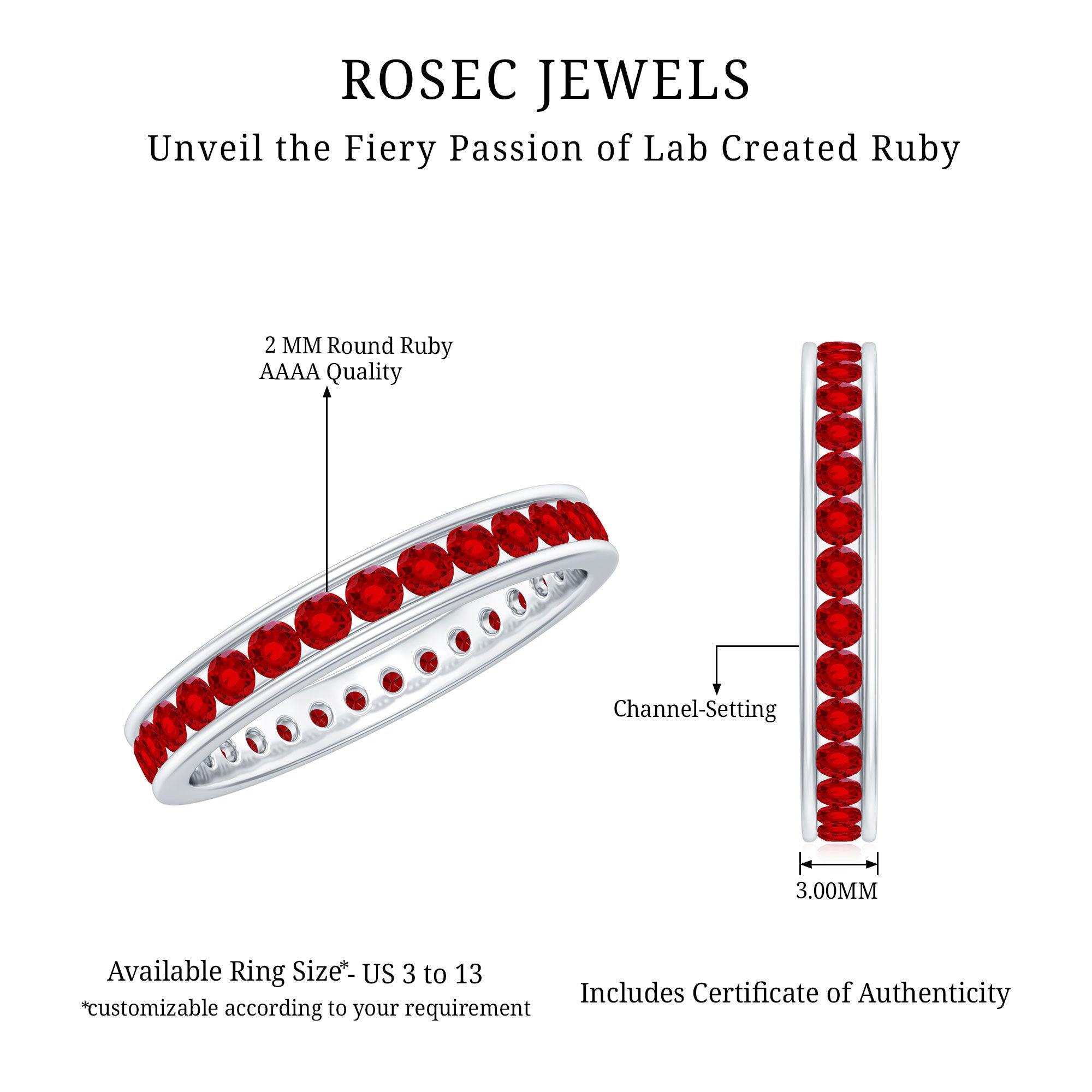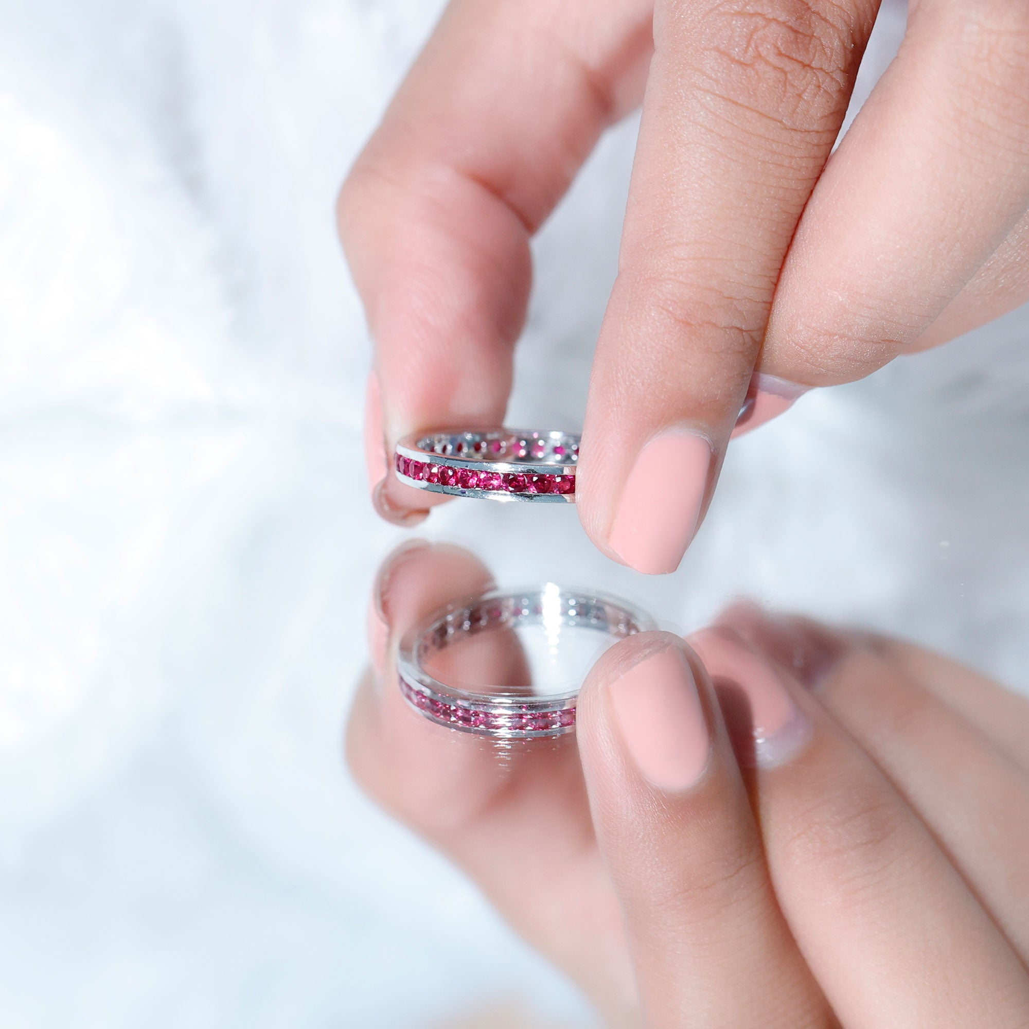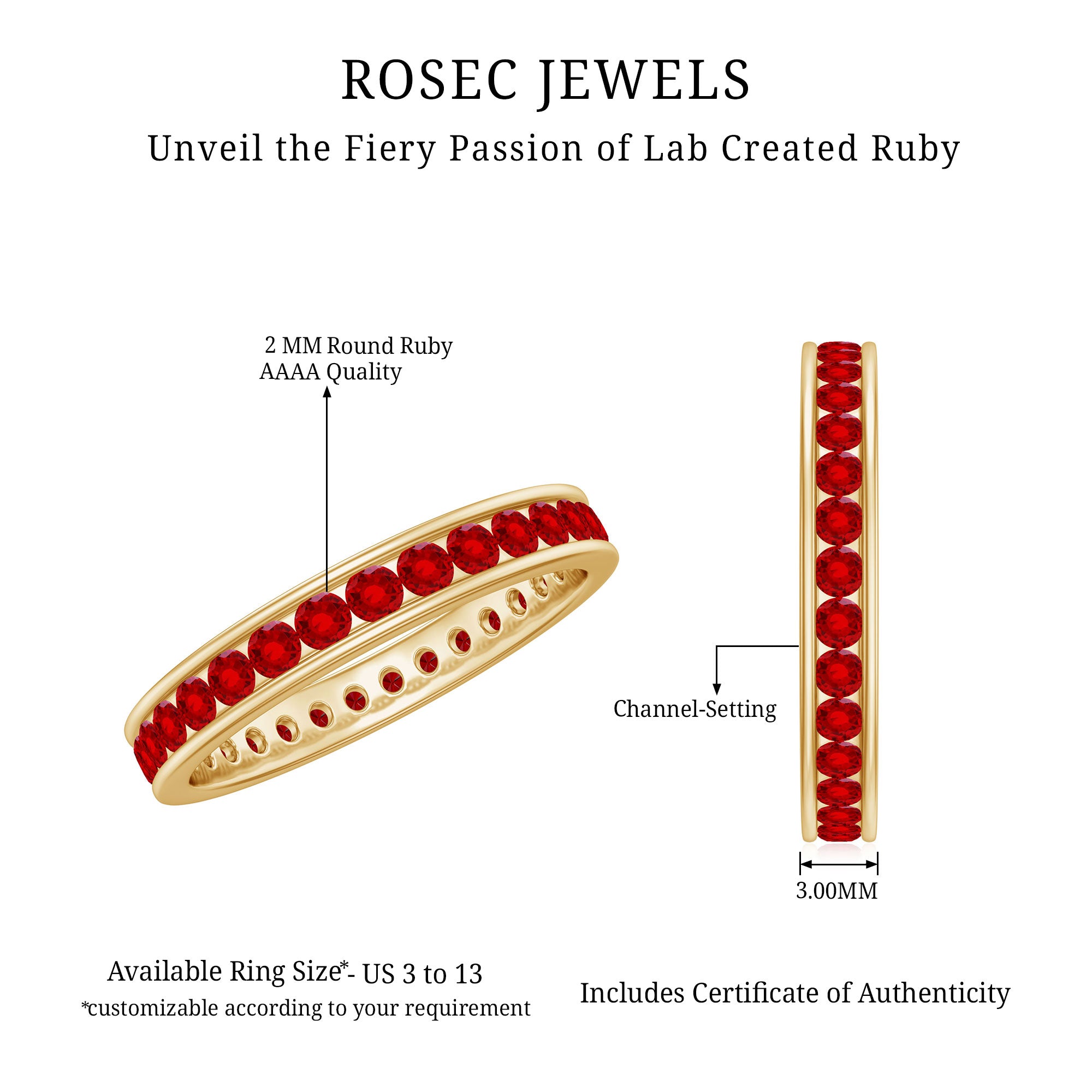 Show your love with this stunning Full Eternity Band Ring, featuring Round Cut Lab Created Ruby set in a Channel Setting. This beautiful ring is crafted in Solid Gold for a charming appeal, making it the perfect gift for your beloved.