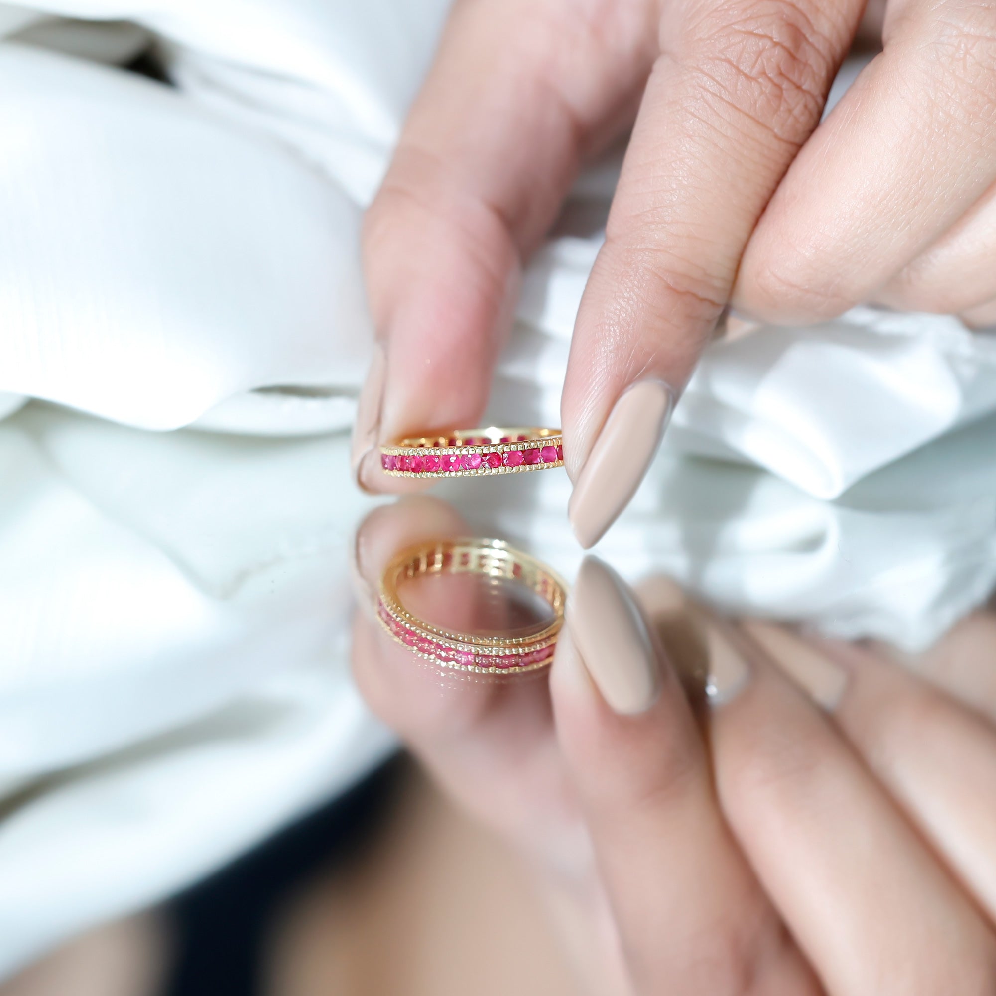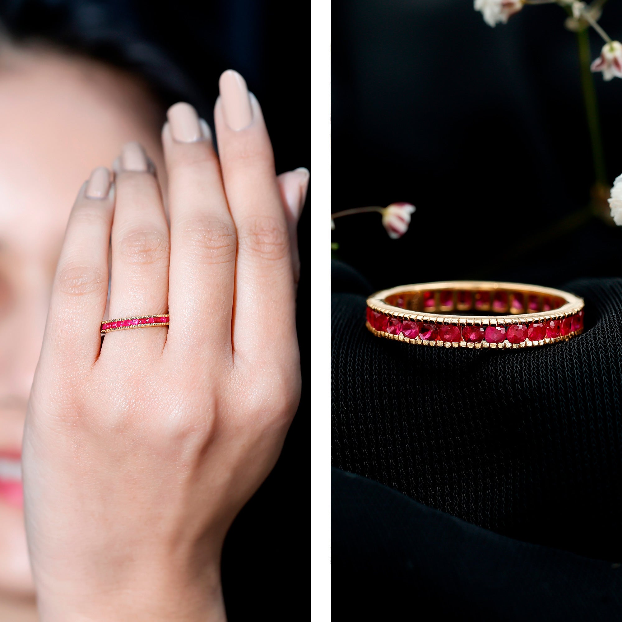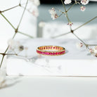 Channel Set Ruby Eternity Band Ring with Milgrain Detailing