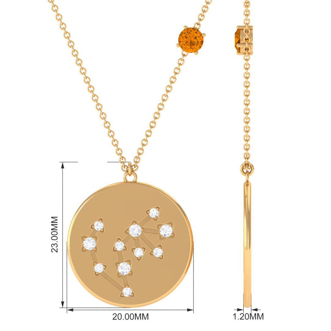 Citrine and Moissanite Scorpio Constellation Disc Pendant