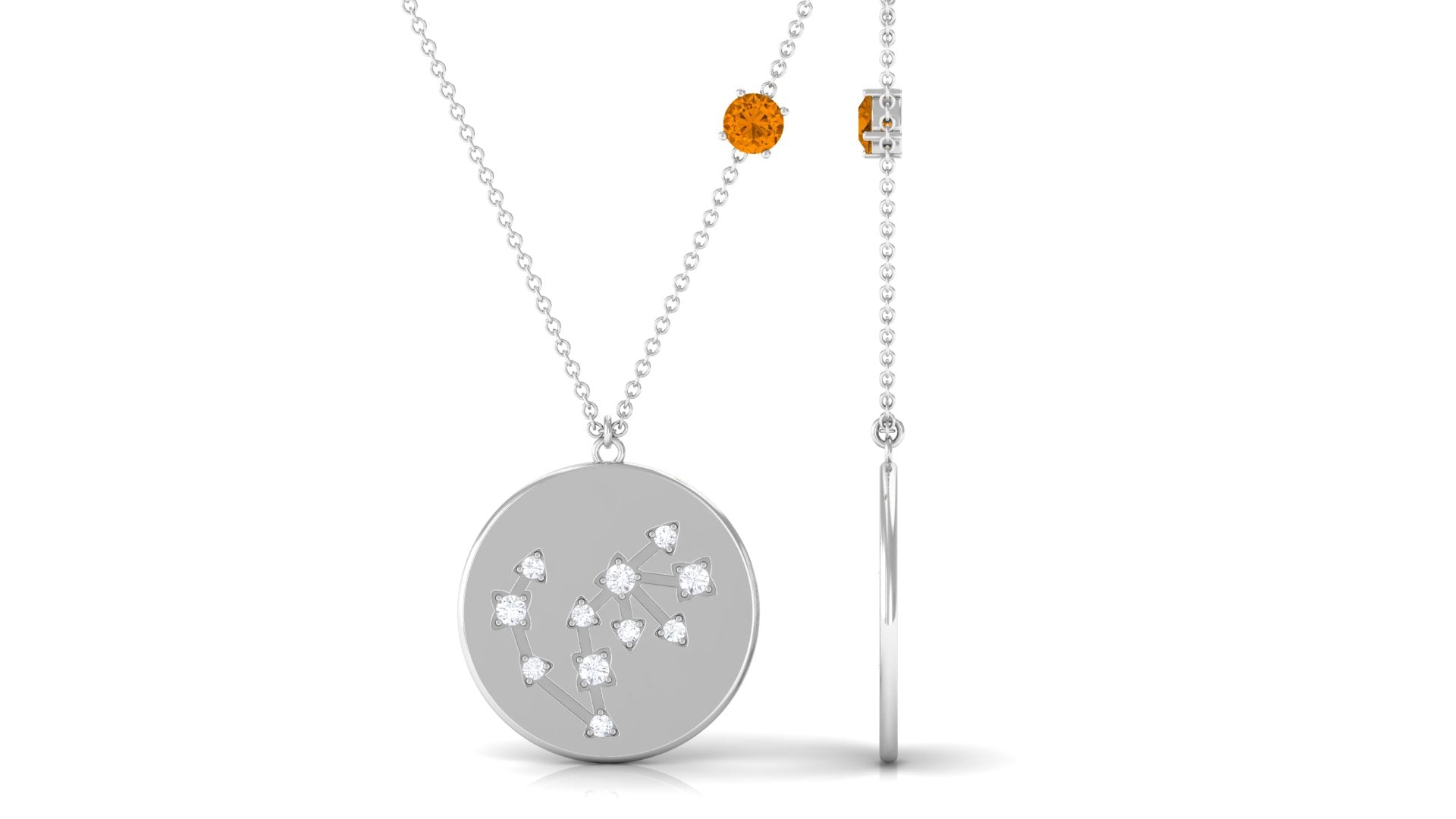 This Zodiac Necklace is embellished with Round Cut Citrine on the chain. The disc is adorned with Round Shape Moissanite placed in the pattern of the Scorpio Zodiac. This November Birthstone Pendant is a perfect for your special day look with the reflection of your personality.