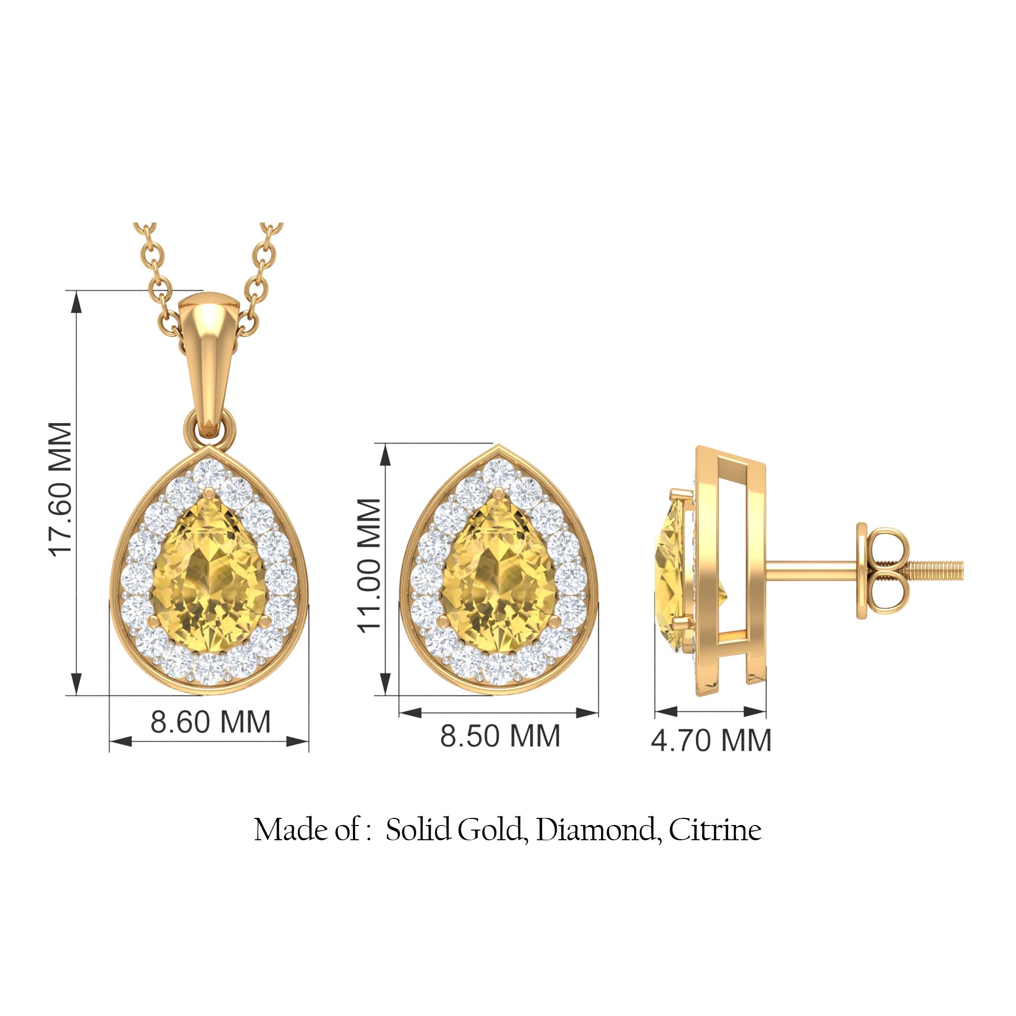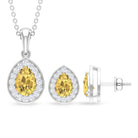 Citrine Teardrop jewelry Set with Moissanite Halo