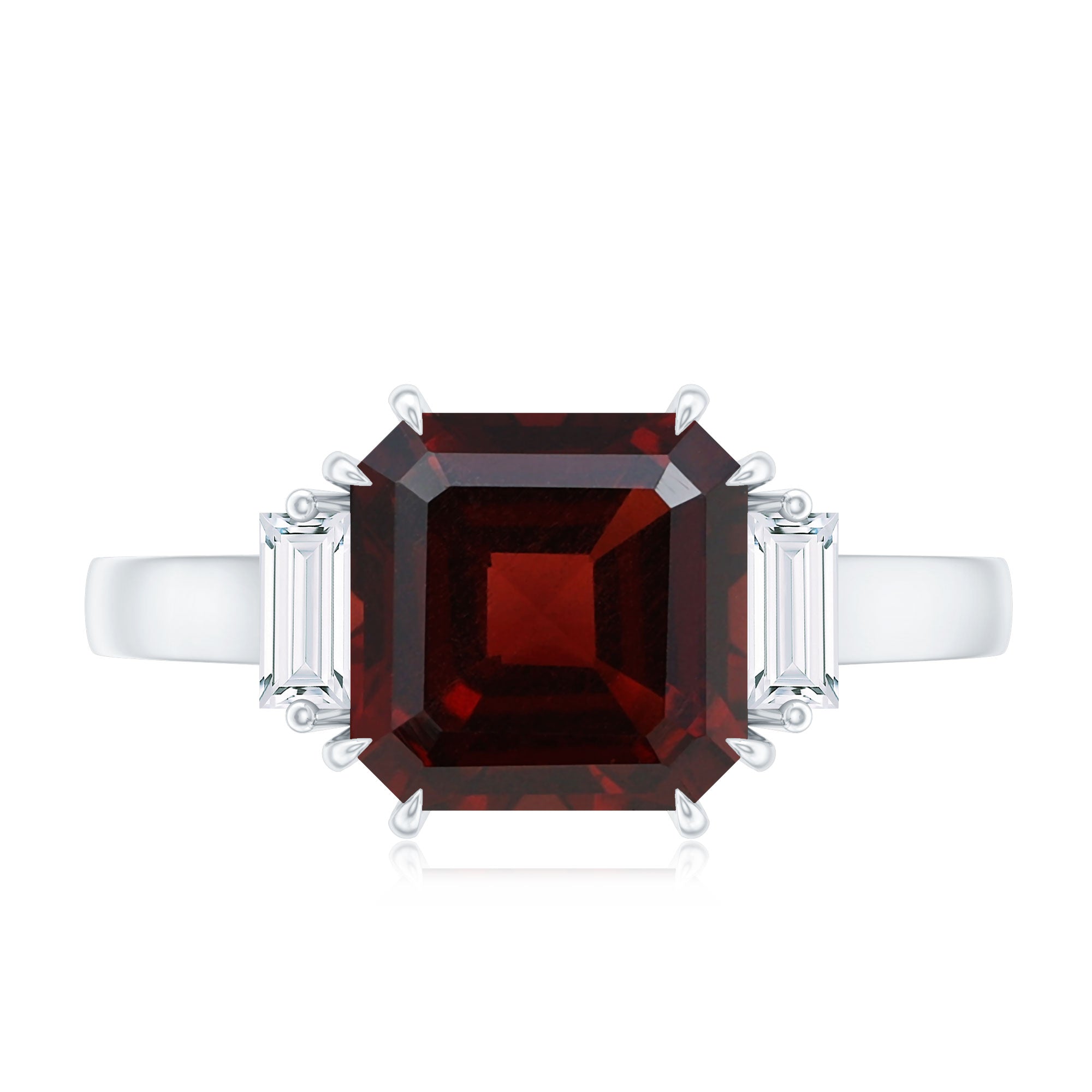 Classic 8mm Garnet Asscher Cut Engagement Ring with Certified Diamond