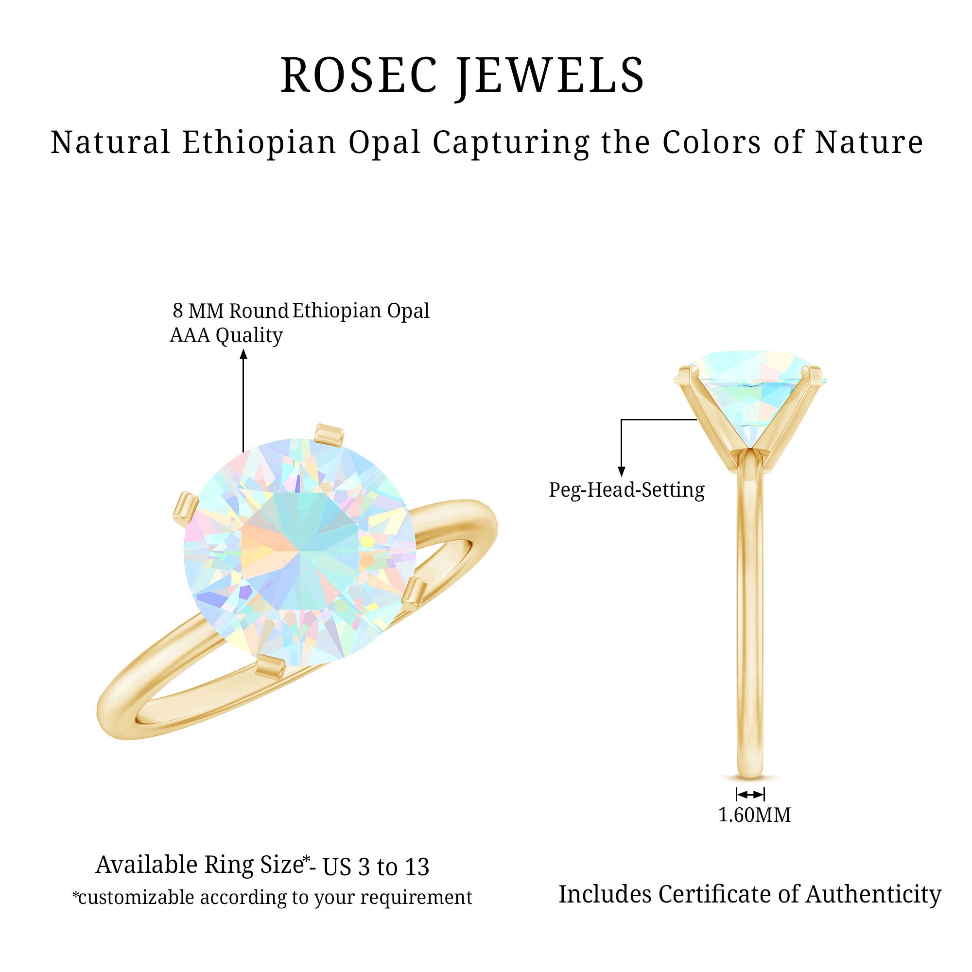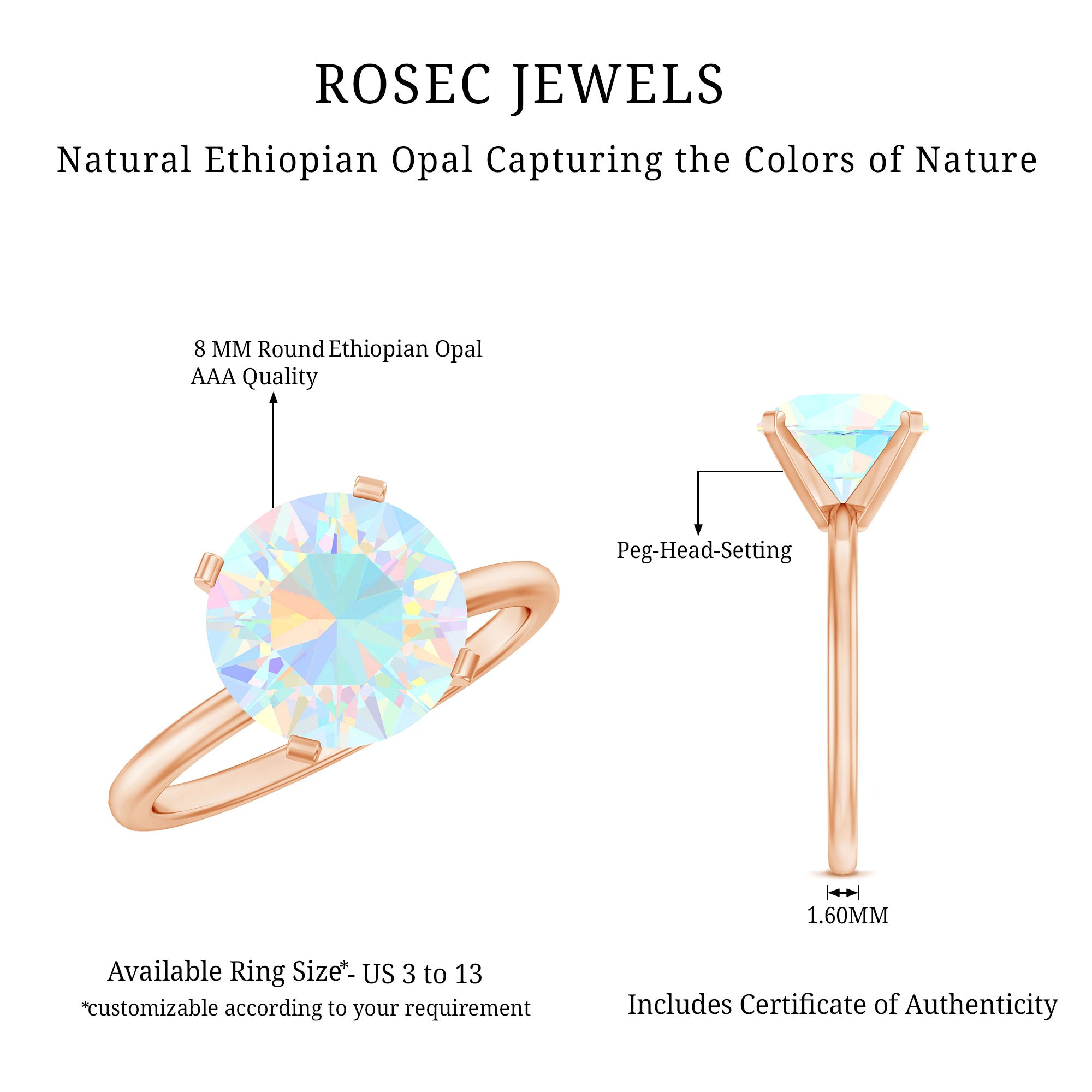 Classic 8mm Solitaire Ethiopian Opal October Birthstone Engagement Ring