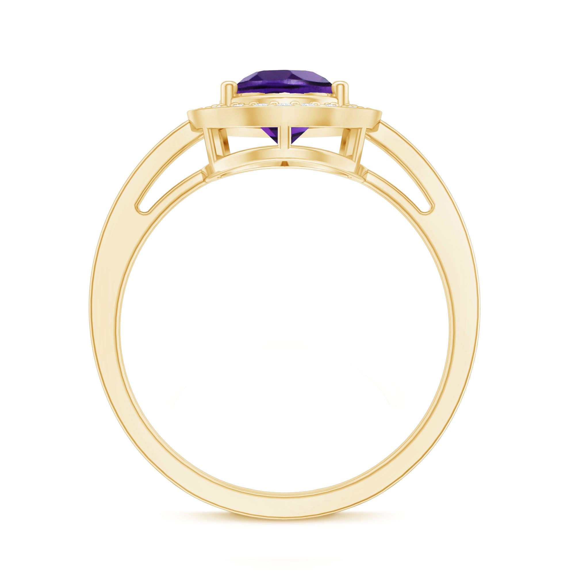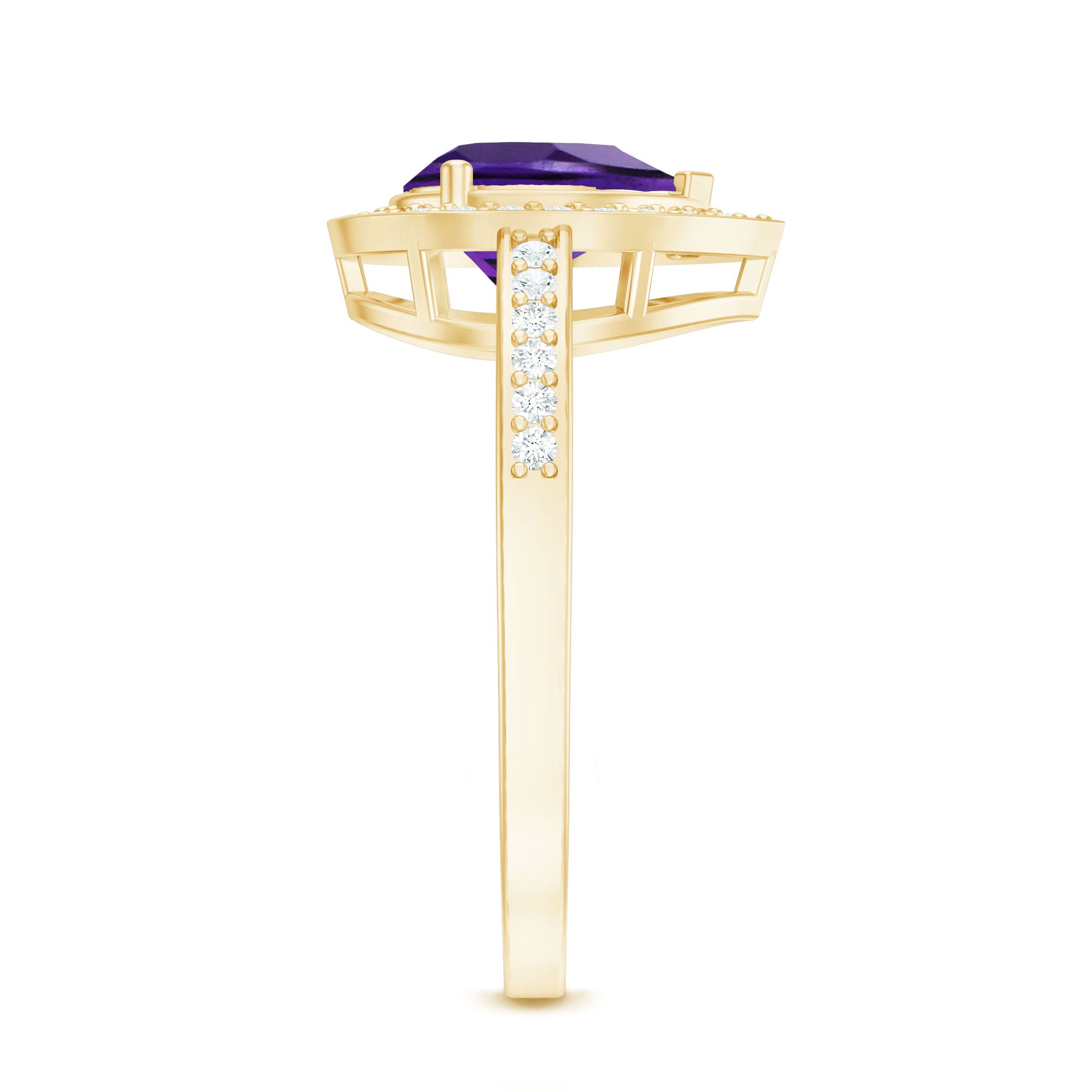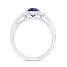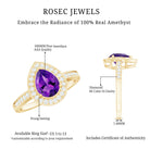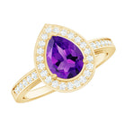 Get this alluring Amethyst Engagement Ring adorned with Pear Cut Amethyst in Prong Setting and more dainty Round Shape Diamond studded as Halo and on the shank. The Amethyst Ring will make her look elegant when paired with special attires. Declare your feelings for your partner by getting this Halo Ring and she will find reasons to wear it again and again.