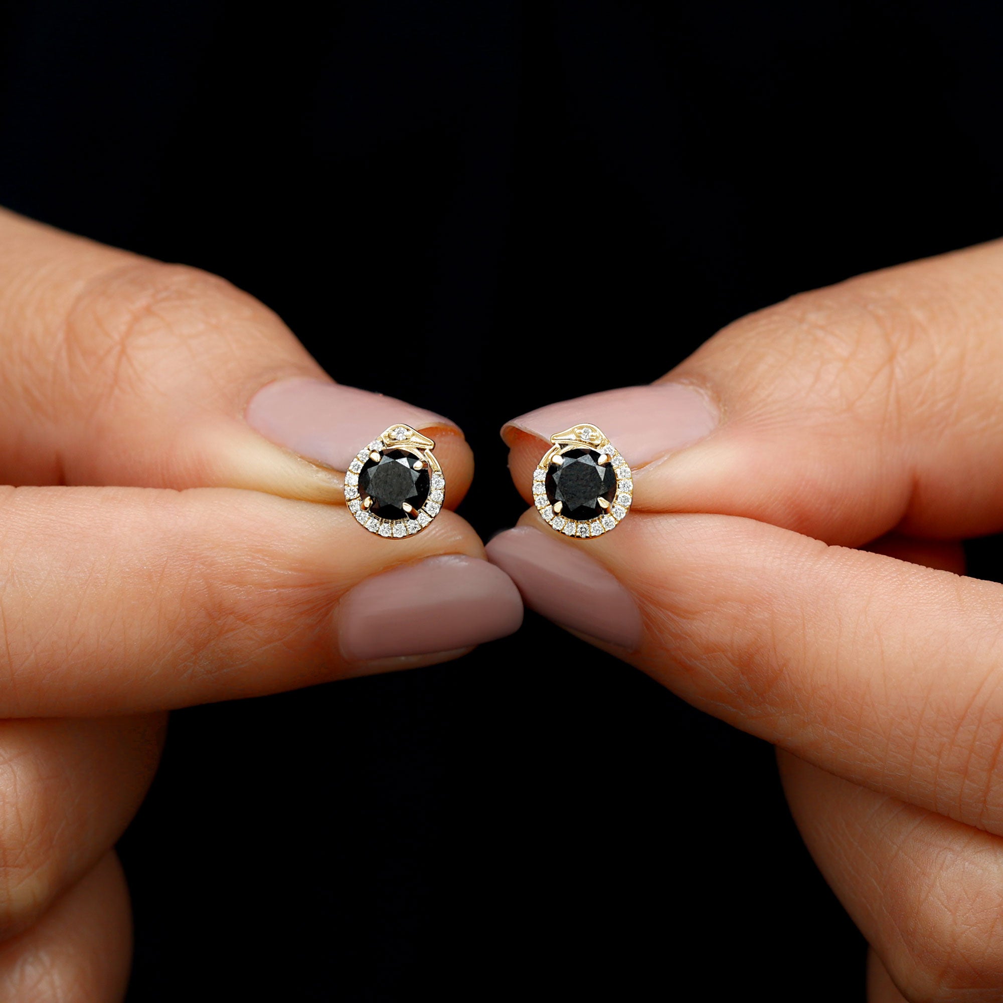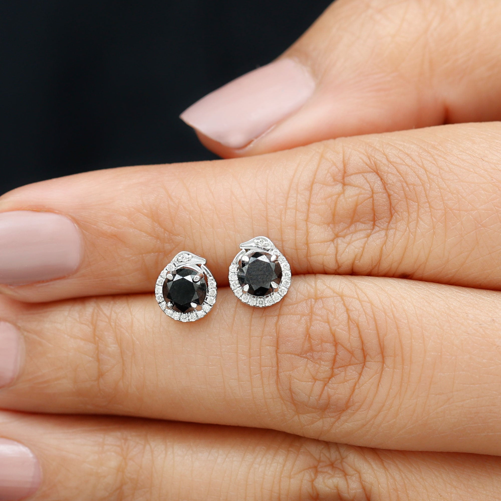 Elevate your style with our Snake Stud Earrings, where a captivating Round Black Diamond takes center stage set in claw setting, surrounded by glistening white diamonds along the snake tail. These black diamond earrings are a unique and enchanting choice, combining the allure of black and white diamonds with a striking snake motif, making them a conversation-worthy accessory for any occasion.