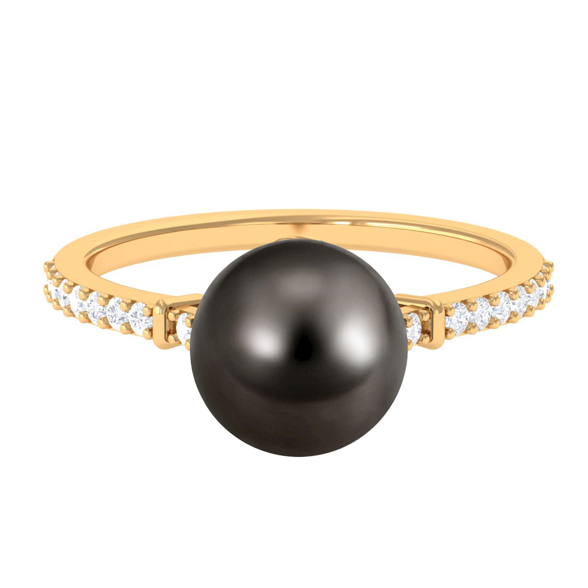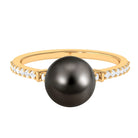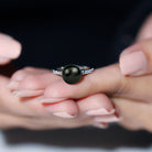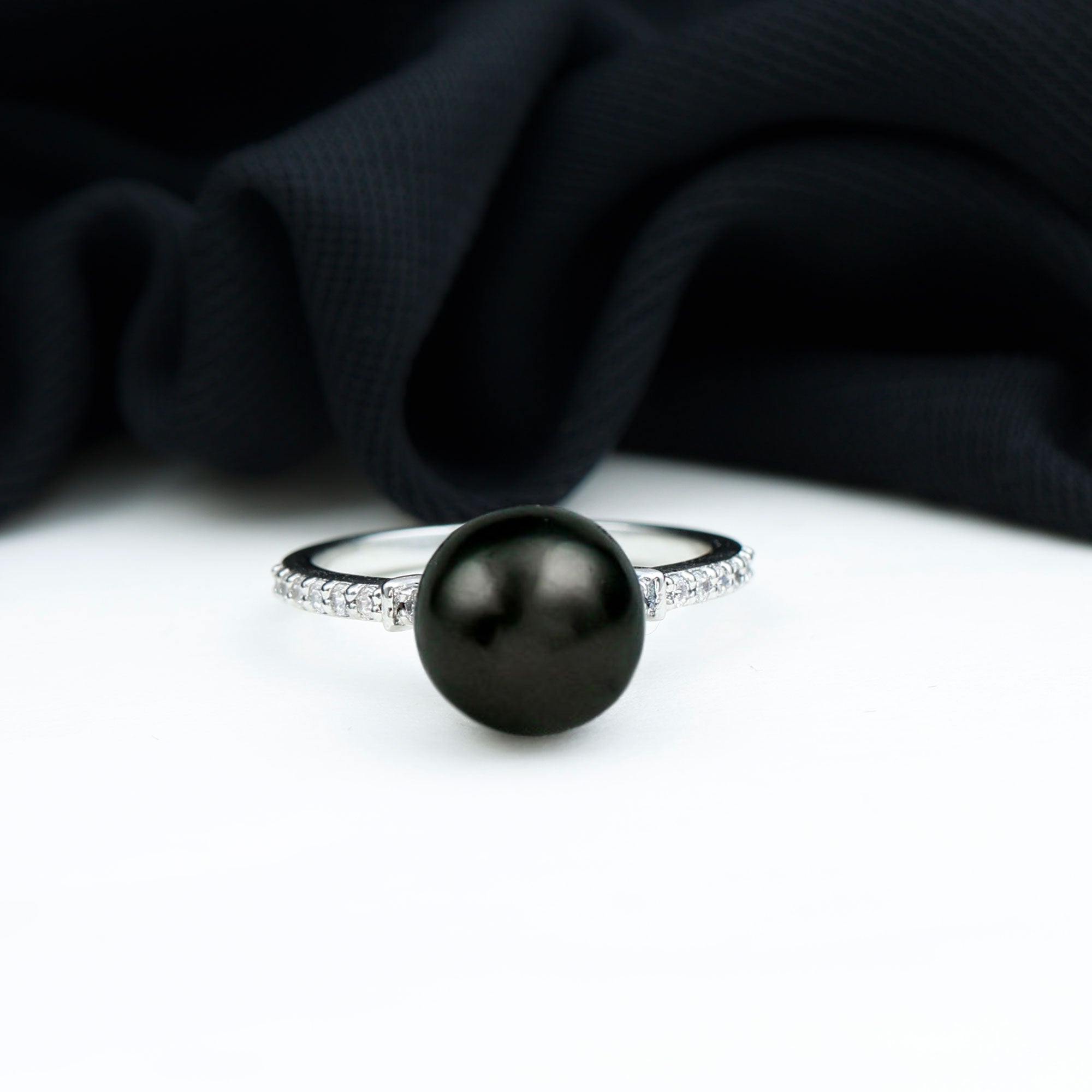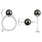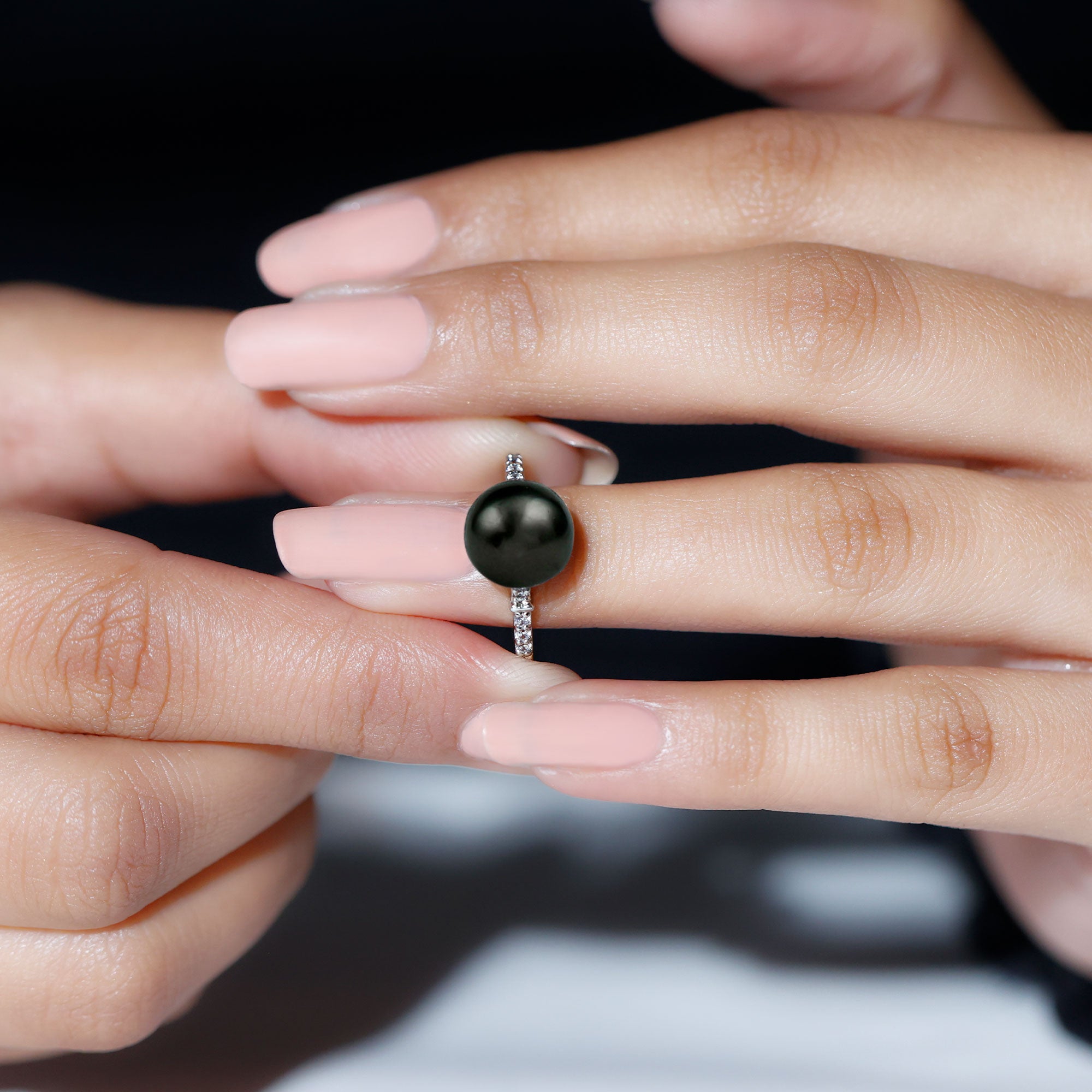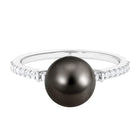 - Showcasing a 9mm Round Black Tahitian Pearl in a Solitaire Bead Setting, accompanied by round Diamond Side Stones.