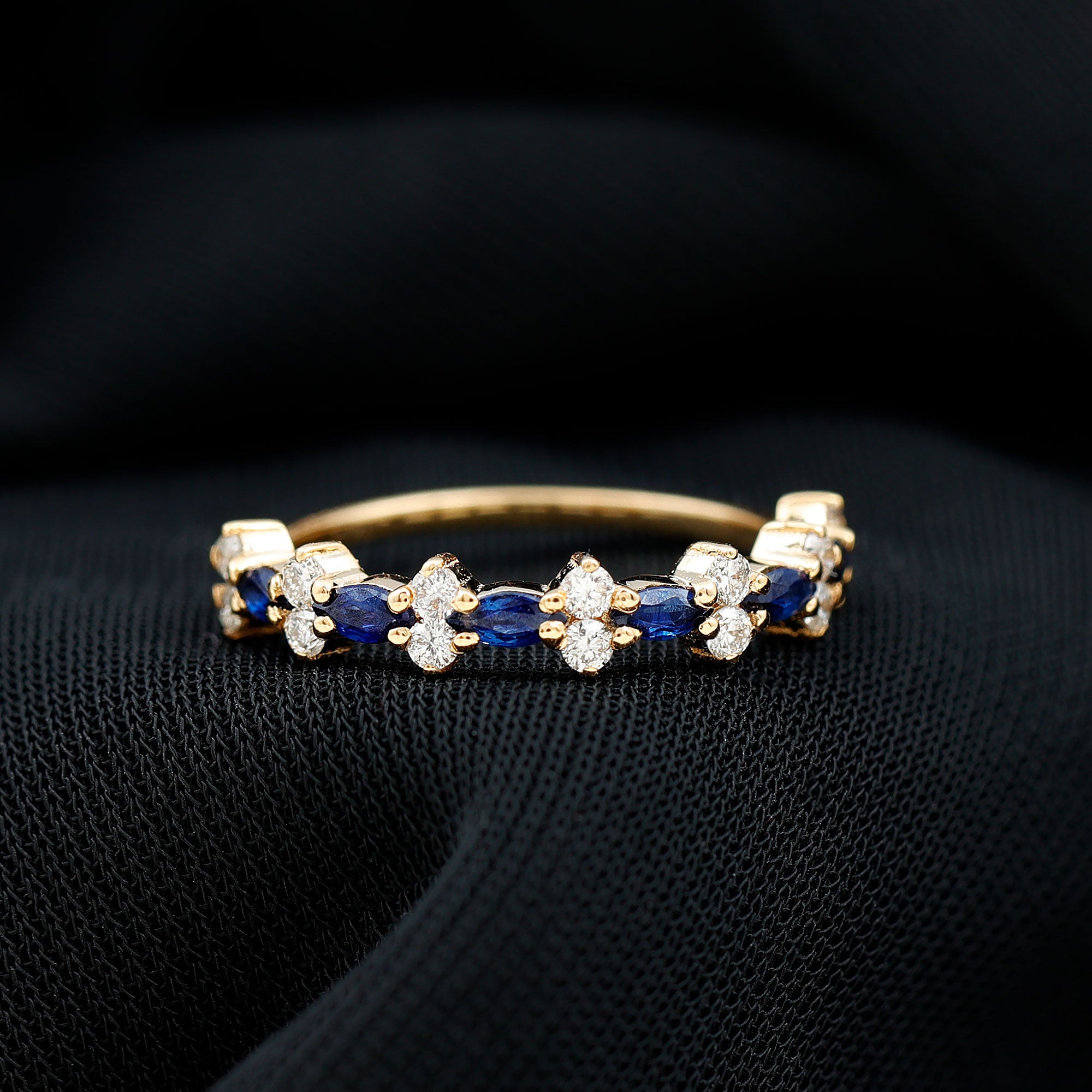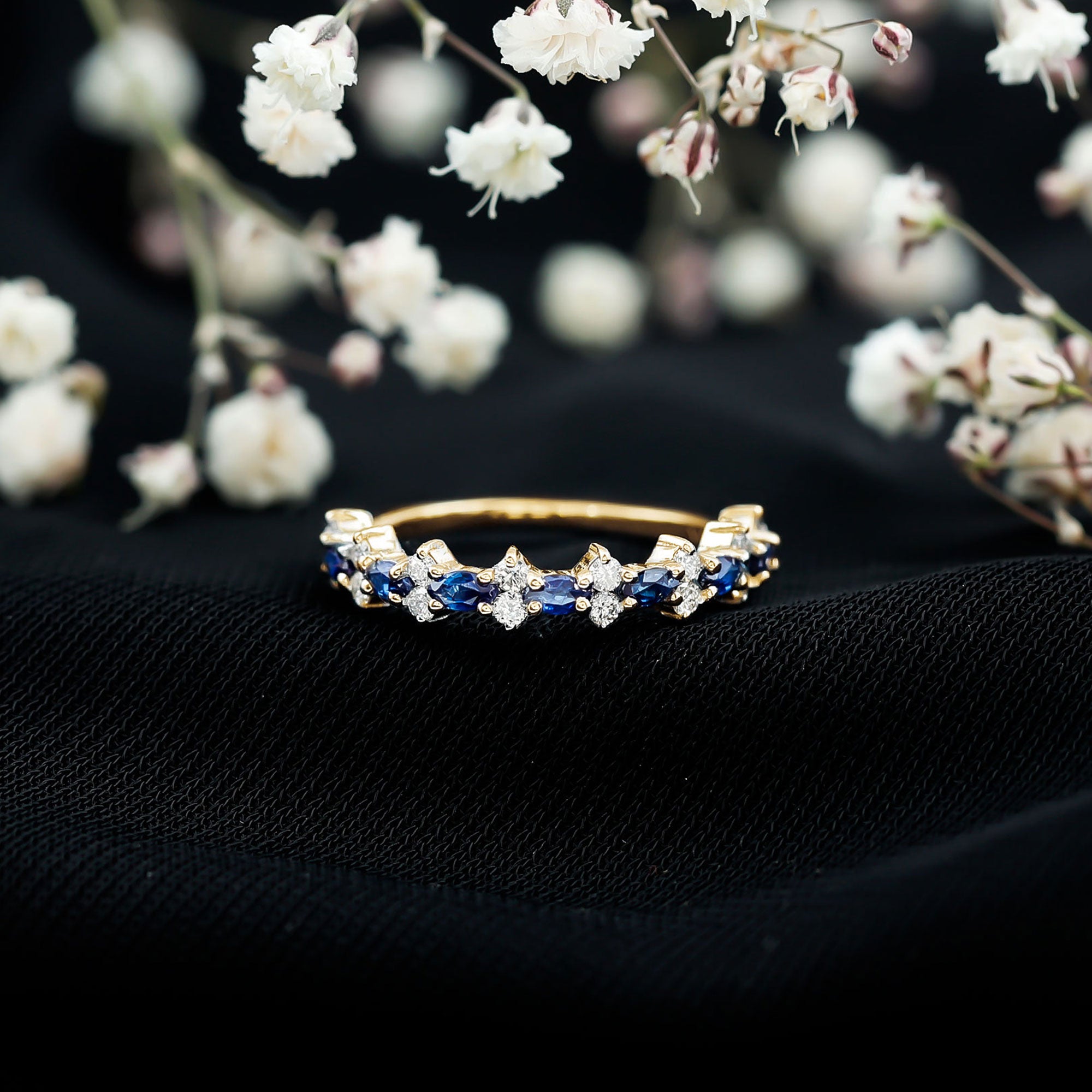 Classic Blue Sapphire and Diamond Half Eternity Ring