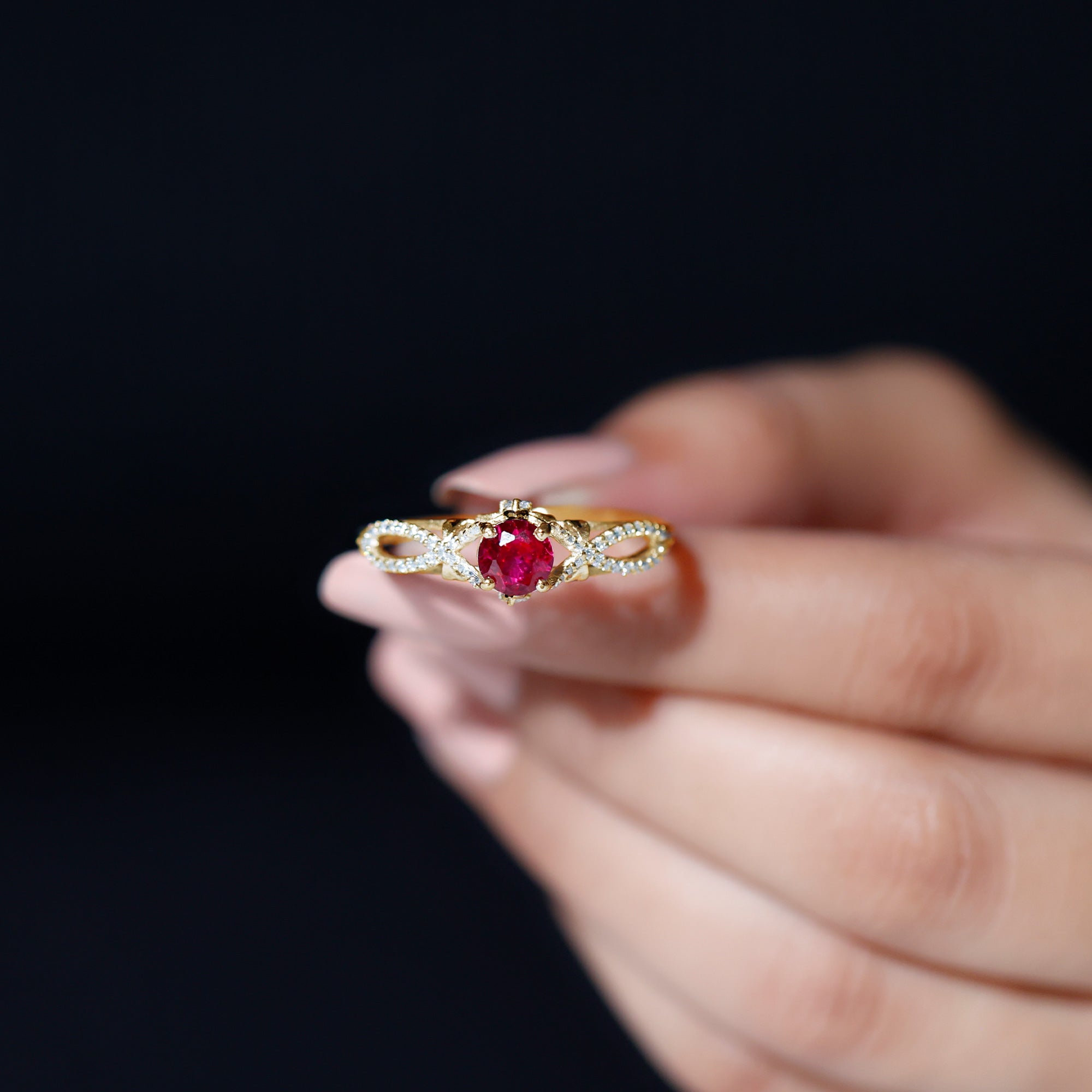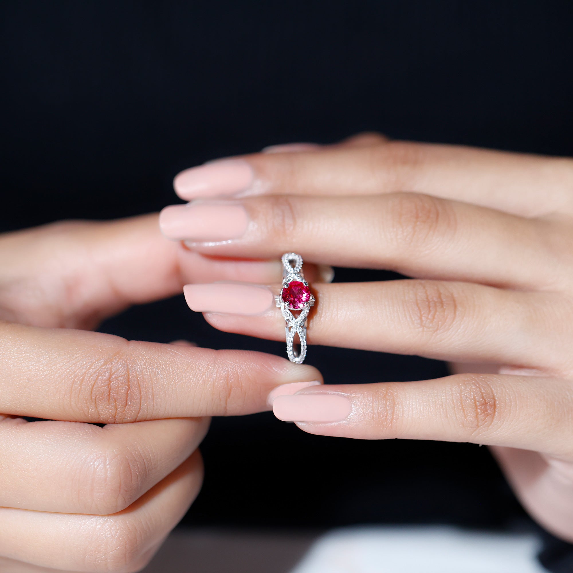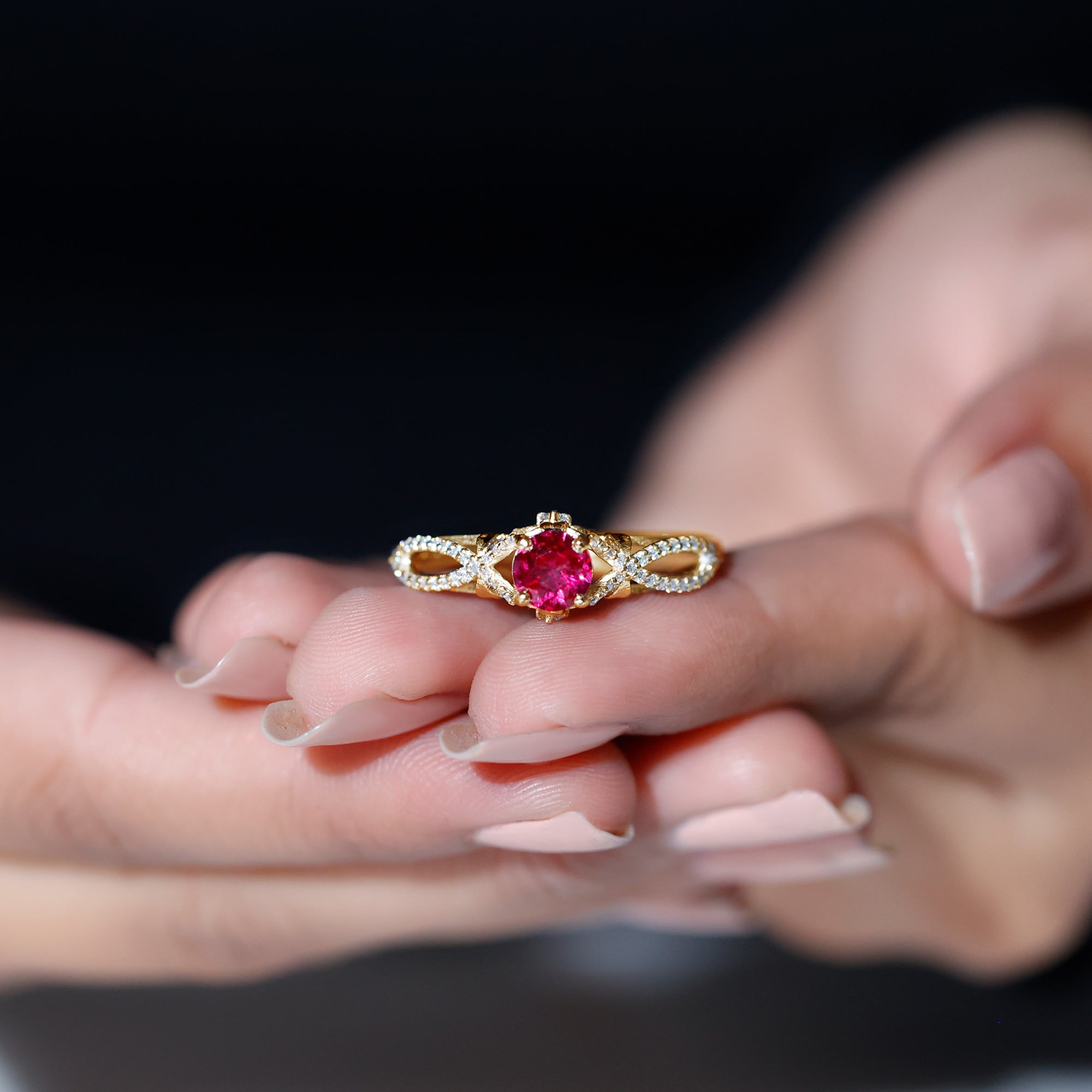 Classic Created Ruby and Diamond Crossover Engagement Ring with Diamond