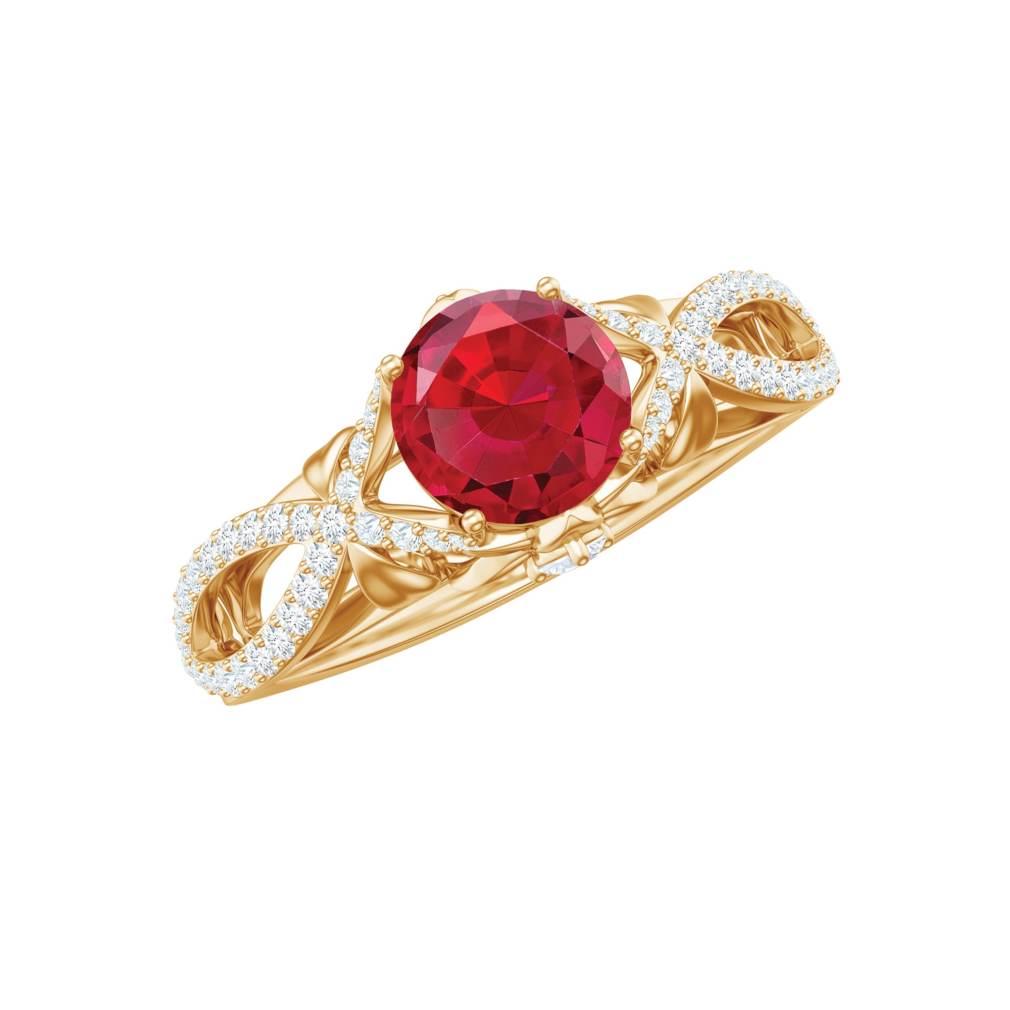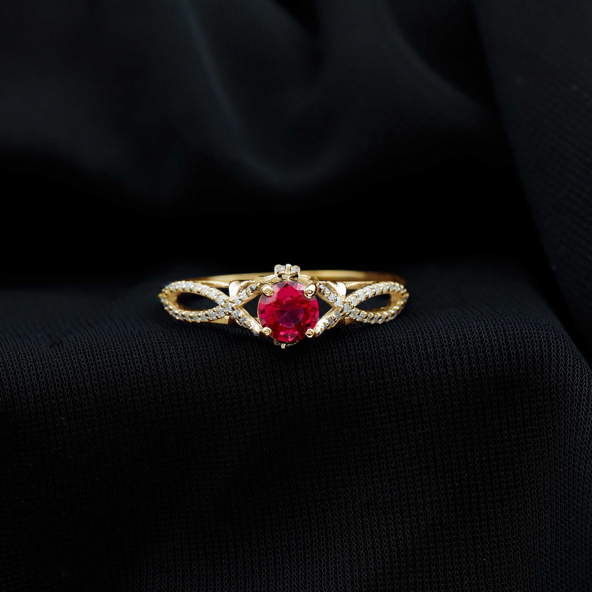 Add a touch of glamour to your look with this beautiful Lab Created Ruby Ring. Crafted in Solid Gold, this ring is sure to make you stand out. Featuring a Round Shape lab created ruby in a crossover setting, this ring is a perfect way to show your love and affection to the special woman in your life.