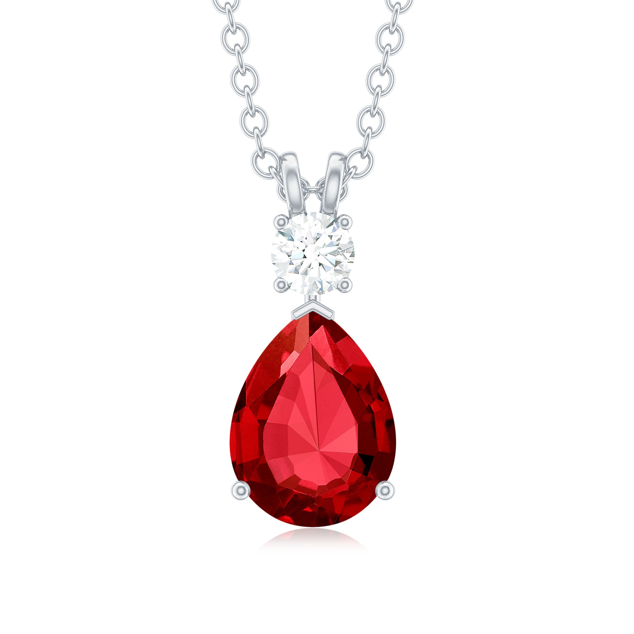 Classic Created Ruby Teardrop Pendant with Moissanite