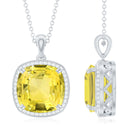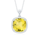 Level up your fashion game by donning this Halo Pendant Necklace embedded with Cushion Cut Lab Created Yellow Sapphire secured in 4 Prong Setting and Round Moissanite adds a touch of sparkle. This Created Sapphire Pendant is crafted with Hallmarked Metal and could easily match your most stylish outfits for you to look breathtakingly stunning, making it a perfect birthday present.