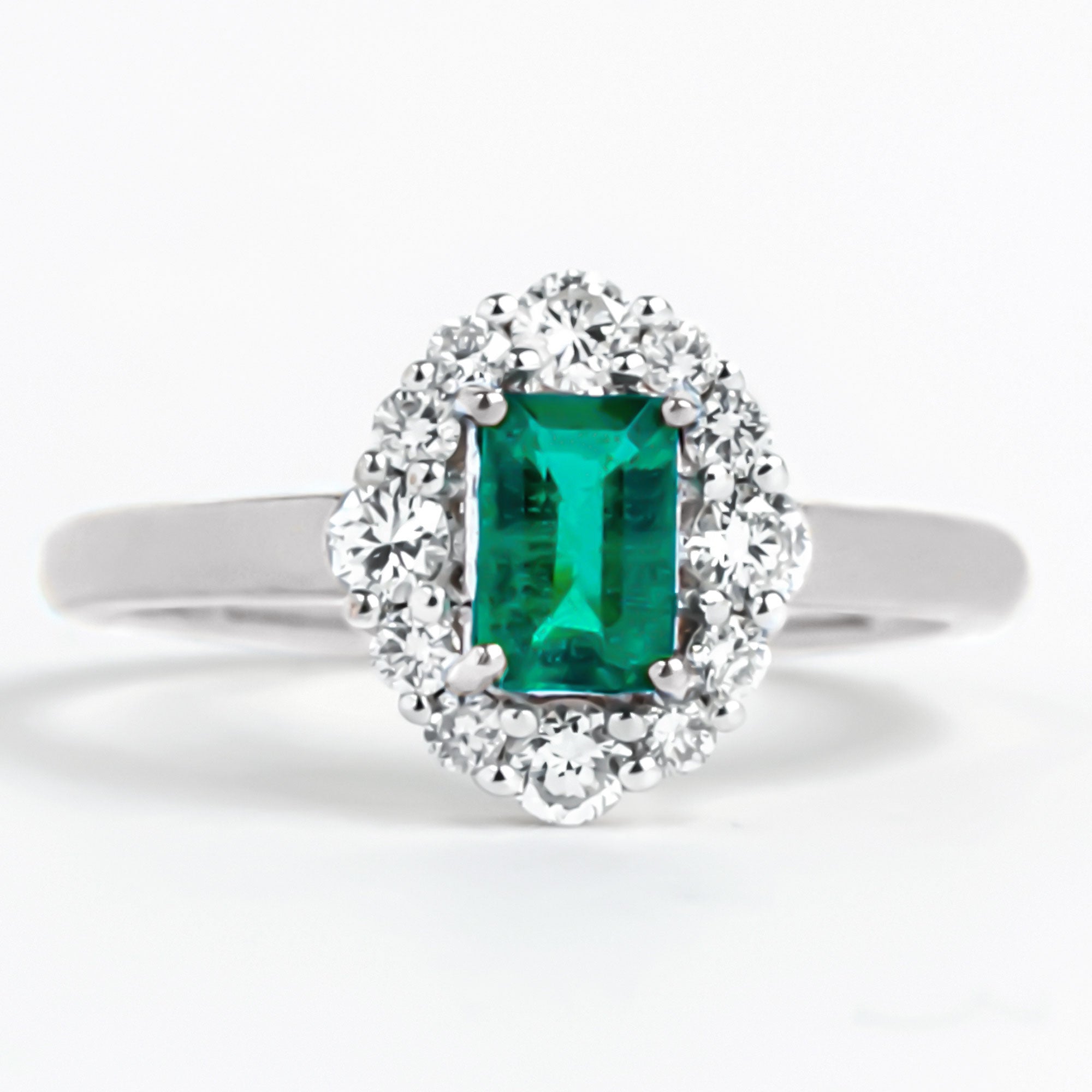 Imagine a love that shines as brilliantly as this Emerald Cut Engagement Ring, where passion meets elegance in every facet. At its heart, a lush green 4X6 mm Emerald Cut Emerald of AAA Quality radiates depth and devotion, embraced by a Halo of sparkling Diamond stones that catch the light with every movement. Carefully crafted to flatter every hand, this Emerald Cut Emerald Ring comes in multiple sizes and is presented in a signature jewelry box, ready to turn a proposal into a moment that will be remembered forever. Whether whispered under moonlight or celebrated with family and friends, this Halo Engagement Ring with Emerald is designed to capture the moments of your special day. The combination of vibrant Emerald and shimmering Diamond stones evokes romance, elegance and the courage to love deeply. Every glance at this Emerald Diamond Engagement Ring will remind your beloved of the story you are writing together. Let this Real Emerald Ring be the chapter that begins a lifetime of forever in style and heartfelt romance.