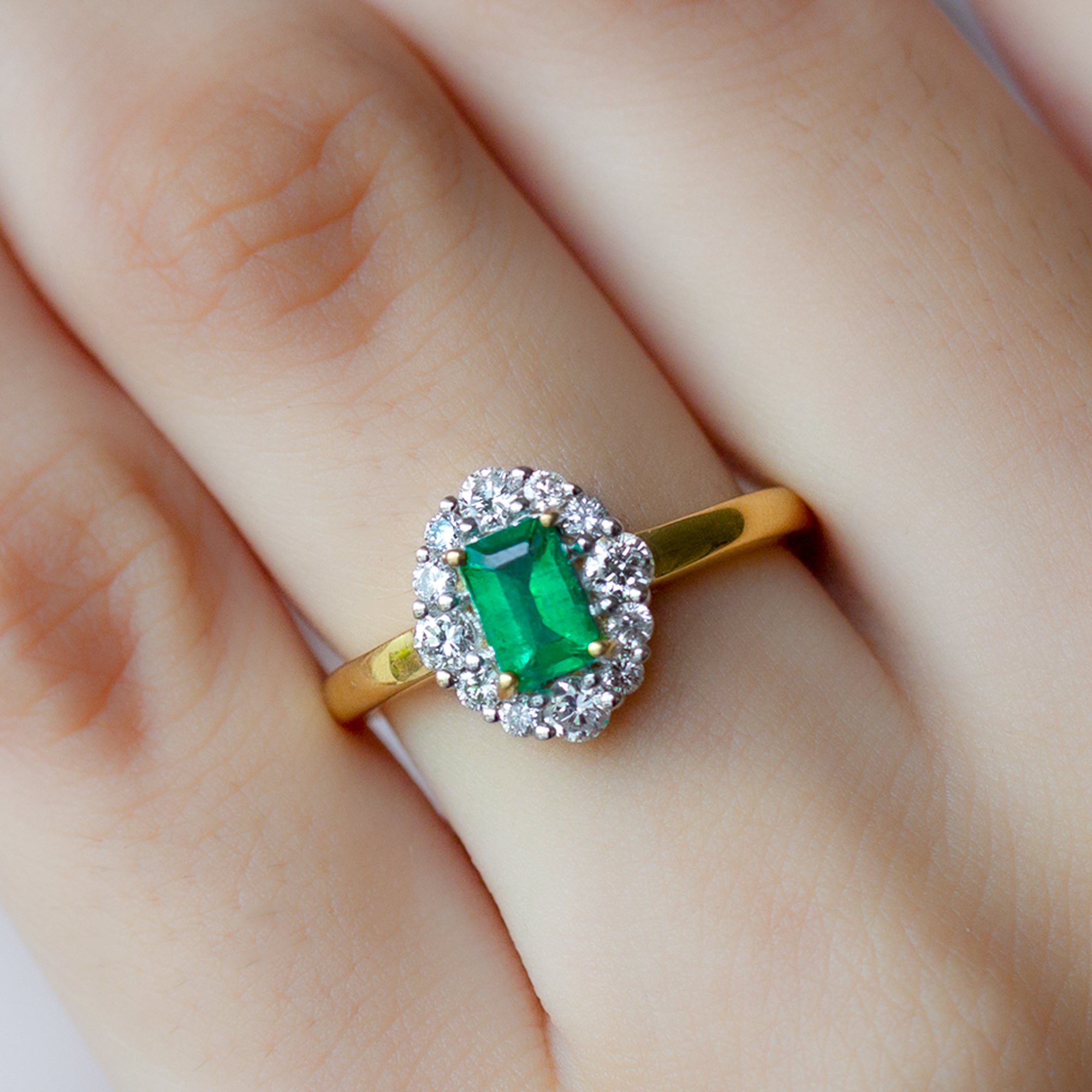 Classic Emerald Cut Emerald Engagement Ring with Diamond Halo