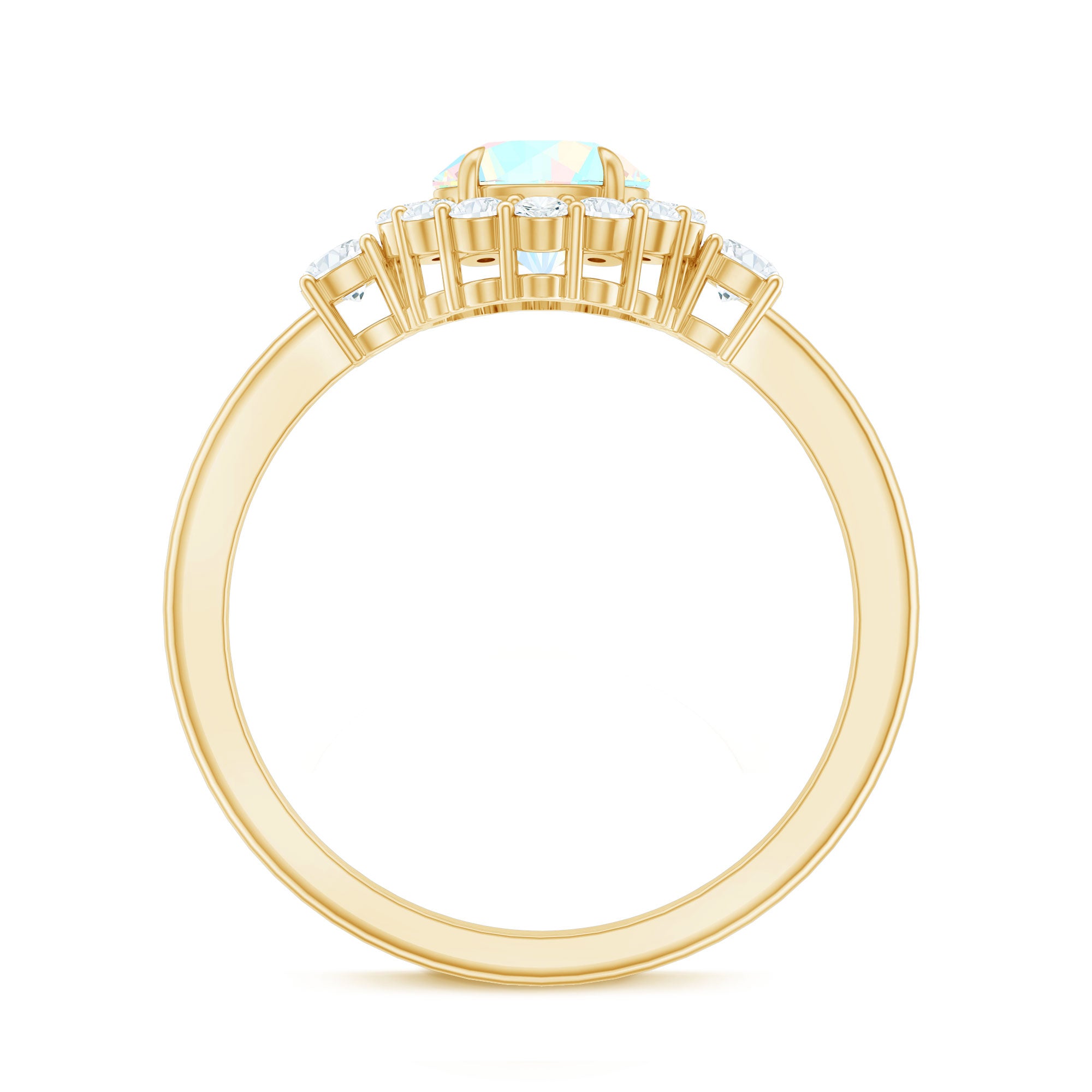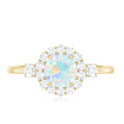Classic Ethiopian Rainbow Opal Engagement Ring with Diamond Halo